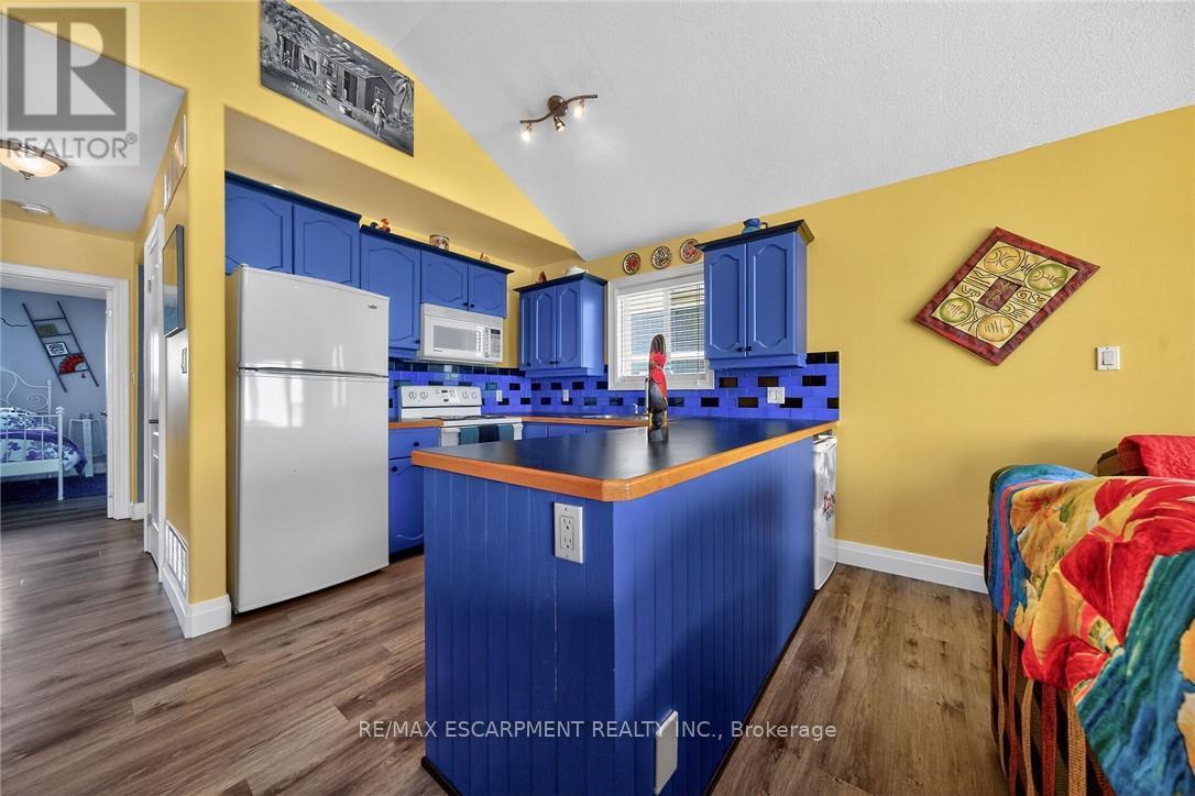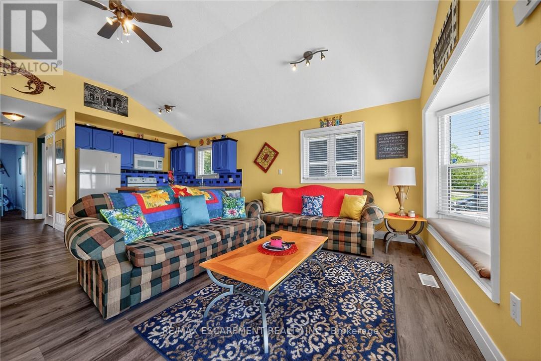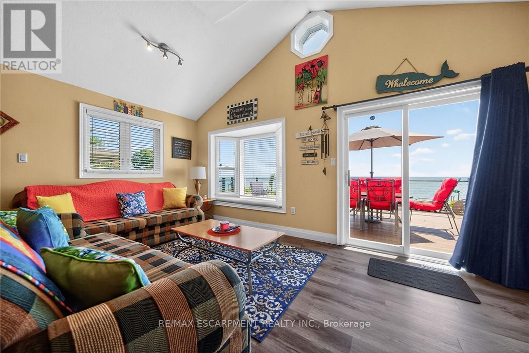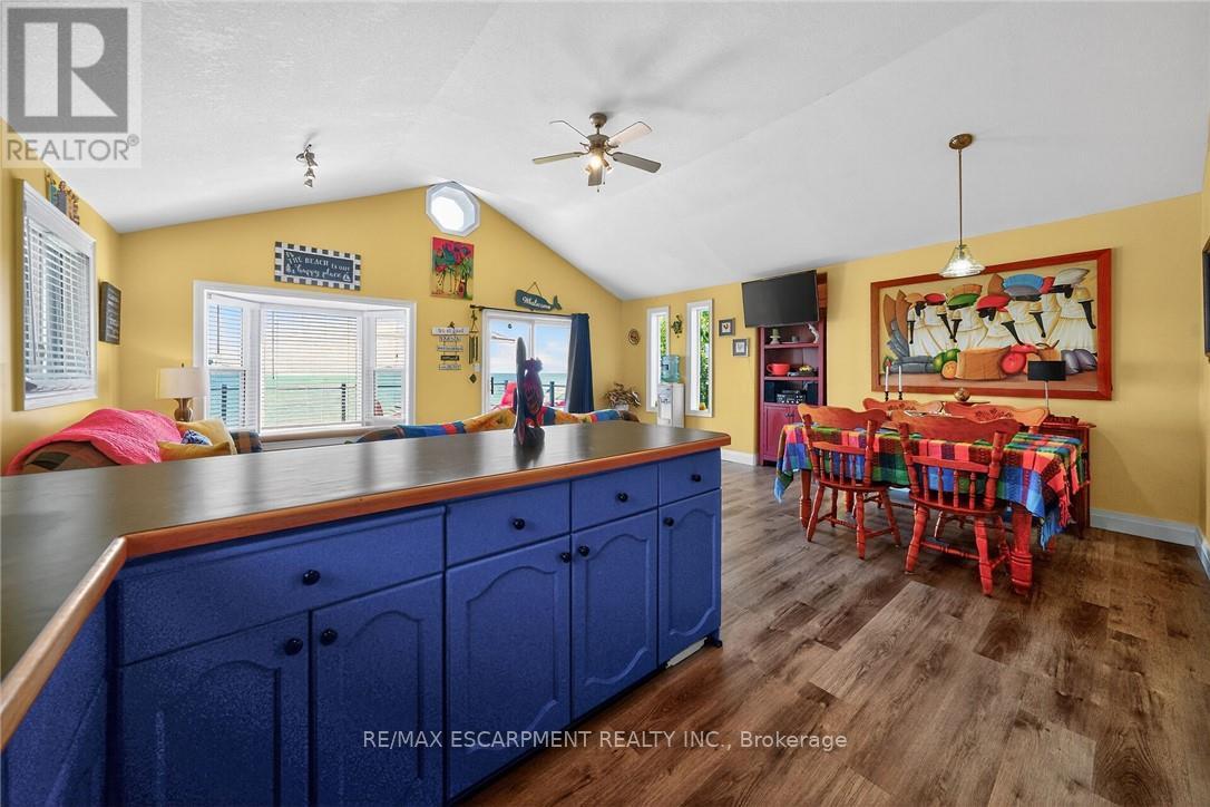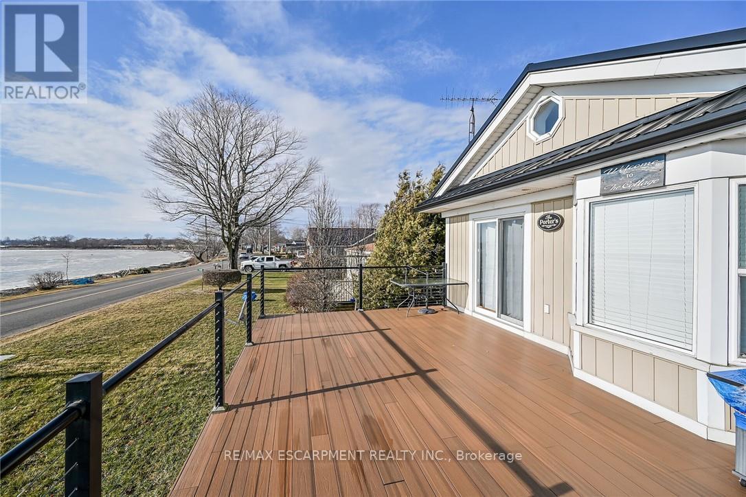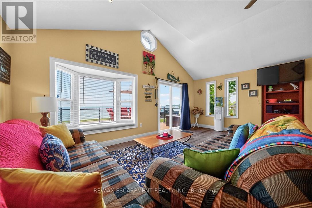 Exquisitely updated, Caribbean Inspired 5 bedroom, 2 bathroom Turn key Lake Erie home offering gorgeous unobstructed Lakeviews and desired sand beach across the road. Ideal family cottage, home, or Investment with all furnishings included - truly a "move right in" package. Great curb appeal with oversized, elevated Lakefacing deck with composite decking, & ample parking situated on 50' x 100' lot. Extensively renovated in 2017 & 2019 with new poured concrete foundation, insulation, wiring, drywall, flooring, furnace, A/C, & more. Better than New! The stunning interior layout features approximately 1600 sq ft of distinguished living space highlighted by vaulted ceilings, premium luxury vinyl flooring, custom kitchen cabinetry, dining area, & spacious living room with emphasis on the water views, 2 MF bedrooms, & 4 pc bathroom. The finished basement includes 3 additional bedrooms, large rec room area, 3 pc bathroom with walk in shower, laundry room. Experience the Lake Erie Lifestyle! (id:64974)