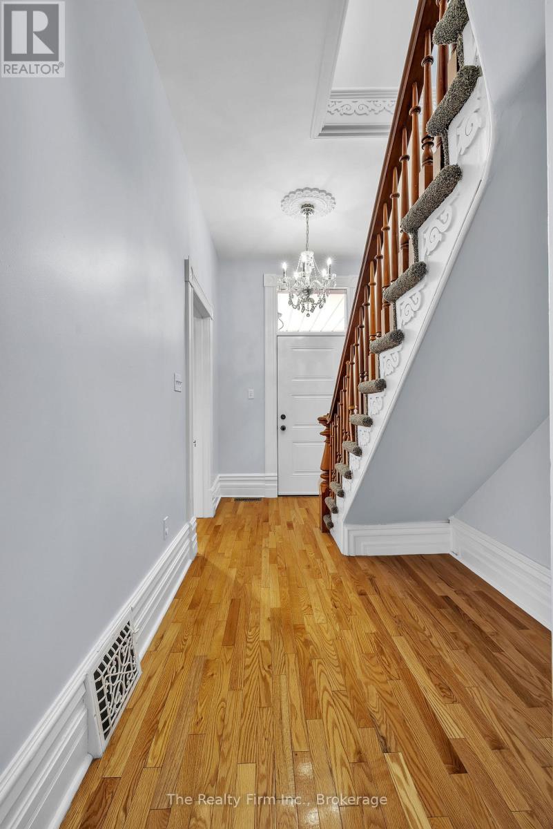 You don't find homes like this - on lots like this - very often anymore. Beautifully updated 2-storey home on a 62' x 246' lot in a quiet central location close to schools, shopping, and transit. This 4-bedroom home offers a unique blend of character, functionality, and flexibility that's hard to find. Main floor features high ceilings, a welcoming front entrance with original wooden staircase, formal Living and Dining rooms, a 4-pc bathroom, and a large Kitchen with its own entrance & Deck. The rear addition adds incredible living space, including a huge Family Room with double doors to a large Deck and private yard, a generous Laundry room, and an additional room ideal as a Bedroom, Office, or hobby space-with its own separate entrance, making it perfect for a home-based business or multigenerational living. Upstairs are three large Bedrooms, including a spacious primary, and a second 4-piece Bathroom. Basement offers a finished Rec Room under the addition, plus a clean and functional spaces under the original home with a 2-pc Bathroom, storage, and utility space. Extensively updated and move in ready: HVAC + On-Demand Hot Water (all installed 2025), update electrical, fresh paint throughout, new carpet on stairs and upper level, roof (2017) with 50-year shingles, exterior brick professionally stained (2023), leaf gutter guard system (2017) (warranties transferable). Newer windows & doors. Exterior features include a detached Garage and an oversized double-wide driveway with parking for approximately 10 vehicles, maybe a trailer or a boat? **Additional bonus: property is enrolled in the Ontario Micro-FIT Solar Program with about 6 years remaining on a transferable contract, after which panels become part of property and the generated income goes to the owner. All appliances included, along with TVs and furniture as displayed. Truly turn-key-just move in. (id:64974)