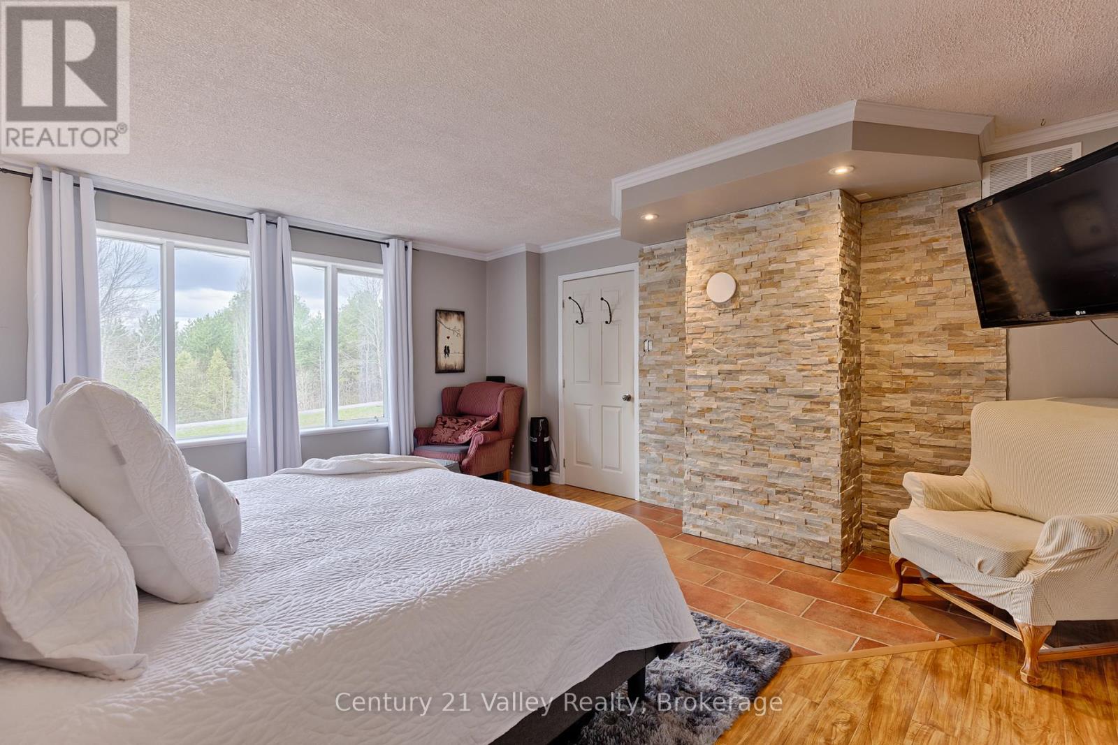 Welcome to your dream country retreat! Nestled on 30 picturesque acres of fields and bush, this exceptional property offers the perfect blend of privacy, space, and modern comfort all just five minutes from the charming Village of Eganville. Whether you're a horse enthusiast, hobby farmer, or simply seeking tranquility, this property delivers on every front. Step inside the spacious, beautifully updated home and be captivated by its bright and airy open-concept design. The main level invites you to gather in the stunning living area, seamlessly flowing into the stylish kitchen and dining space. With four generously sized bedrooms, there is room for the entire family, including a huge primary suite complete with a luxurious ensuite and walk-in closet. Beyond the bedrooms, this home is packed with functionality, offering two full bathrooms, a massive recroom, an office, a cozy den, a dedicated laundry room, and a spacious mudroom. A workshop space ensures theres no shortage of storage or room for hobbies. Step outside onto multiple decks and take in the breathtaking natural surroundings perfect for morning coffee or evening relaxation. Now, lets talk about the equestrian amenities! This property is an absolute must-see for horse lovers, featuring a 32 x 32 barn equipped with three full-size stalls, two mini stalls, and a standing stall. The barn is designed for convenience, with a buried water line providing hot water on demand, 4' wide stall doors, an 8' walkway for ease of movement, a well-appointed tack room, and a heated workroom for year-round use. But thats not all, ride in any season with the impressive 50 x 80 enclosed riding arena, designed to keep both horse and rider comfortable, no matter the weather. If you've been dreaming of sprawling country living with equestrian facilities, look no further this is the property for you. Book your showing today! No conveyance of any written offers without a minimum 24-hour irrevocable (id:64974)