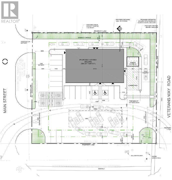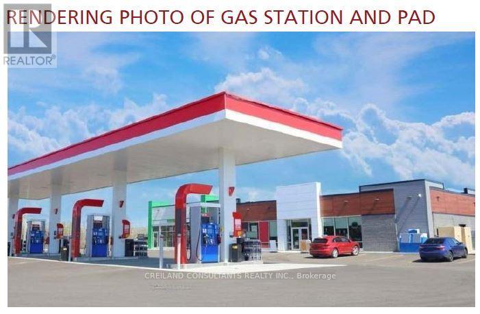 Exceptional 0.70-acre of land with site plan approval for a gas station business and a retail investment development opportunity. The site is approved for a +/- 4,294 SF commercial retail building consisting of three units with an endcap drive-thru wrap around, a three gas pump bar, two underground storage tanks, and 19 parking spaces (2 H. accessible). The property has frontage on three streets along with multiple access points from both Main Street and Veterans Way. Esso-approved location with projected 5 million litres. LOI from petroleum retailers to lease gas bar and c-store for $175,000 + TMI per annum. Preliminary interests from franchise QSR brands for the retail units projecting over $110,000 annual rental income. (id:64974)