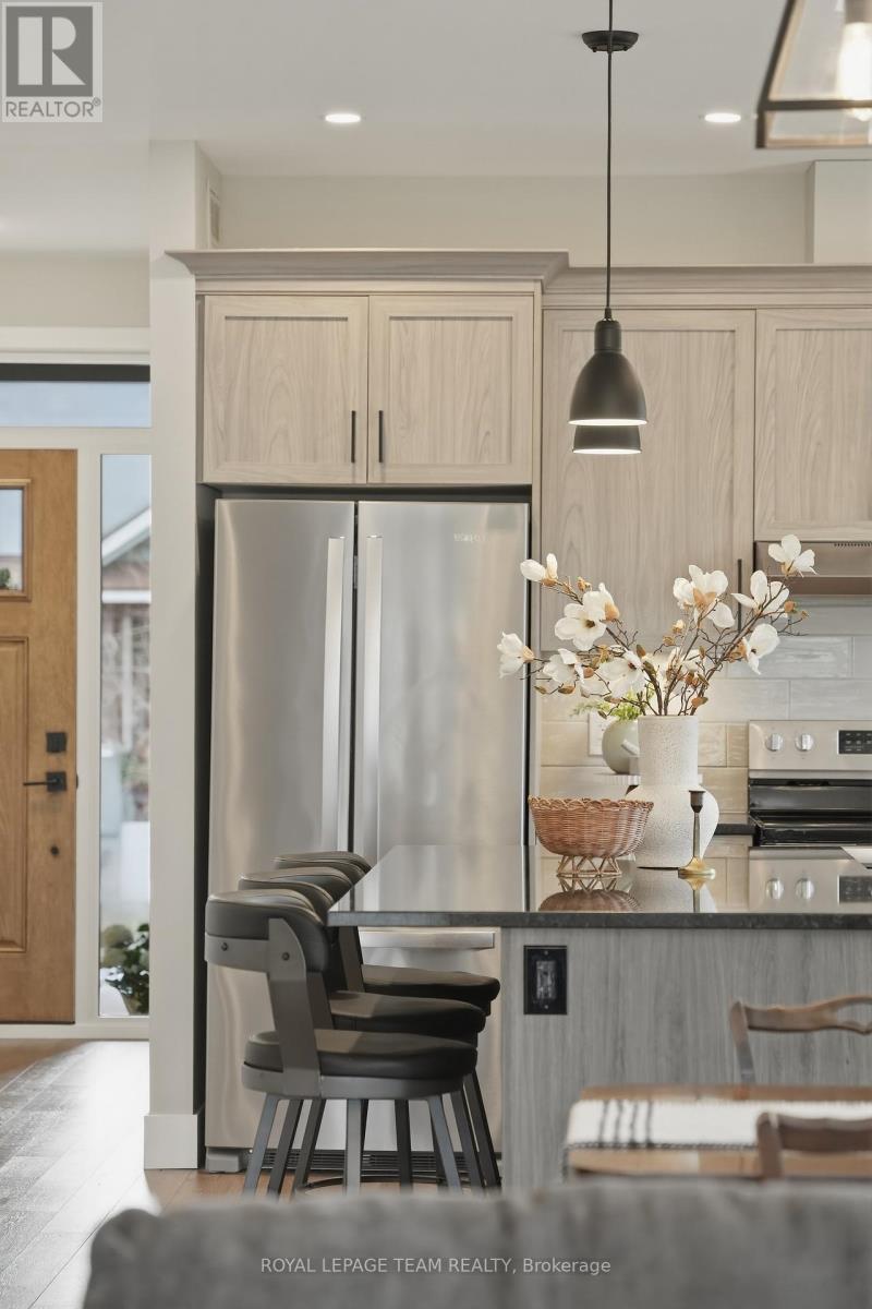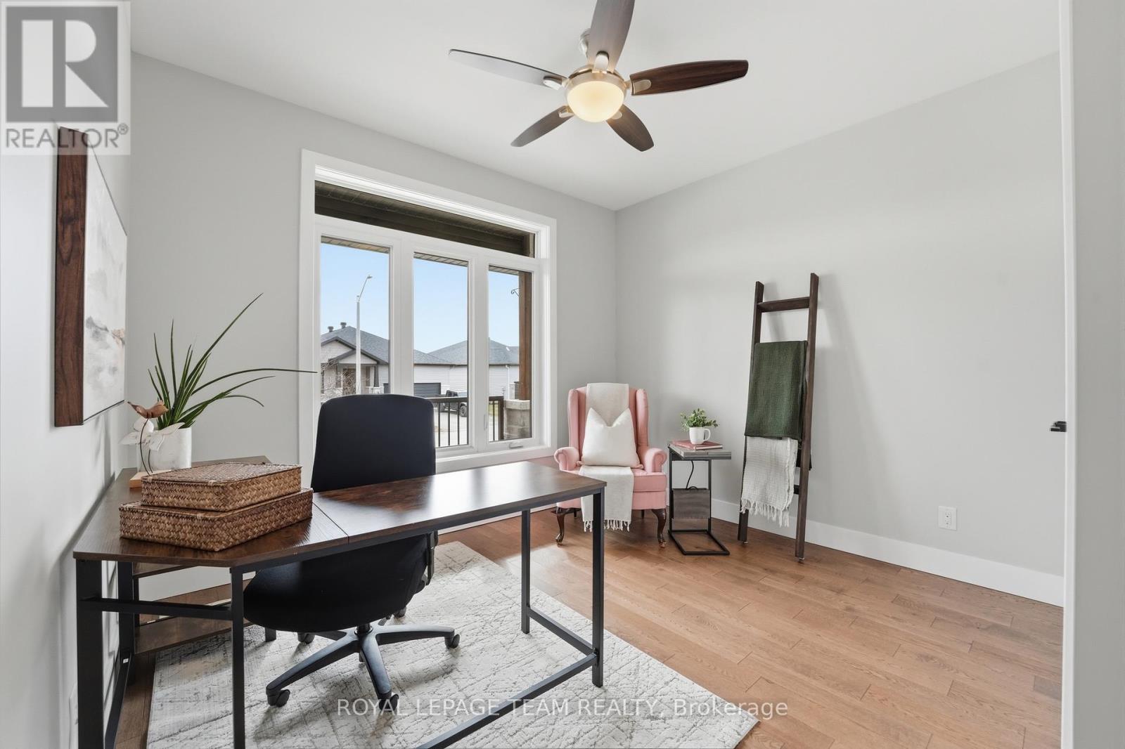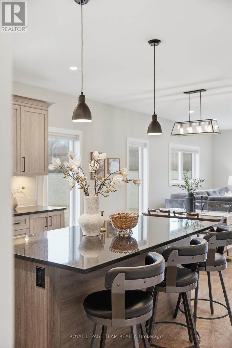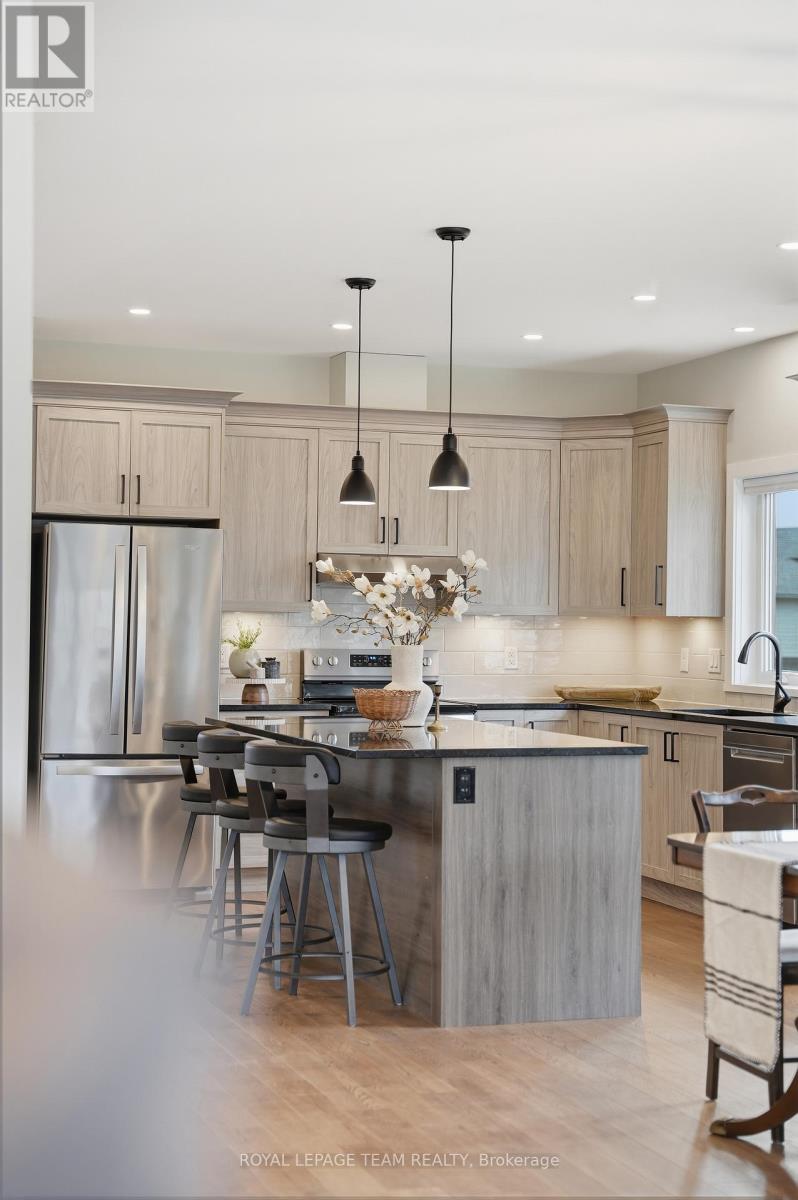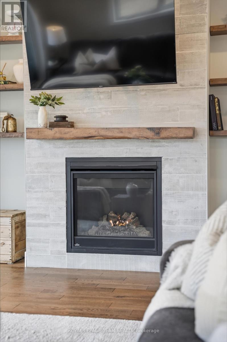 Welcome to this thoughtfully designed detached 4 bed, 3 full bathroom bungalow on a family-friendly street in the village of Carp. Built in 2019, this home offers modern finishes & exceptional comfort for today's lifestyle. Step inside to discover 9ft ceilings throughout, including the fully finished basement. The main floor has an effortless flow & showcases elegant engineered hardwood flooring throughout. The bright, open-concept living space is anchored by a gas fireplace w/ custom shelving & mantle. Just off the living room is the dining room & stylish kitchen w/ granite countertops, soft-close cabinetry, backsplash, & pantry. This level has 3 bedrooms, 1 being a primary retreat w/ walk-in closet & 3-piece ensuite w/ a glass shower, granite countertop & in-floor heating. This level is complete w/ 2 more bedrooms, a 3 piece family bathroom w/ granite countertops & tub then down the hallway is a convenient main floor laundry room w/ sink & access to the 2 car heated garage which adds everyday practicality. Down the hardwood stairs w/ upgraded banister & spindles, the finished basement (2024) extends your living space w/ another large bedroom, 3 piece bathroom, 3 storage closets (1 w/ barn door) & a large rec room w/ laminate flooring & pot lights throughout. The basement is also roughed-in for radiant floor heating. Enjoy outdoor living on the back deck through the patio doors just off the living room, complete w/ a roughed- in natural gas BBQ hookup. Additional features include window covers on majority of windows, double car garage w/ natural gas heater & side entrance, smart thermostat & a well-equipped utility room w/ work bench, large cold storage, HRV, owned hot water on demand & 200 amp service. Located just a 2 minute walk from a park & all of Carp's favourites like Ridge Rock, Carp Creamery, Alice's Cafe, Twin Muses & the Carp Fairgrounds, this is a wonderful opportunity to enjoy modern bungalow living in a welcoming community. (id:64974)