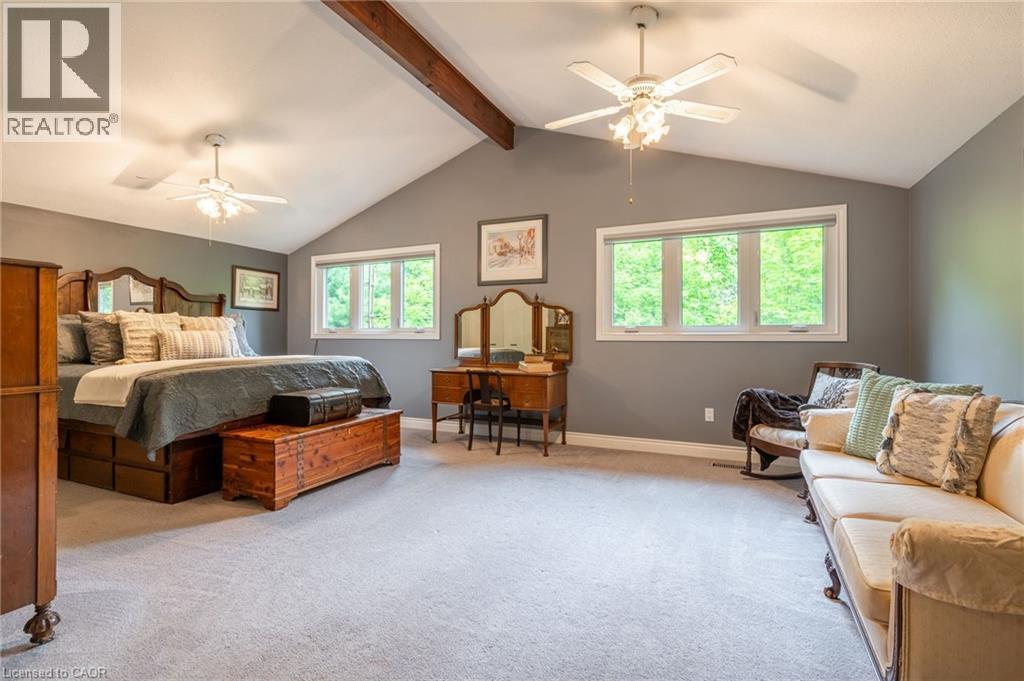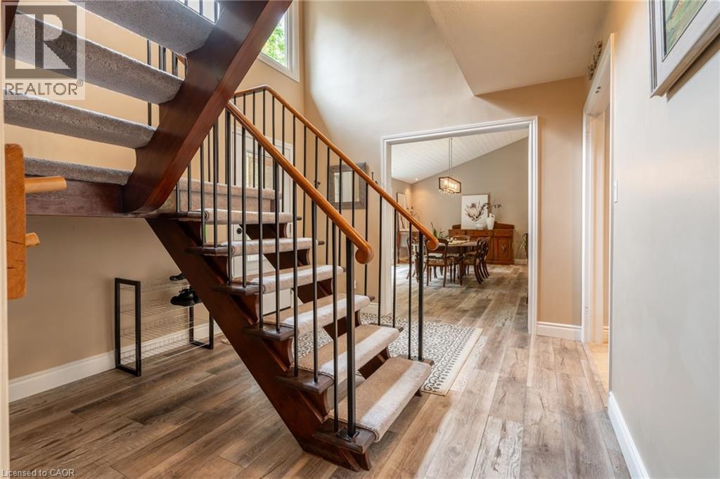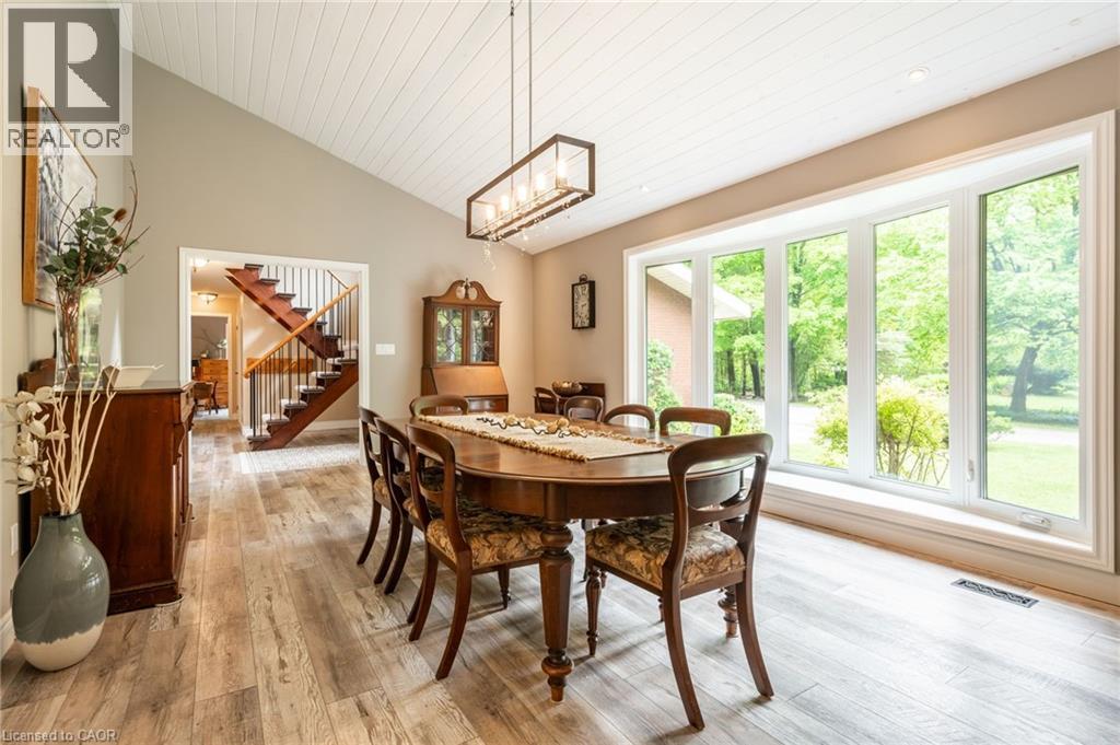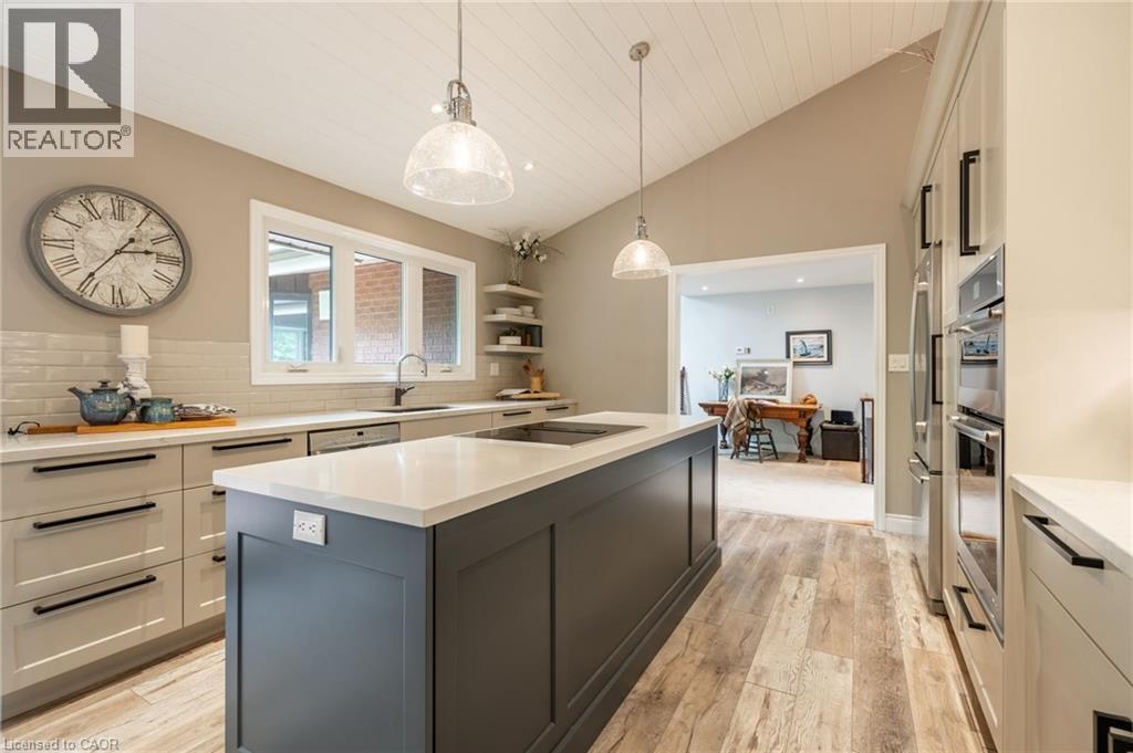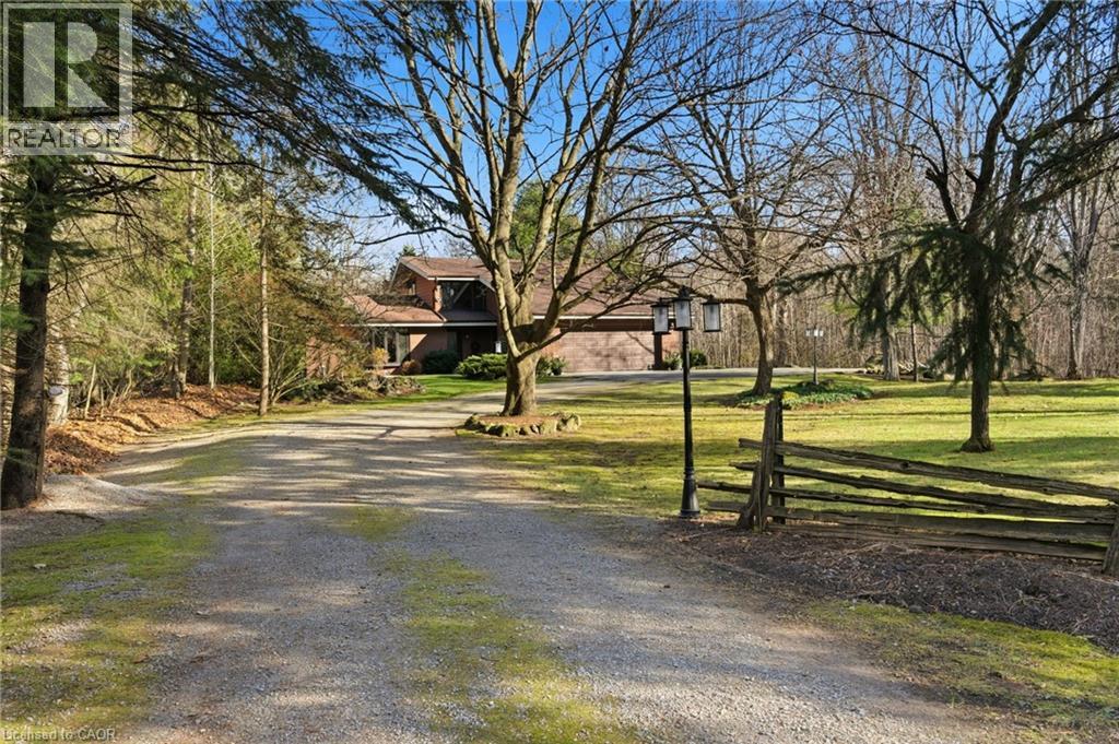 A Private Slice of Paradise in Milton – Perfect for Growing or Multi-Generational Families! Welcome to your own serene retreat just 17 km from Burlington. Tucked away on a beautifully landscaped 0.65-acre lot, this custom 3,200 sq. ft. home combines peaceful country living with the convenience of nearby city amenities — ideal for families who value space, privacy, and versatility. Step inside to a chef-inspired kitchen designed to impress, featuring soaring vaulted ceilings, elegant quartz countertops, an expansive 8-foot island, soft-close cabinetry, and premium Jenn-Air appliances. The open-concept layout flows seamlessly into a sun-drenched dining area with a stunning wall of windows showcasing lush greenery, and a spacious living room with a cozy fireplace and vaulted ceilings — perfect for entertaining or unwinding in comfort. The main level offers three generous bedrooms and two full bathrooms, including a luxurious primary suite with vaulted ceilings, three closets, and a beautifully updated spa-like ensuite. Upstairs, you’ll find a private retreat-style second primary suite with its own 2-piece bath and flexible living or office space — ideal for guests, teens, or working from home. The lower level features a large family room with a fireplace and a dedicated workshop — a dream space for hobbyists or DIY enthusiasts. At the opposite end of the home, a separate entrance leads to a full in-law suite through a practical mudroom, providing exceptional flexibility for extended family or long-term guests. Enjoy peace of mind year-round with a backup generator that ensures continued comfort and security. NOTE: The oil furnace has been replaced with a brand new propane furnace and hot water tank. This rare offering delivers the best of both worlds: tranquil living in a park-like setting, with all the essentials just minutes away. Don’t miss your chance to own this truly special home! (id:64974)
