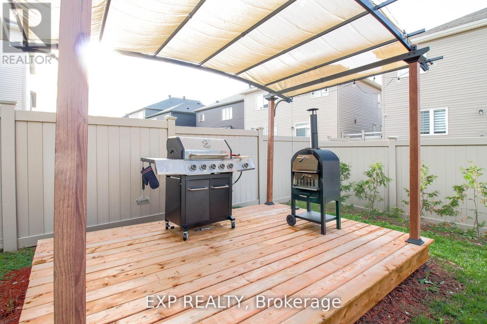 Welcome to this spacious 4-bedroom home for rent in the highly sought-after, family-friendly community of Quinns Pointe. The main floor impresses with 9-foot ceilings, opening from a welcoming foyer into a great room with a cozy gas fireplace and a formal dining room. The contemporary kitchen is the heart of the home, featuring extensive cabinetry, quartz countertops, stainless steel appliances, and a large island with a breakfast bar. A practical mudroom provides convenient access to the double-car garage. A beautiful hardwood staircase leads upstairs to the primary suite, which serves as a private retreat with its large walk-in closet and a luxurious 5-piece ensuite bathroom. Three more generously sized bedrooms and a full family bathroom complete the second level. Step outside into your fully fenced, landscaped backyard, an entertainer's dream- It includes a gazebo for outdoor seating and a second kitchen gazebo equipped with a BBQ and a wood-fired pizza oven. The location is ideal, just a 3-minute walk from Bus route 75, mins from parks, the Minto Recreation Centre, top-rated schools and Costco, Walmart and Farm Boy. Enjoy an easy commute with quick access to Highway 417. (id:64974)
