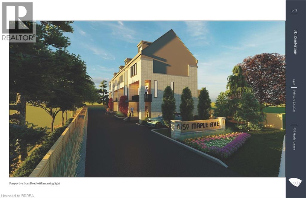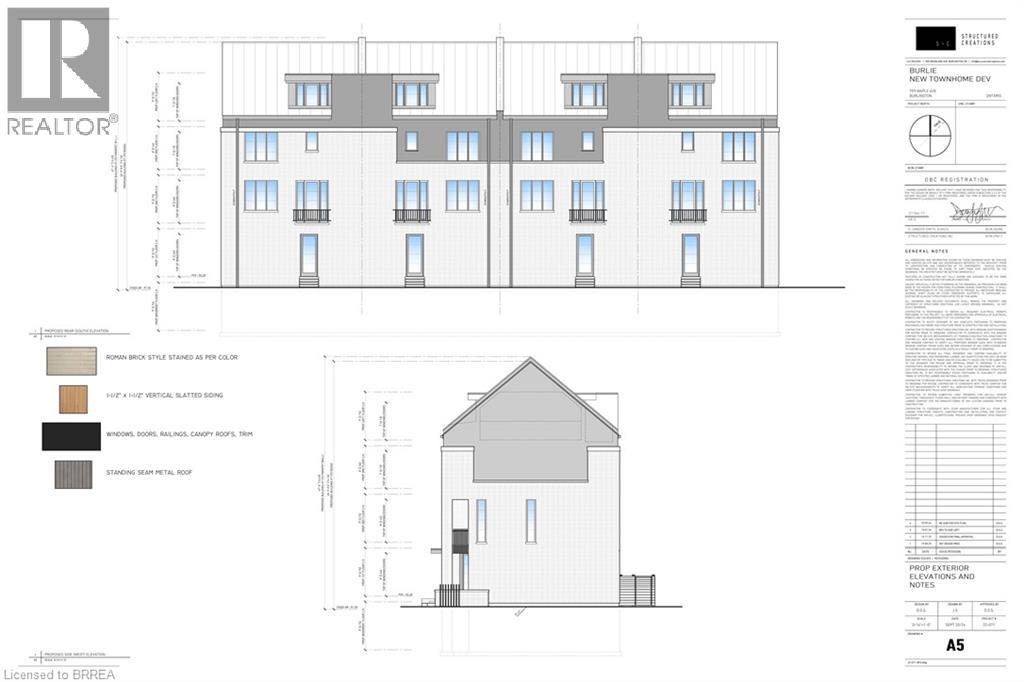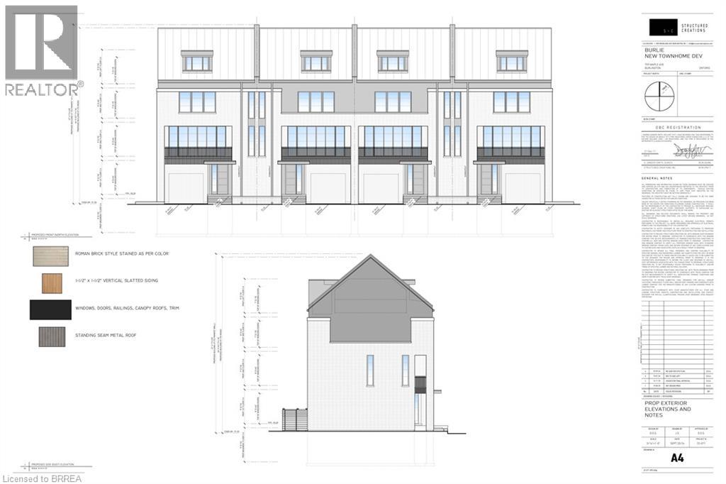 Rare development opportunity in Burlington—fully site-plan approved for four luxury townhomes. Each unit offers ~2,600 sq. ft. above grade across three storeys plus loft, plus ~610 sq. ft. basement. Modern open-concept layouts, large primary suites with ensuites, and flexible loft spaces. Each home includes two parking spaces (garage + exterior) and elevator-ready design for added value. Located near Mapleview Shopping Centre, Spencer Smith Park, and Lake Ontario, with easy access to parks, trails, and cultural amenities. Approvals in place allow for a faster build timeline. Potential development charge reductions up to 50% (buyer to verify) further enhance returns. Plans and reports available upon request Pictures are architectural renderings. Full site-plan approval for four townhomes ~2,600 sq. ft. + ~610 sq. ft. basement + loft per unit Elevator-ready design included in approved plans Three parking spaces per residence Private outdoor space for each unit Strong end-user and resale appeal Potential DC charge reduction (up to 50%, subject to confirmation) HST relief applicable on new construction (buyers to verify) Streamlined timeline to build Plans, municipal correspondence, detailed drawings, and an up-to-date survey are available upon request. (id:64974)