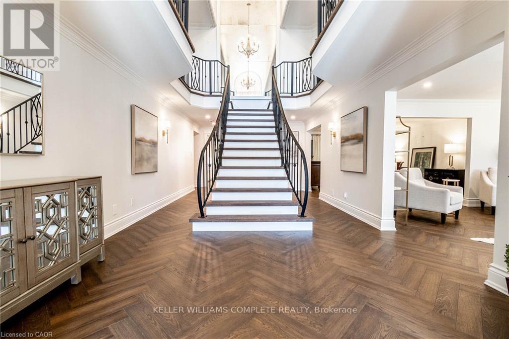TURN-KEY (ALL FURNITURE AND APPLIANCES NEGOTIABLE) This stunning home is truly a magnificent work of art. Over 7,000 sq. ft. of finished luxurious living space done to the finest detail with finishes you would only expect in a home of this caliber. The moment you walk into this immaculate home you will be drawn into the gorgeous foyer leading you through the front den and living area. The gourmet kitchen is a chef's dream with an oversized island, private breakfast area and built-in high-end appliances. Completing this floor is a laundry room, office, outstanding sunroom, 2 piece bathroom and a private room with hot tub which leads you to your private rear yard oasis with inground heated pool (9 ft. depth), cabana with attached bathroom, storage shed, treehouse and putting green. Basement boasts a marvelous 2nd kitchen, exercise room, sauna, 2 piece bathroom, unbelievable Theater room with bar and meeting room. The upper floor boasts a huge primary bedroom with gas fire place, walk-in closet, superb ensuite bathroom with walkout balcony. The 2nd bedroom boasts a 4 piece ensuite while the 3rd & 4th bedroom share an ensuite privilege. Extremely easy to view and ready for your inspection. This magnificent home has a flexible closing and is open for Offers. All upper scale furniture and appliances are negotiable. Descriptive packages including floor plans as well as video and drone tour available (id:64974)