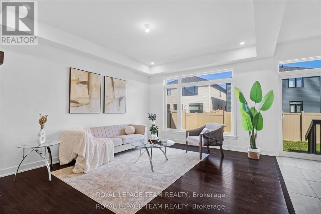 Welcome to this stunning double car garage detached home located in one of Ottawa's most prestigious communities, Riverside South. Step inside through the wide, inviting foyer featuring a double door closet and a convenient powder room. The open concept main level boasts elegant hardwood flooring, a spacious living and dining area, and a beautiful half wall with a see through fireplace that connects to the cozy family room. The gourmet chefs kitchen is a showstopper, showcasing quartz countertops, stainless steel appliances, a walk in pantry, and premium cabinetry with ample storage. Upstairs, you will find a bright loft, a rare feature, ideal for a home office, study, or relaxation space. The primary suite impresses with its large walk in closet and a luxurious four piece ensuite, while three additional generous bedrooms, a full bathroom, and a convenient laundry room complete the second level. The fully finished basement offers a spacious recreation area perfect for entertaining, a gym, or additional family living. The backyard is fully fenced with PVC fencing, providing privacy and low maintenance for outdoor enjoyment. Enjoy easy access to top rated schools, parks, scenic walking trails, shopping, public transit, and the upcoming LRT expansion, making this a fantastic place to call home. (id:64974)
