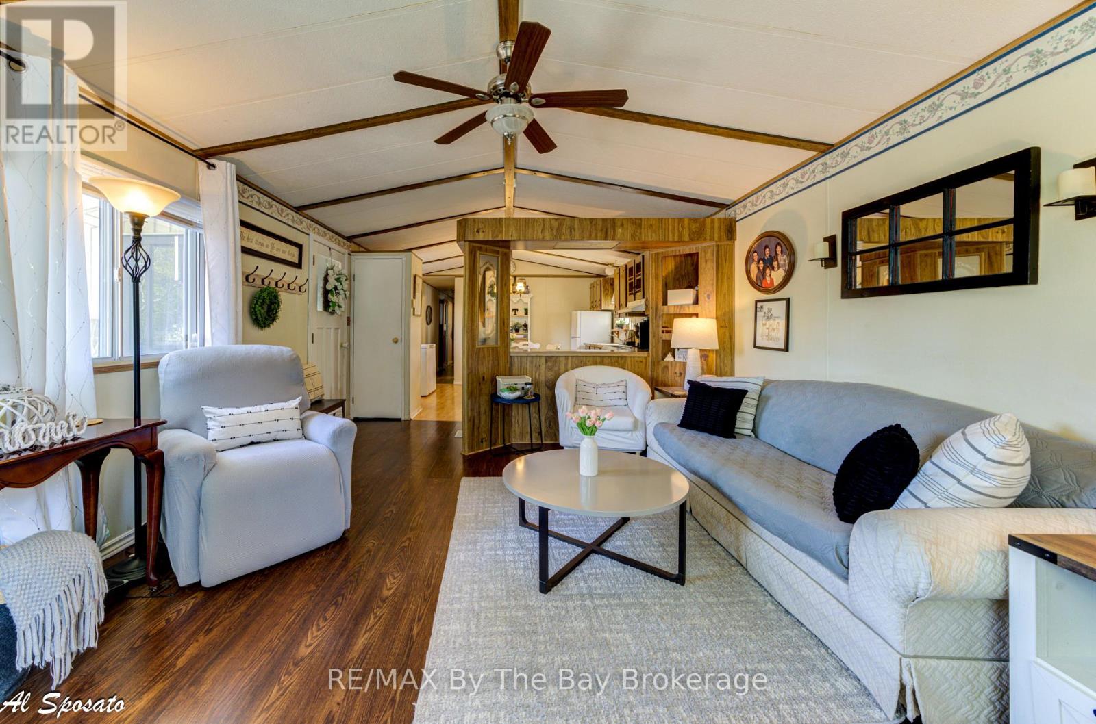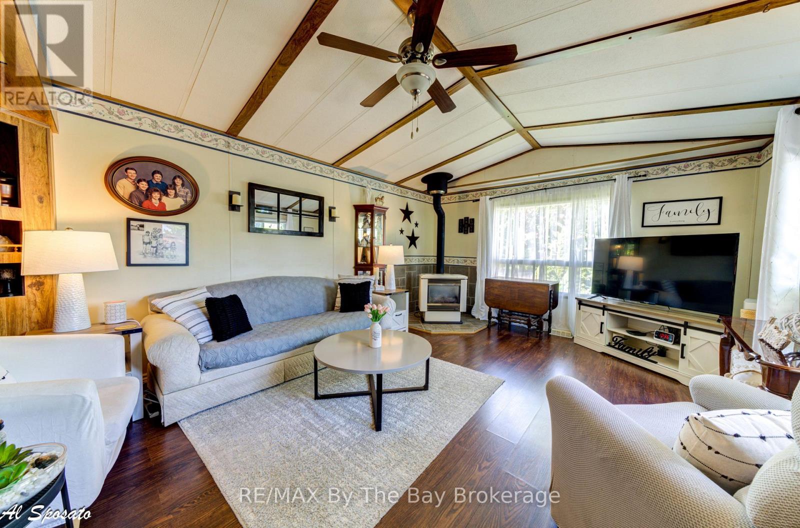 Welcome to 76 Georgian Glen Drive, a bright and comfortable 2-bedroom plus den modular home located in the desirable Georgian Glen Estates community. This home is situated on leased land and offers a functional layout ideal for year-round living. Enjoy the convenience of being within walking distance to Stonebridge Town Centre, offering easy access to shopping, dining, banking and amenities. Inside, you'll find an open-concept living area with a gas fireplace , a spacious kitchen, two well-sized bedrooms, and a versatile den that could serve as a home office, hobby room, or guest space. The home also features a full bath, in-unit laundry, and a private driveway. Nestled in a friendly and peaceful neighbourhood with mature trees and a welcoming atmosphere, this property is ideal for downsizers, retirees, or anyone looking for affordable, living in the heart of Wasaga Beach. Monthly Rent for new owners: $700 Structure Tax: $29.21 Lot Tax: $22.74 Total Monthly: $751.94 (id:64974)