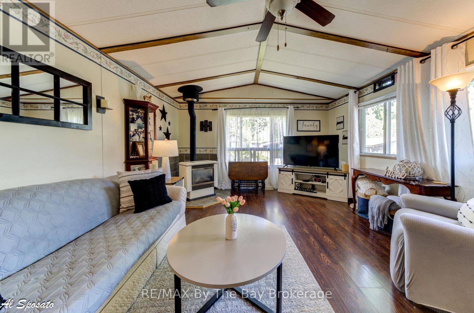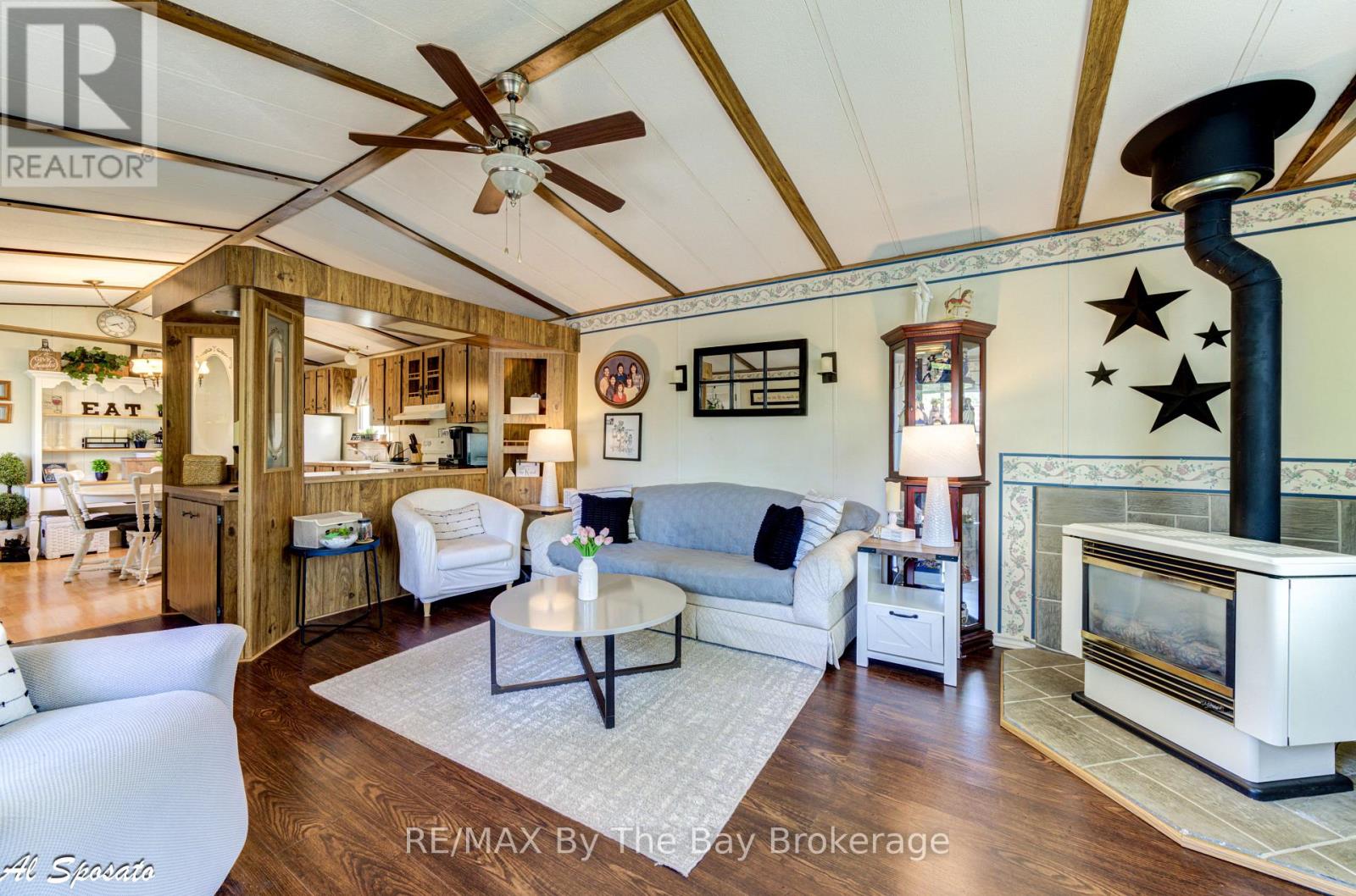 Welcome to 76 Georgian Glen Drive, a bright and comfortable 2-bedroom plus den modular home located in the desirable Georgian Glen Estates community. This home is situated on leased land and offers a functional layout ideal for year-round living. Enjoy the convenience of being within walking distance to Stonebridge Town Centre, offering easy access to shopping, dining, banking and amenities. Inside, you'll find an open-concept living area with a gas fireplace , a spacious kitchen, two well-sized bedrooms, and a versatile den that could serve as a home office, hobby room, or guest space. The home also features a full bath, in-unit laundry, and a private driveway. Nestled in a friendly and peaceful neighbourhood with mature trees and a welcoming atmosphere, this property is ideal for downsizers, retirees, or anyone looking for affordable, living in the heart of Wasaga Beach. Monthly Rent for new owners: $700 Structure Tax: $29.21 Lot Tax: $22.74 Total Monthly: $751.94 (id:64974)