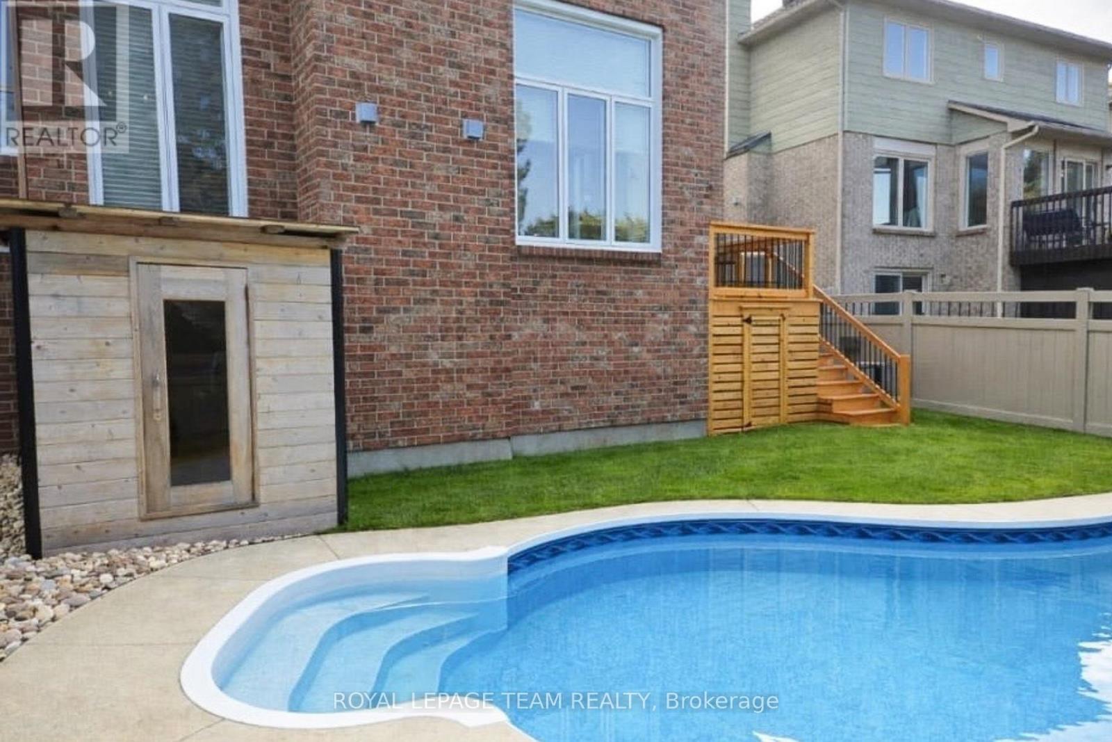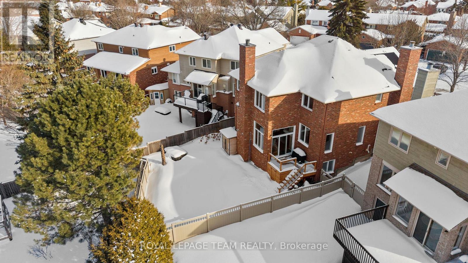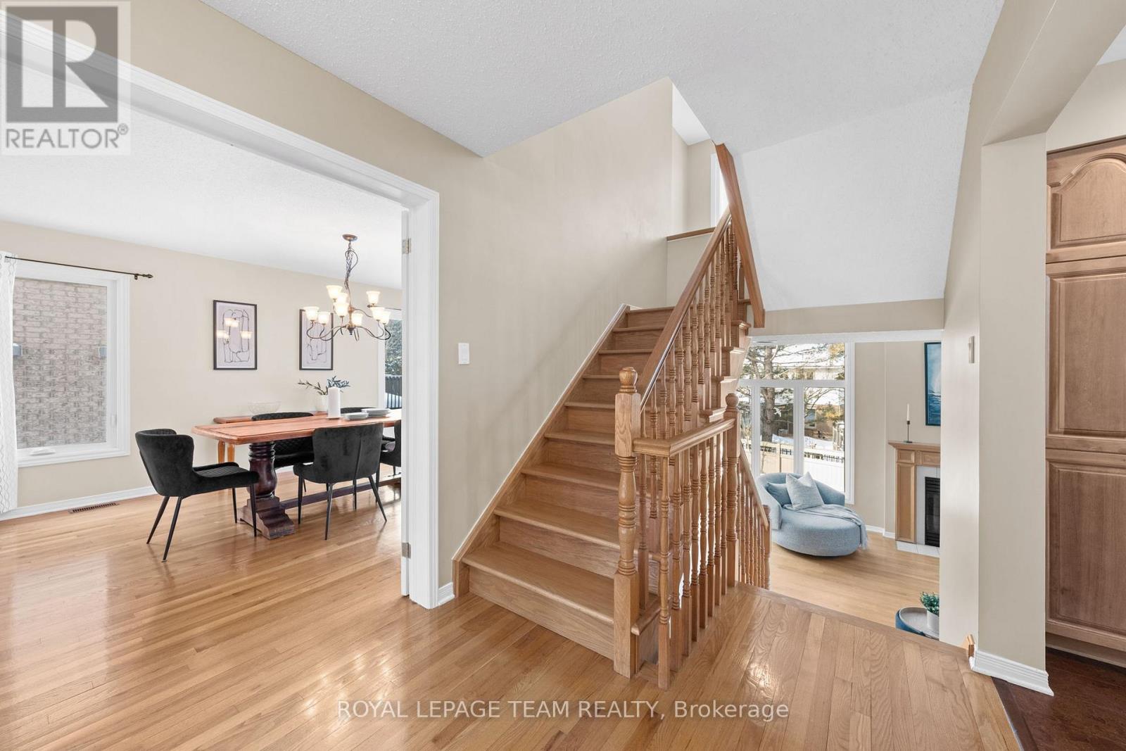 Located in the heart of Kanata Lakes, this all-brick Holitzner built walkout home offers approx. 3,790 sq. ft. of finished living space in a quiet, family-friendly neighbourhood close to top schools, amenities, Kanata Tech Park, and National Defence HQ. An interlock walkway leads to a beautiful front entry, opening into a bright 2-storey foyer. The living room with wood-burning FP provides a welcoming space to entertain, while double doors lead to a spacious formal dining room overlooking the backyard. The updated kitchen (2021) features cork floors, quartz counters and island, SS appliances including a GE fridge (2025), Bosch dishwasher (2025), subway tile backsplash, abundant cabinetry and pantry storage, plus a bright breakfast area and coffee nook overlooking the family room. Also on the main level is an updated powder room with quartz counters and black fixtures, a stately office with built-ins, crown moulding and a gas fireplace, and a laundry room with cabinetry and LG washer and dryer (2021). The impressive 2-storey family room features soaring ceilings, wood-burning FP and sliding doors that lead to the deck. Upstairs, the expansive primary suite includes a WIC and spa-inspired ensuite w/ double sinks, quartz counters, jetted tub and separate shower. A full bath with double vanity and tub/shower combo serves this level, along with 3 additional bdrms, one featuring wainscoting and new carpet (2022). Finished walkout LL offers a rec room with built-ins and heated floors, theatre room, storage areas, 5th bdrm, and full bath w/heated floors, perfect for an in-law or guest suite. Backyard oasis is an entertainer's dream featuring beautiful landscaping, heated inground saltwater pool, deck with underneath storage, 2nd deck ideal for a hot tub or patio furniture, and a fully fenced yard. Windows and doors updated 2018/2019. Solar panels installed 2025. A must-see home in Kanata Lakes! 24 Hours Irrevocable on all offers preferred. (id:64974)