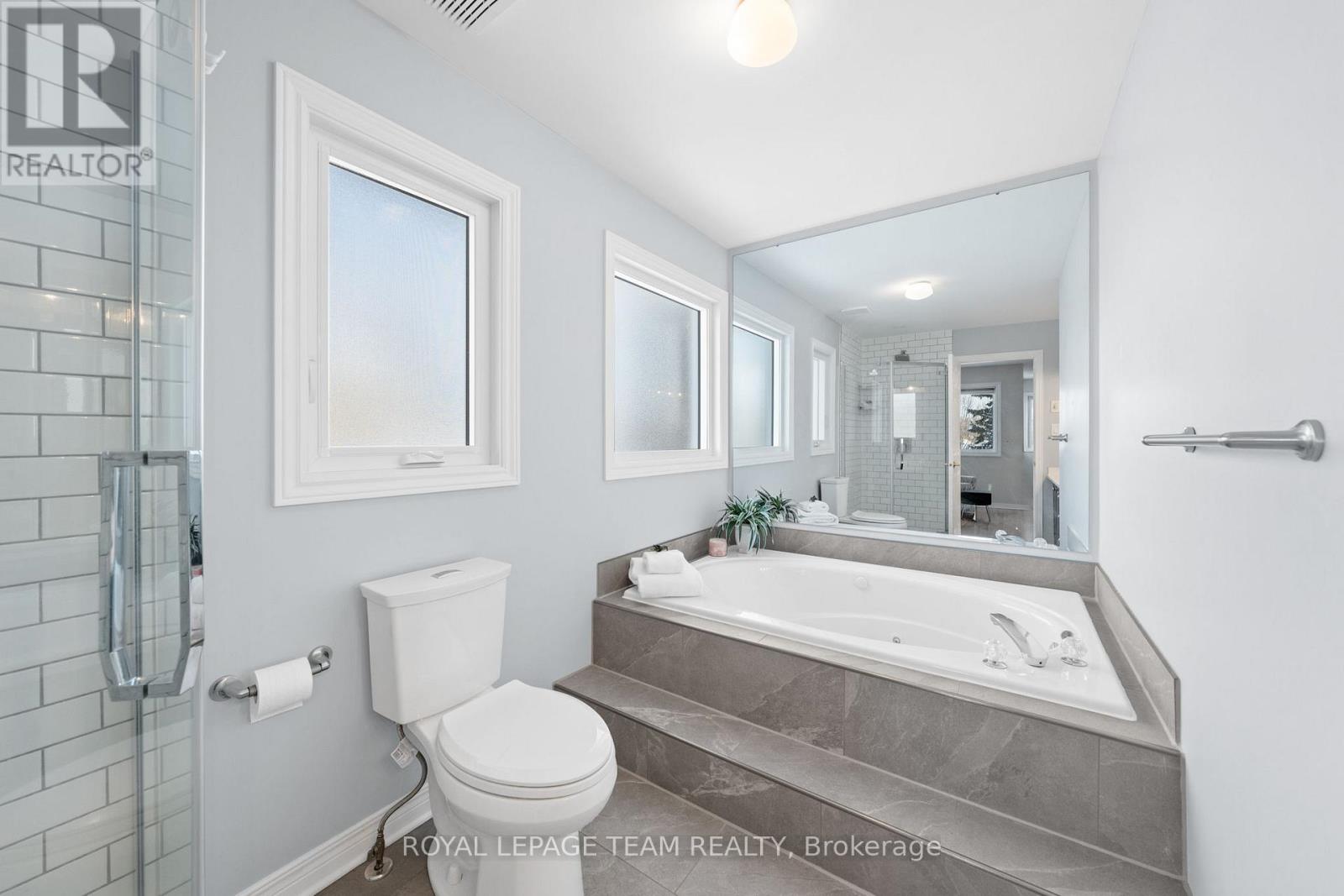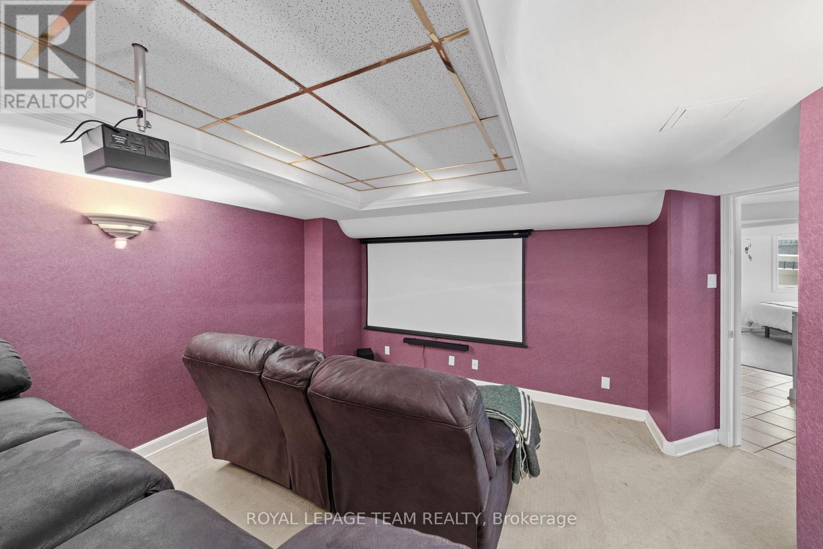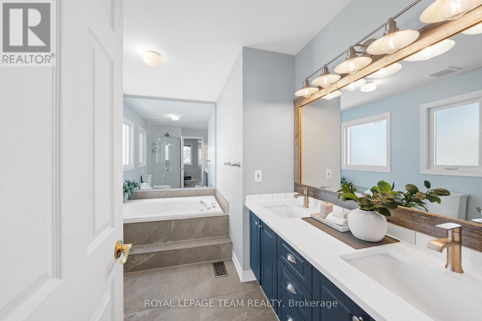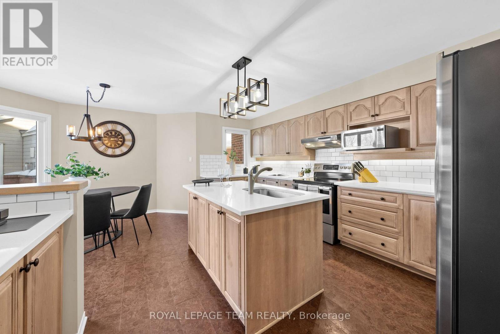 Located in the heart of Kanata Lakes, this all-brick Holitzner built walkout home offers approx. 3,790 sq. ft. of finished living space in a quiet, family-friendly neighbourhood close to top schools, amenities, Kanata Tech Park, and National Defence HQ. An interlock walkway leads to a beautiful front entry, opening into a bright 2-storey foyer. The living room with wood-burning FP provides a welcoming space to entertain, while double doors lead to a spacious formal dining room overlooking the backyard. The updated kitchen (2021) features cork floors, quartz counters and island, SS appliances including a GE fridge (2025), Bosch dishwasher (2025), subway tile backsplash, abundant cabinetry and pantry storage, plus a bright breakfast area and coffee nook overlooking the family room. Also on the main level is an updated powder room with quartz counters and black fixtures, a stately office with built-ins, crown moulding and a gas fireplace, and a laundry room with cabinetry and LG washer and dryer (2021). The impressive 2-storey family room features soaring ceilings, wood-burning FP and sliding doors that lead to the deck. Upstairs, the expansive primary suite includes a WIC and spa-inspired ensuite w/ double sinks, quartz counters, jetted tub and separate shower. A full bath with double vanity and tub/shower combo serves this level, along with 3 additional bdrms, one featuring wainscoting and new carpet (2022). Finished walkout LL offers a rec room with built-ins and heated floors, theatre room, storage areas, 5th bdrm, and full bath w/heated floors, perfect for an in-law or guest suite. Backyard oasis is an entertainer's dream featuring beautiful landscaping, heated inground saltwater pool, deck with underneath storage, 2nd deck ideal for a hot tub or patio furniture, and a fully fenced yard. Windows and doors updated 2018/2019. Solar panels installed 2025. A must-see home in Kanata Lakes! 24 Hours Irrevocable on all offers preferred. (id:64974)