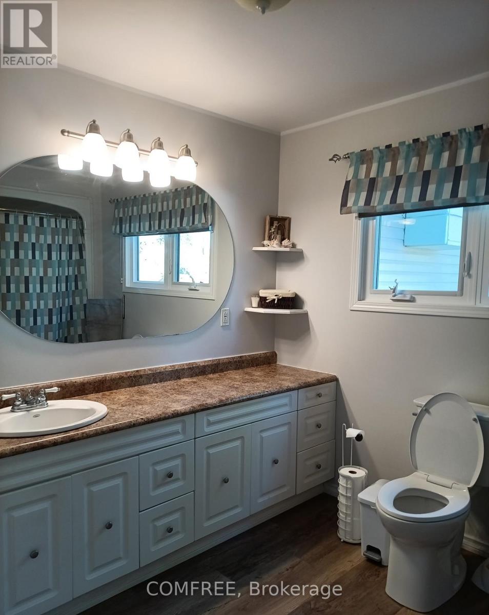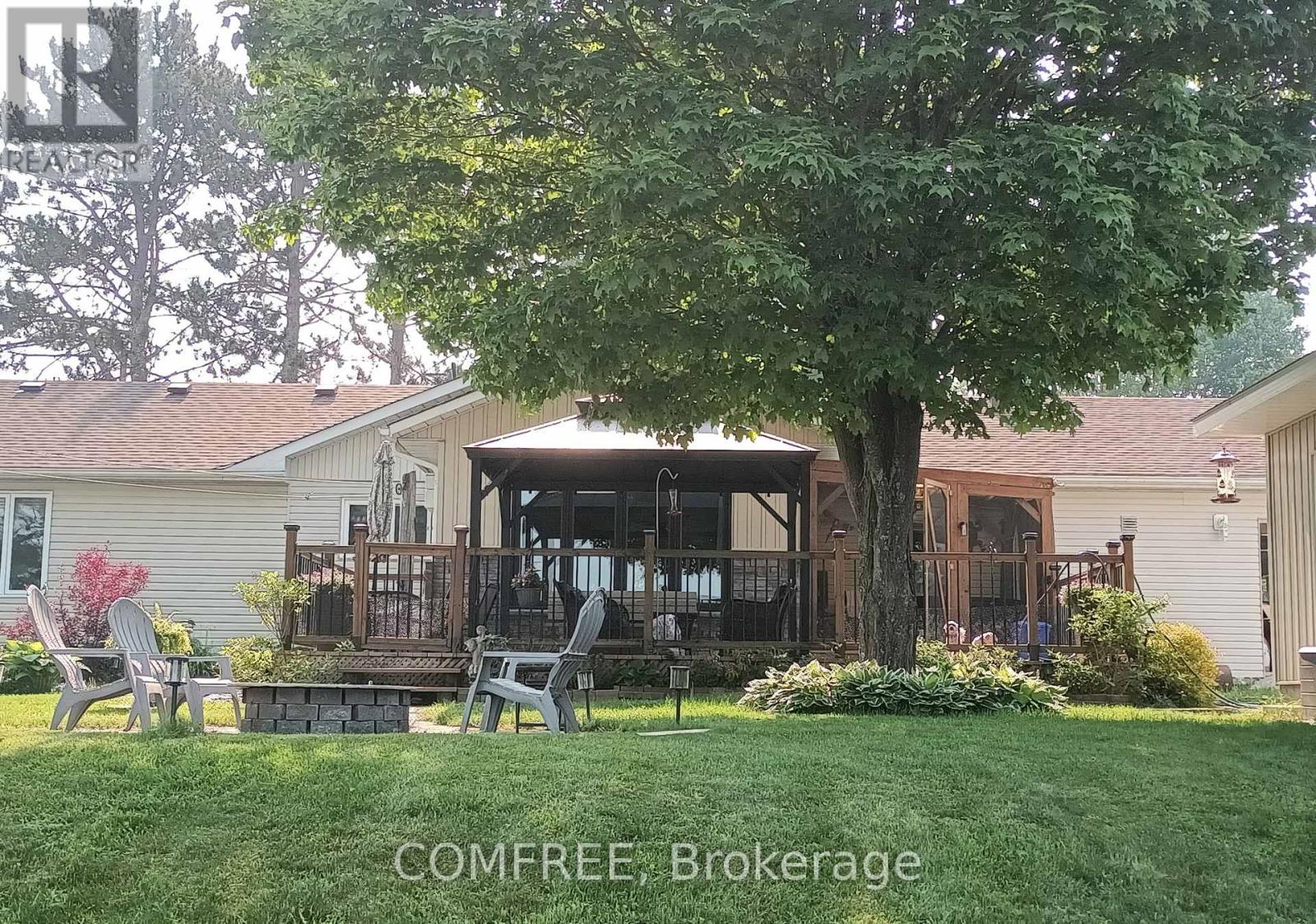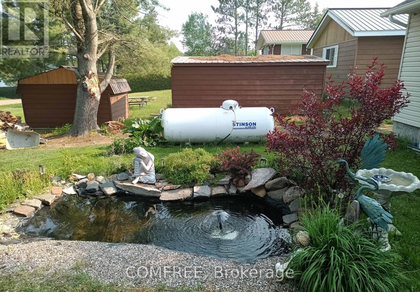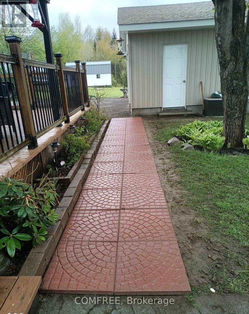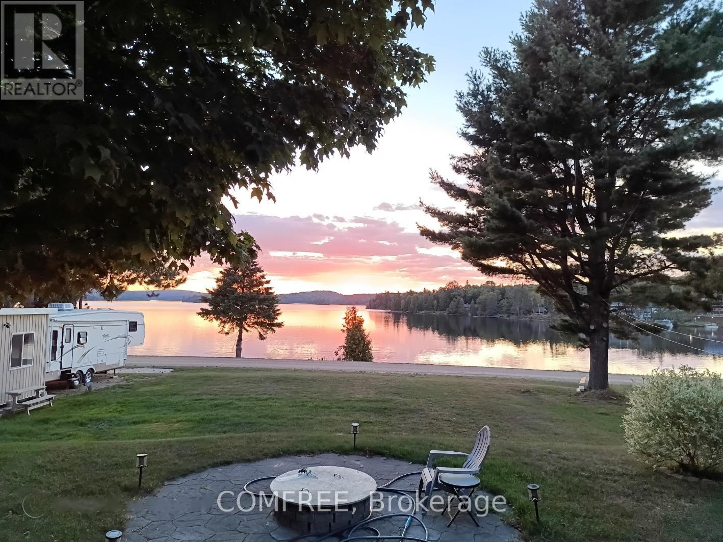 Water view 4 season custom home, with view into Algonquin Park . Three bedroom home with 2 identical master bedrooms and 1 smaller one for bedroom or office. Open concept living room, kitchen and dining room. Has all new energy efficient casement windows. Wood stove in basement for auxiliary heat. Ceiling fans in bedrooms and living and kitchen (with remotes). Large 3 piece bath room and a smaller powder room. 9'x10' screened in gazebo, which leads on to a 14'x28'6" deck with a 10'x12' metal roof open gazebo on Lake side of house. RV parking spot with electrical and water hook up. Water pump at lake to water gardens. House has a 1.5 car drive thru garage (heated) 19'6x26' with a 2 car carport 32'x26' on road side. Detached 2 car garage 24'x24' with hydro. Ideal for keeping all vehicles covered. 10'x16' storage shed with hydro. All garage doors have electric openers. Roof updated in 2024. (id:64974)