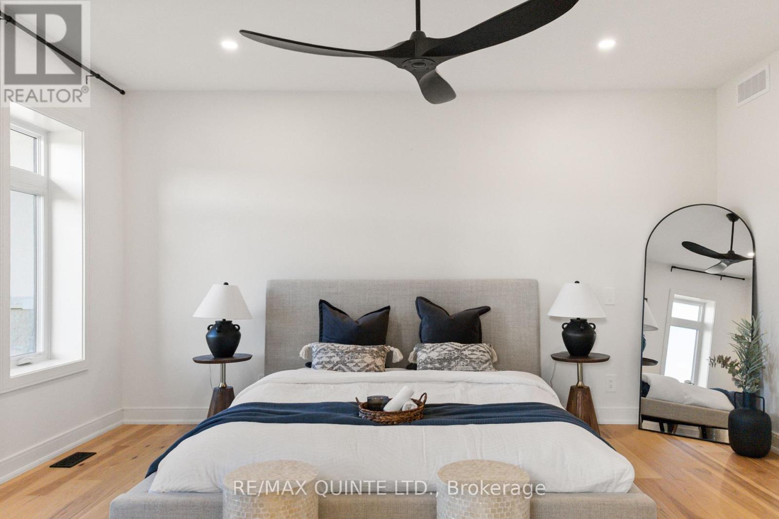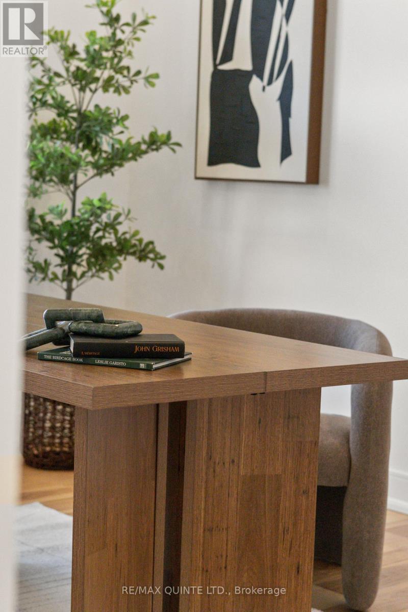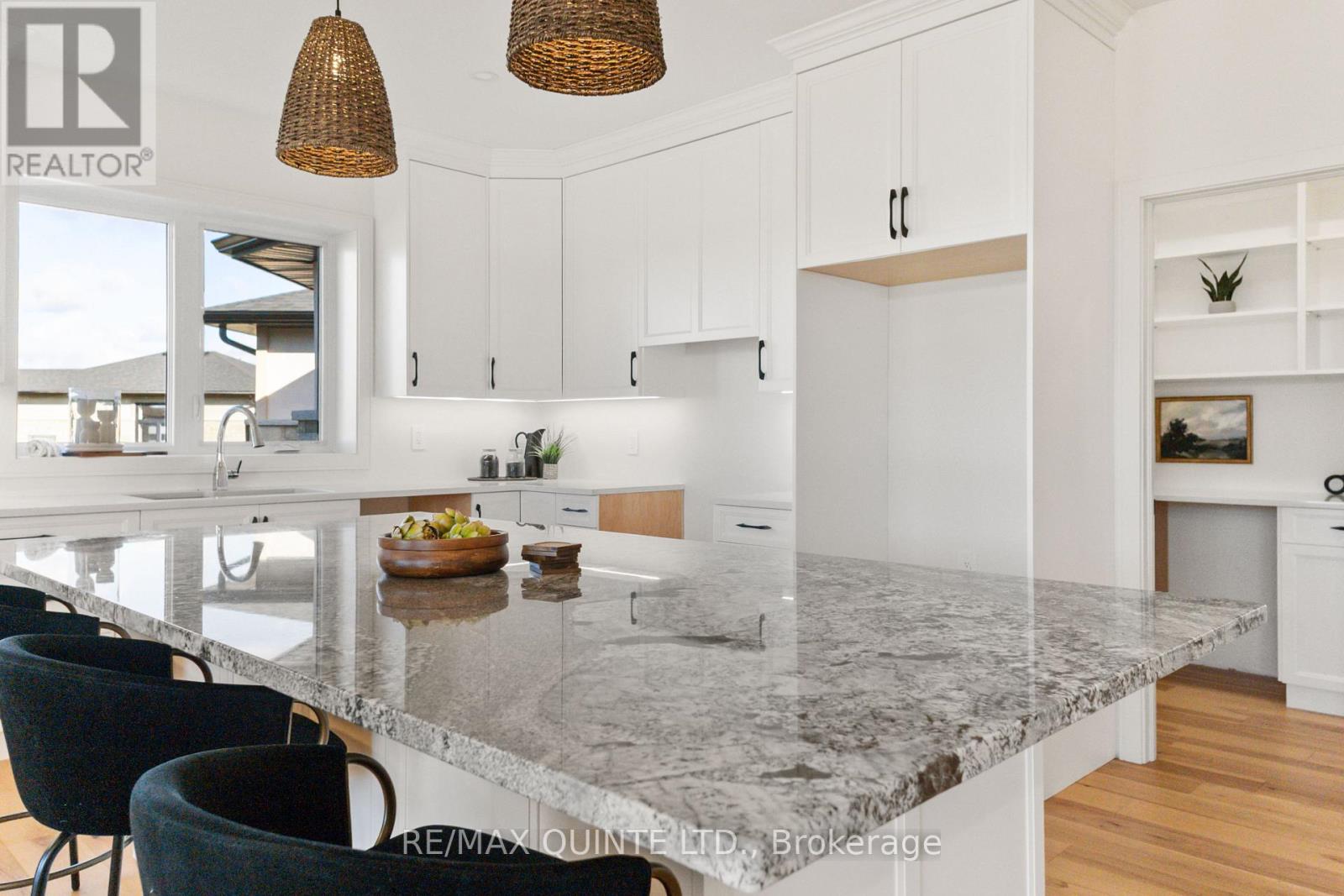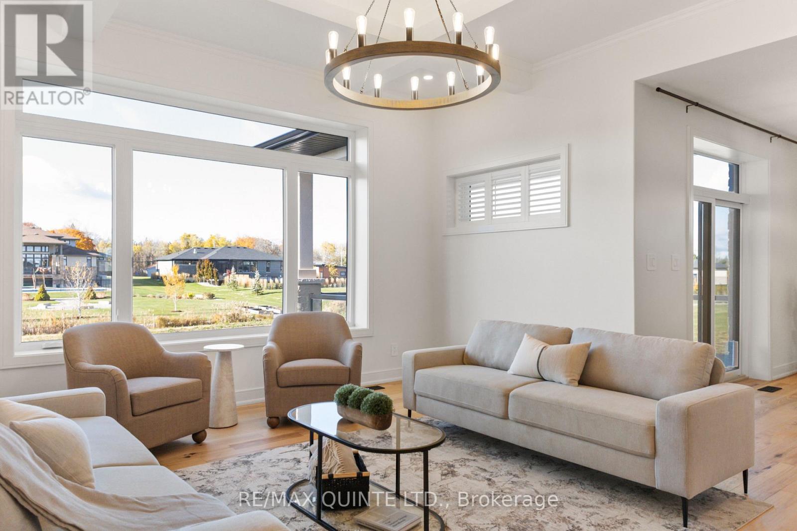 This striking executive stone and stucco home offers scenic water views and is located in the desirable "Watermark on the Bay" community in Prince Edward County - just minutes from Belleville and close to trails, parks, vineyards, and the Bay of Quinte. Residents of this elegant enclave enjoy private access to a marsh-front walking trail along the shoreline. Built with energy-efficient Insulated Concrete Form (ICF) construction and a forced air electric heat pump, the home is designed for year-round comfort. Inside, you'll find wide-plank wood flooring, quartz countertops, quality cabinetry, and a striking granite island in the contemporary kitchen. The spacious layout includes a walk-in butler's pantry, a generous mudroom with laundry, and a beautifully appointed 5-piece ensuite. Outdoor living is just as impressive, with a covered front porch and a rear deck featuring glass railings. The bright and open lower level has drywalled walls and is ready for your finishing touch. An oversized attached garage - nearly 1,000 sq. ft. - offers high ceilings, large windows, and ample space for storage or hobbies. With municipal water, Bell Fibe Internet, and a premium location in one of the area's most exclusive neighbourhoods, this home delivers comfort, style, and lasting value. (id:64974)