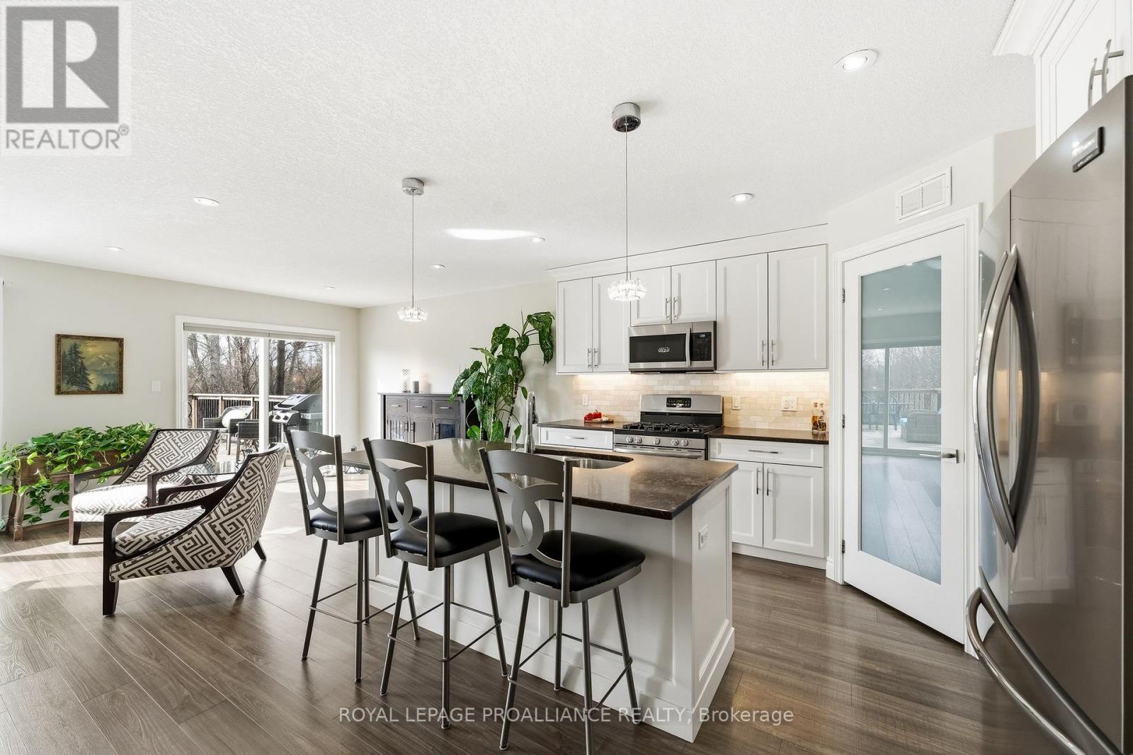 Located in the lakeside community of Brighton and minutes from Presqu'ile Provincial Park, this well-kept bungalow is tucked into a friendly, established neighbourhood and offers a practical, comfortable layout with the space and finishes you are looking for. This all-brick and stone home is fully finished, designed for low-maintenance living, and shows pride of ownership throughout. The main level features a functional layout with two bedrooms, two full baths, and the convenience of main floor laundry. The heart of the home is airy and open-concept, featuring a bright living area, a dedicated dining space, and a beautifully appointed kitchen. With quartz countertops, a central island ideal for entertaining, and a desirable walk-in pantry, it strikes the right balance between style and functionality. Patio doors lead to the oversized deck overlooking mature trees and green space, offering both privacy and a natural backdrop that changes beautifully with the seasons. The primary bedroom is bright and inviting, complete with an upgraded ensuite featuring a walk-in shower and double sink vanity with quartz countertops. The fully finished lower level substantially expands the living space highlighted by the expansive family room centred around a beautiful stone fireplace, ideal for quiet evenings or hosting family and friends. This level also includes two additional bedrooms, a full bathroom, and a versatile flex room suited for a home office, gym, or additional storage. Completing the home is a spacious 1.5-car garage with plenty of room for a workbench or gear. At just 9 years old, this home is perfect for those looking to enjoy Brighton's lakeside walks, nearby parks, and close-knit community atmosphere without the worry of constant upkeep! (id:64974)