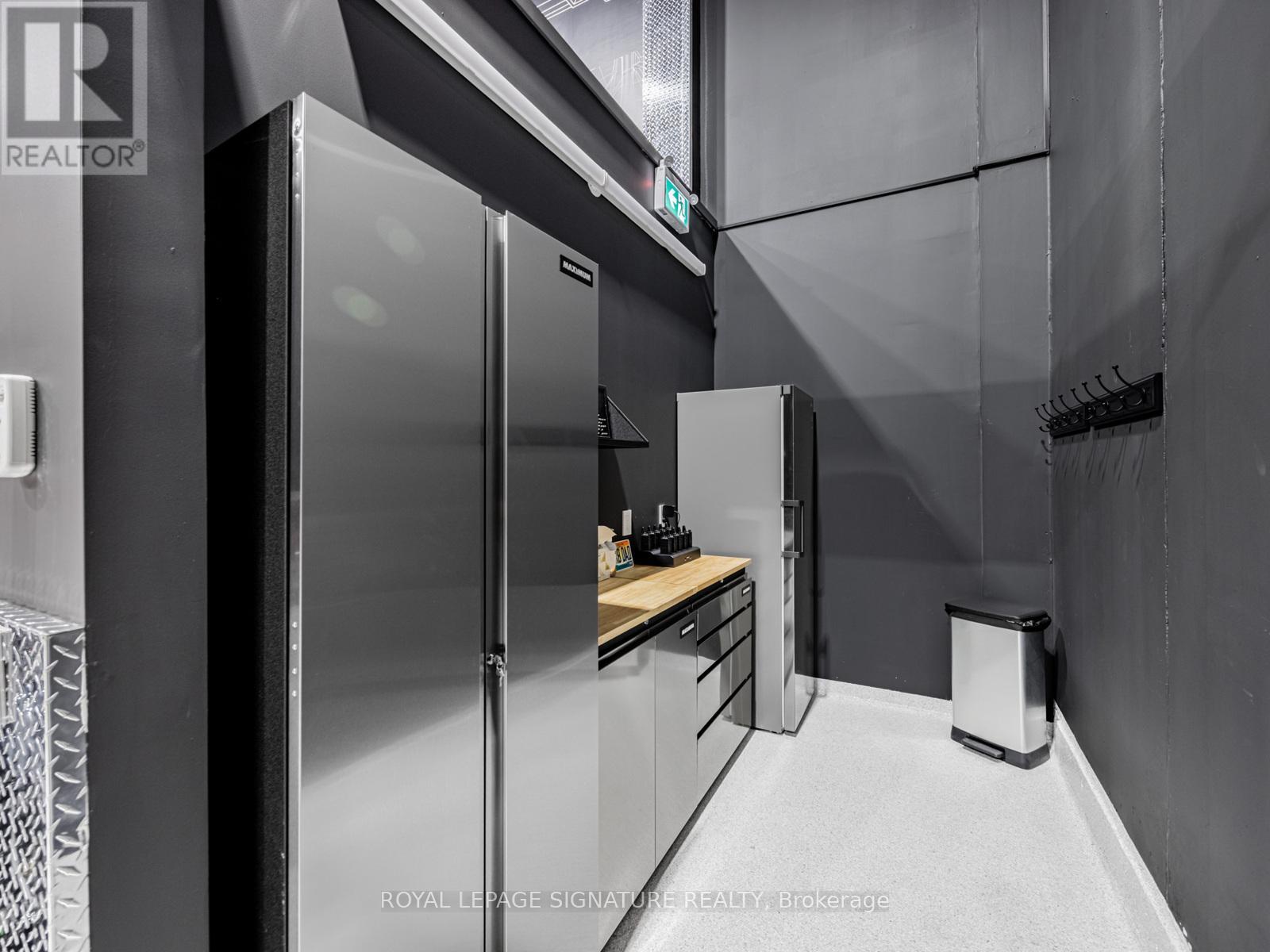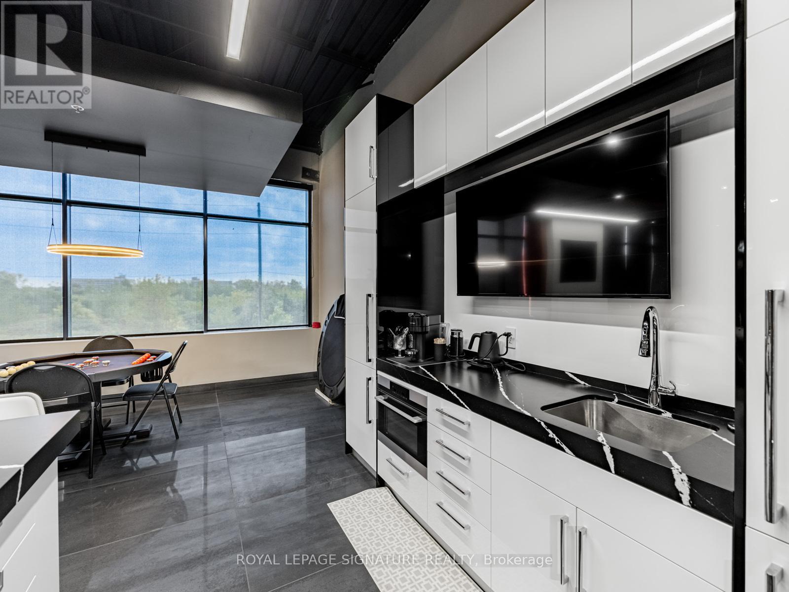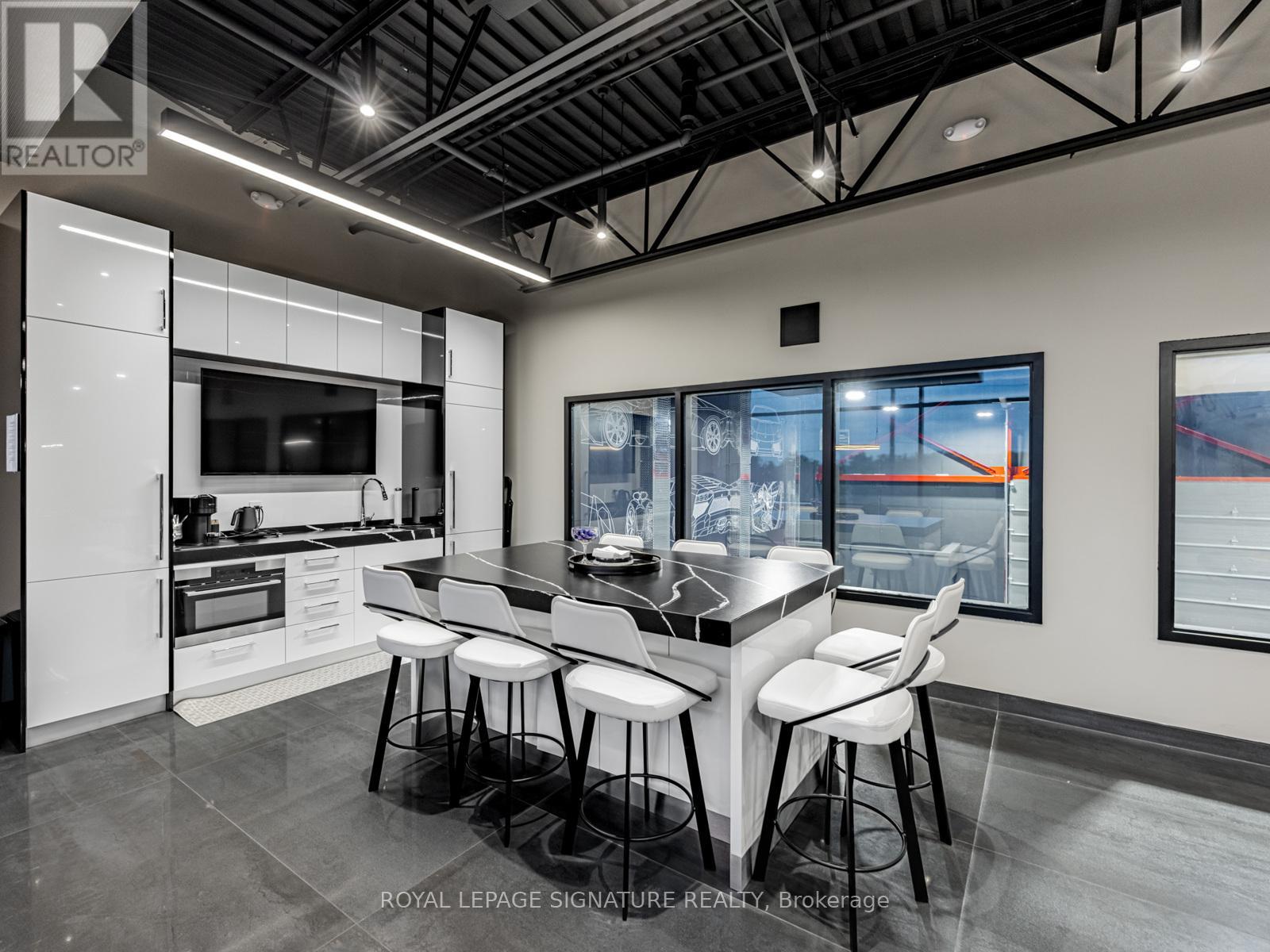 The Ultimate Man Cave: Designer 2-Storey Industrial Loft Space A Rare & Luxurious Industrial Condo Like No Other A Must-See! This two-storey, custom-renovated industrial loft is the ultimate lifestyle space perfect for car enthusiasts, entrepreneurs, creatives, or anyone seeking an elevated blend of design and function. Two units have been seamlessly combined into one expansive, open-concept environment with no structural columns,offering exceptional flexibility and flow.Boasting a total of 3,530 square feet 2,599 SF on the main floor and 931 SF on the second level this fully climate-controlled unit is professionally finished with high-end designer touches, including:Oversized 15 ft x 15 ft drive-in door Diamond-plated metal wall finishes Fully sealed epoxy floors State-of-the-art LED lighting system Handicap-accessible washroom on the main floor Additional 2-piece washroom on the second floor Private elevator access to both floors The chef-inspired kitchen is a showstopper featuring luxury tile finishes, a large centre island, full-size fridge and freezer, and a built-in pizza oven, ideal for entertaining or unwinding in your personal retreat.Security and convenience are top-tier with a 6-camera security system, open sightlines, and direct access to major highways and nearby amenities. All furnishings can remain if desired move in and enjoy the space from day one.This is more than a workspace its a lifestyle statement. (id:64974)