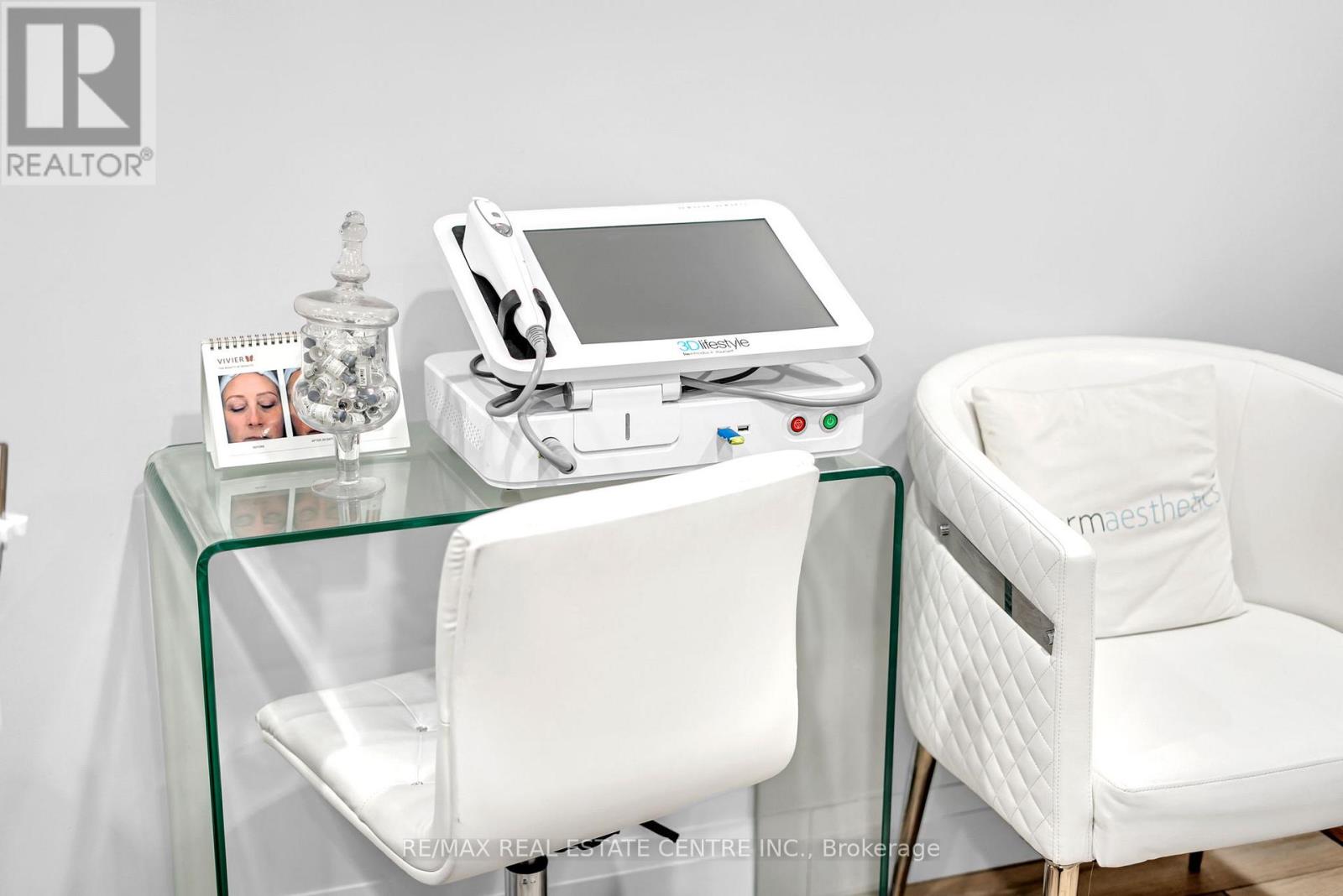 Turnkey medical aesthetics clinic for sale in a prime, high-demand location. Well-established business with a loyal repeat clientele and strong brand presence. The clinic offers a comprehensive range of non-invasive aesthetic services, including injectables, chemical peels, cryotherapy, tattoo removal, face and body contouring, medical-grade facials, non-surgical facelift treatments, fractional RF microneedling, skin rejuvenation, teeth whitening and laser hair removal. The space is fully equipped with a professional build-out, modern treatment rooms, reception area, and advanced equipment. Proven operating systems, protocols, and branding are already in place, allowing for a smooth transition and immediate operation. Ideal opportunity for aestheticians, medical professionals, or investors seeking a scalable business. Excellent growth potential through extended hours, expanded service offerings, membership packages, and targeted digital marketing. Gross lease with affordable monthly rent of $1,450 + HST, including utilities and property taxes-exceptional value for a medical-use space. Training and transition support available. Additional information available through the listing agent. (id:64974)