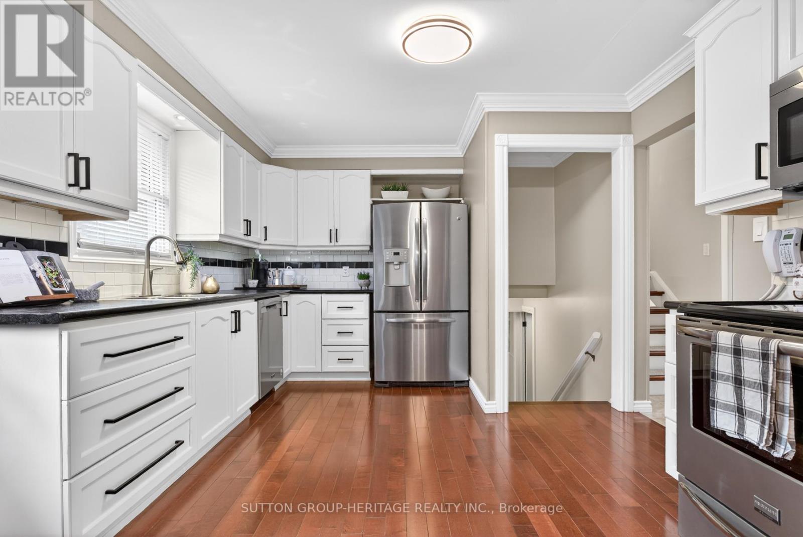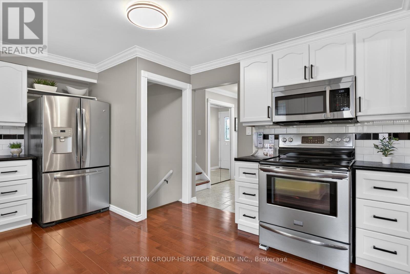 Stylish & Desirable Side-Split in a Quiet Oshawa Neighbourhood. Welcome home to this beautifully maintained 3-bedroom, 2-bathroom side-split on a lovely corner lot in one of Oshawa's quiet, family-friendly neighbourhoods. Bright, sunny, and truly move-in ready, this home combines stylish upgrades with a comfortable, functional layout. Step inside to a welcoming living room featuring a large bay window that fills the space with natural light, rich hardwood floors, and elegant crown moulding that adds a touch of sophistication. The adjoining dining area flows seamlessly into the gorgeous updated kitchen, complete with a sleek tile backsplash, stainless steel appliances, ample cabinetry, and plenty of counter space for cooking and entertaining. The split-level design offers excellent separation of space. Upstairs, you'll find three generous bedrooms, including a primary bedroom with his-and-hers closets. The updated main bathroom is designed for relaxation, featuring a soaker bathtub and modern finishes. The cozy lower-level family room is perfect for movie nights or casual gatherings, anchored by a warm gas fireplace and offering a comfortable retreat from the main living area. Additional storage spaces throughout the home ensure everything has its place, helping you stay organized with ease. Outside, the corner lot provides extra presence and curb appeal, with room to enjoy outdoor living in the fully fenced side yard, complete with a Pergola to enjoy in rain or shine. Stylish, well cared for, and thoughtfully updated, this move-in ready home is an ideal choice for buyers seeking comfort, charm, and modern features in Oshawa. (id:64974)