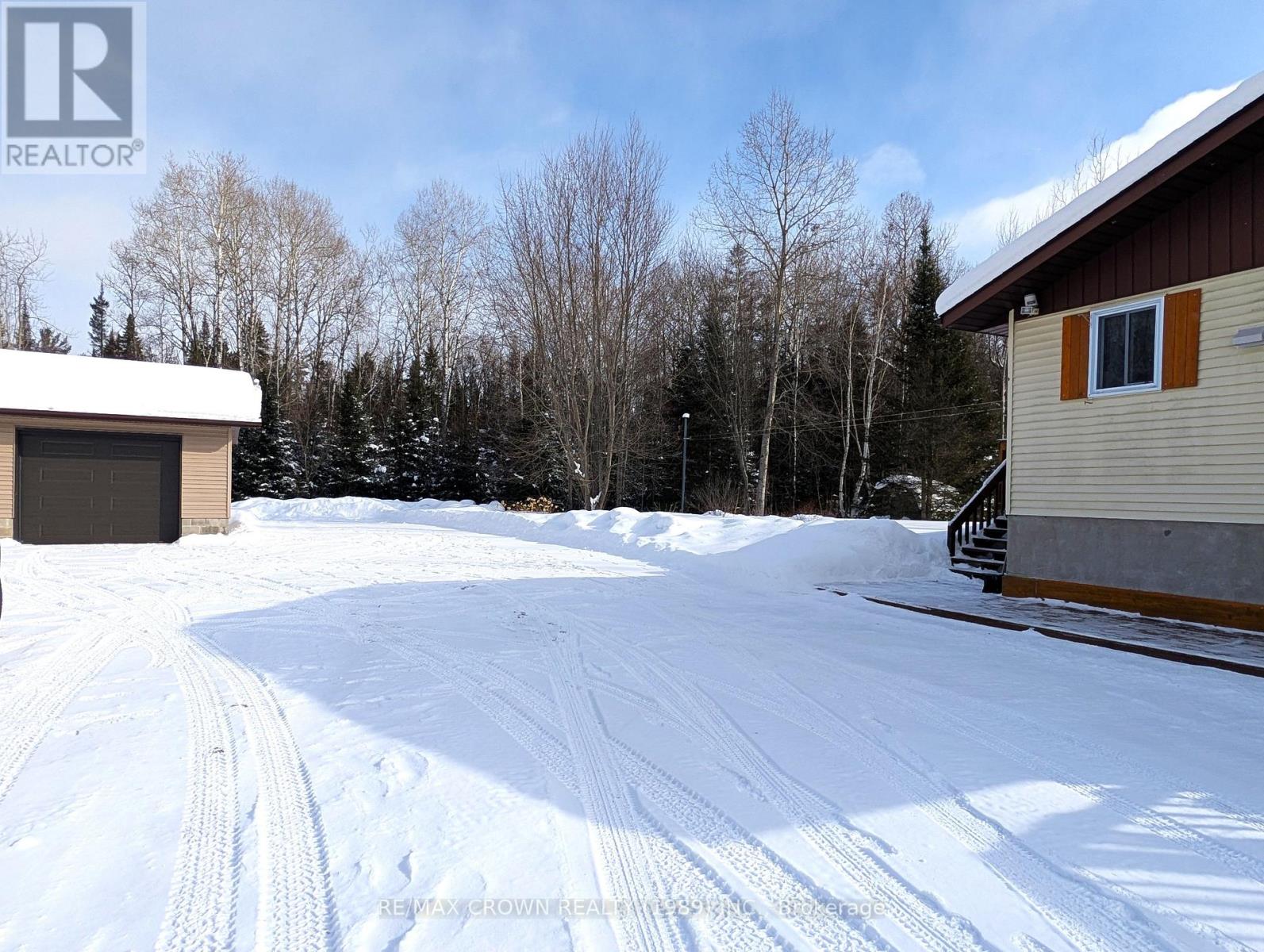 Welcome to your private sanctuary in the highly sought-after community of Corbeil. This beautiful raised bungalow is perfectly situated on a lush 1.04-acre lot, where a thick perimeter of mature trees ensures total privacy and a peaceful atmosphere. From the moment you arrive, the expertly manicured landscaping and expansive grounds set the stage for a home that has been meticulously cared for and thoughtfully designed. The heart of the home features a bright and airy open-concept main floor that seamlessly connects the living and dining areas, creating an inviting space for both quiet evenings and lively entertaining. With four spacious bedrooms and 1.5 well-appointed bathrooms, there is plenty of room for a growing family or a dedicated home office. The interior is kept crisp and comfortable throughout the warmer months with reliable central air conditioning. The living space extends into the fully finished basement, which offers a large rec room perfect for relaxing or entertaining. This lower level also provides an abundance of storage solutions, ensuring every seasonal item has its place. Outside, the property is a dream for hobbyists and professionals alike, headlined by a massive 26' x 27.5' detached garage. This impressive structure includes a large workshop with 220V and ample space for vehicles, equipment, and seasonal toys, complemented by a convenient storage shed and a driveway with plenty of parking for guests. Combining the tranquility of a rural retreat with the convenience of modern amenities, this property is truly a must-see to appreciate its full scale and beauty. (id:64974)
