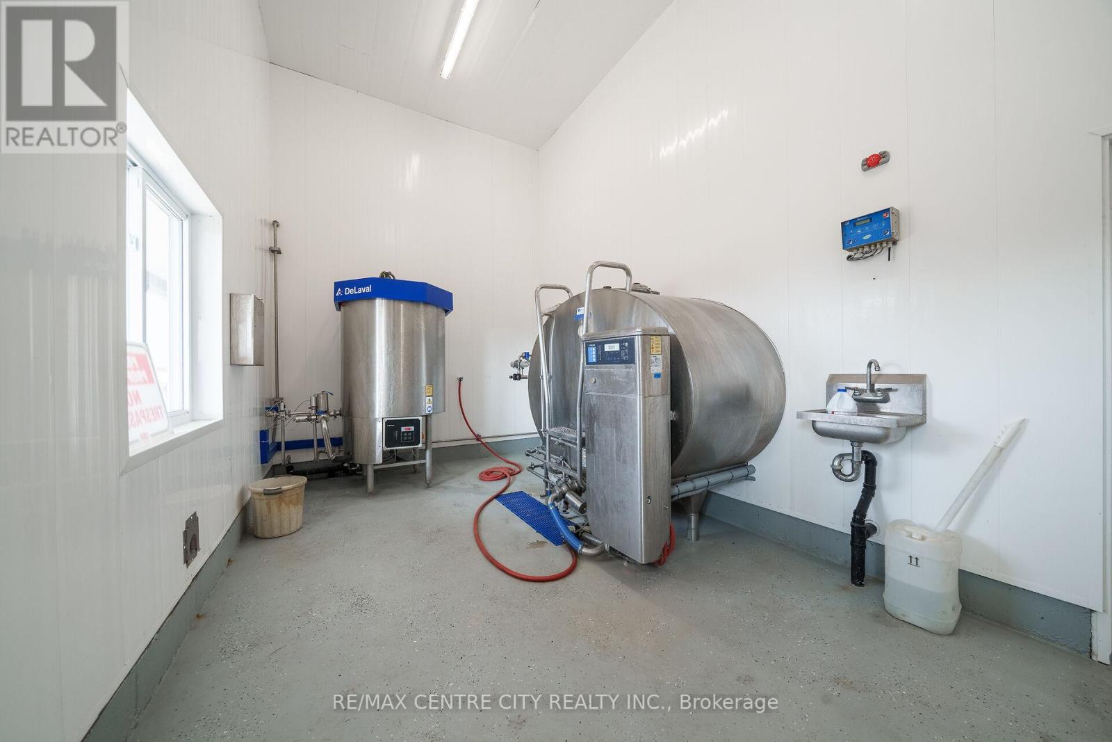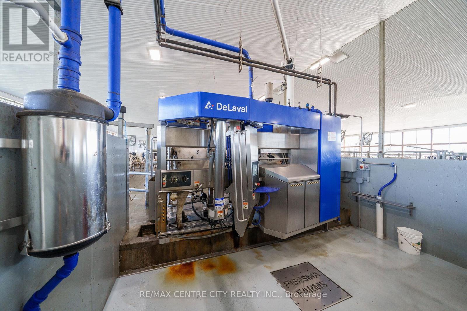 This Ongoing Dairy operation with 59.76KG of Saleable Quota and a 1600 space nursery barn on 90 acres is just minutes west of Smithville in Niagara Region. The bright and airy 110x200' free stall dairy barn was mindfully built in 2021 with convenient workload and growth in mind. The 65 milking stalls and DeLaval V310 robot milker are on the one side of the barn separated by a 18' feed alley, and the other side holds the replacements and dry cows with 44 more Jourdain stalls & headlocks. The two large feed bunks and bailage provide ample feed using the Patz mixer on site and the auto feed pusher keeps it all tidy. The ventilation, feed auger and manure system in this barn are automated using the centralized Maximus control system. The additional revenue stream on this farm is ideal with the 55x127' nursery barn built in 2000, it is set up with 4 rooms on full slats and shares the liquid manure pit with the dairy barn. The 28x100' drive shed has 3 large doors and a generator room with the automatic stationary Diesel generator that powers the entire farm. Other outbuildings include a 4200 bushel grain bin, 37' wide open quonset, and a 19x14' storage building currently being used as a chicken coop. The home on this farm is a recently updated 1200sqft open concept raised bungalow with a metal roof and hosts 5 bedrooms and 2 bathrooms with an attached garage. This farm is a great opportunity and is turn-key. (id:64974)