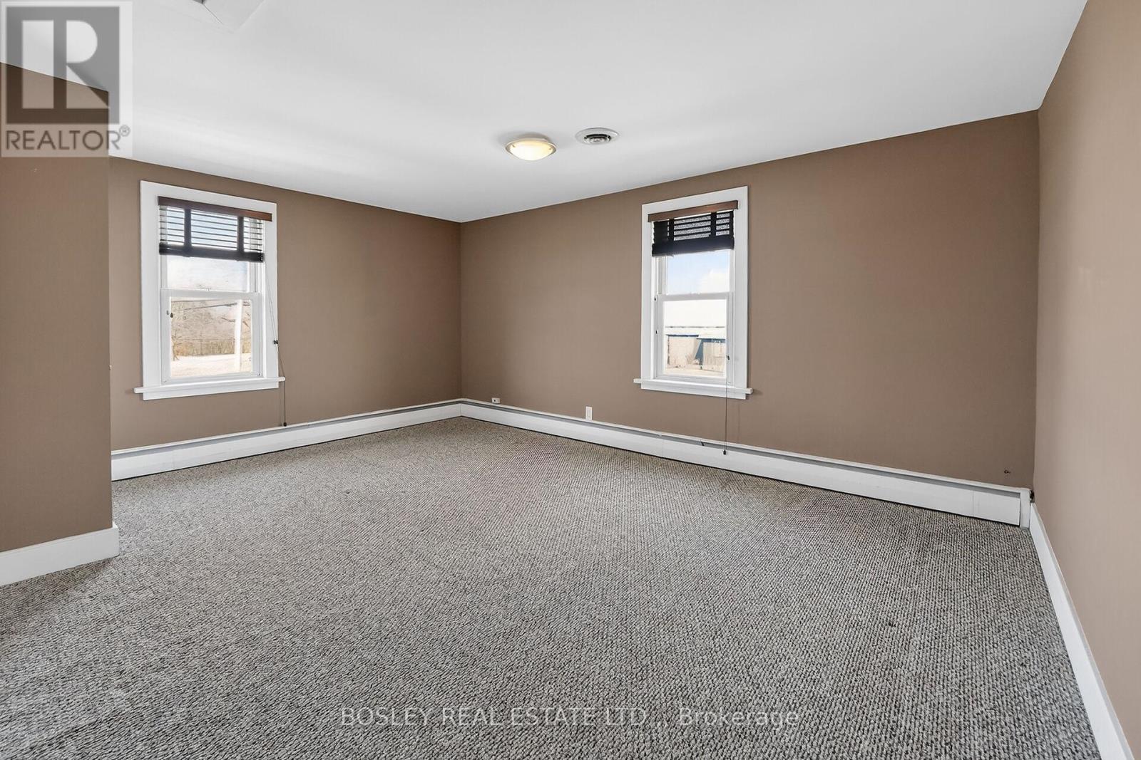 Conveniently located with easy access to Virgil and Old Town, this classic 2-storey farm-house combines its rural setting with contemporary amenities and trendy decor. Beyond the reception foyer is the bright and airy open-plan main floor with the great-for-entertaining combination Living and Dining Rooms being overlooked from the well-appointed galley-style kitchen. There is a 3 piece bathroom and relaxed family room with cozy gas fireplace and walkout to the private patio and 12ft X 10ft gazebo-covered deck. There is parking for up to 6 vehicles on the paved driveway and easy access to the mud room with its laundry closet. On the upper level off the loft landing is the primary bedroom which boasts 4 double wardrobes and has privileges to the 5 piece bath. The second bedroom is across the hall and ideal for in-home office/study, studio, exercise room or TV lounge is the "flex" room. The home offers energy efficient hot-water base-board heating, central air conditioning, filtered well-water, and septic field, 200 Amp electrical, Set on a 1.66 acre lot with vineyard views, the home is turn-key ready for a minimum of a one-year lease with preference given to a multi-year tenancy. (id:64974)