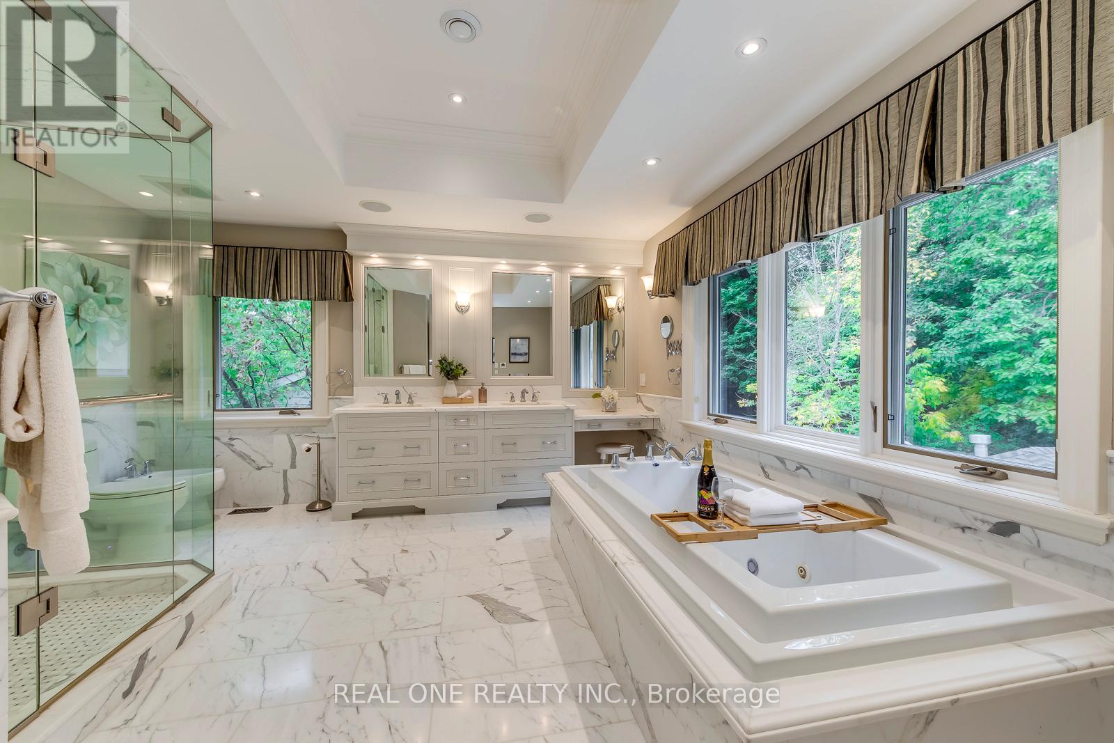 5 Elite Picks! Here Are 5 Reasons To Make This Home Your Own: 1. LOCATION! LOCATION LOCATION! Absolutely Spectacular 4,487 Sq.Ft. (Plus Walk-up Basement) Executive Home on Beautiful, Oversized Lot Backing onto Jack Darling Park & Wonderfully Tucked in on Quiet Cul de Sac Just Steps from Access to the Stunning Lakeshore, Jack Darling Park, Rattray Conservation & Waterfront Trail! 2. Outstanding Gourmet Kitchen Boasting Huge Island with B/I Table, Quartz Countertops, B/I Appliances, Convenient Servery Area with B/I Wine Fridge & W/I Pantry with B/I Shelving, Plus B/I Window Seat & Stunning Wall of Windows Overlooking the Patio, Pool & Greenspace! 3. Gorgeous F/R Featuring B/I Shelving, F/P & Multiple W/O's Leading to Patio & Pool. 4. Spacious 2nd Level with Double Skylight, Huge Linen Closet with B/I Organizers, Convenient Laundry Room with Extensive Storage & 4 Spacious Bdrms (Each with Its Own Ensuite!), Including Gorgeous PBR Suite Boasting B/I Shelving, Gas F/P, W/I Closet with B/I Organizers, W/O to Large Balcony Overlooking the Greenspace & 6pc Ensuite with Heated Flooring, Dbl Vanity, Soaker/Jet Tub, Bidet & Glass-Enclosed Steam Shower with Multiple Showerheads! 5. Beautifully Finished Walk-up Bsmt with Ample Oversized Windows Boasting Open Concept Games Room & Rec Room with F/P & W/O, Plus Exercise Room (Would Make Excellent 5th Bdrm), Large 3pc Bath, 2nd Laundry, Cold/Wine Cellar & Ample Storage! All This & SO MUCH MORE! Bright & Airy Main Level Also Includes Separate Open Concept D/R & L/R (with Gas F/P & Cathedral Ceiling), Private Office (or Main Level Bdrm) with B/I Shelving, Classy 2pc Powder Room & Mud Room with B/I Storage & Access to 3 Car (2 Tandem) Garage & Backyard! Breathtaking Private, Fenced Yard with Salt Water Pool, Extensive Patio & Convenient Cabana Complete with Wet Bar... and Backing onto the Park! Large Driveway (Room for 6+ Cars) & Expansive Front Deck with Updated Landscaping ('20). Please See Feature Sheet for List of Upgrades & More! (id:64974)