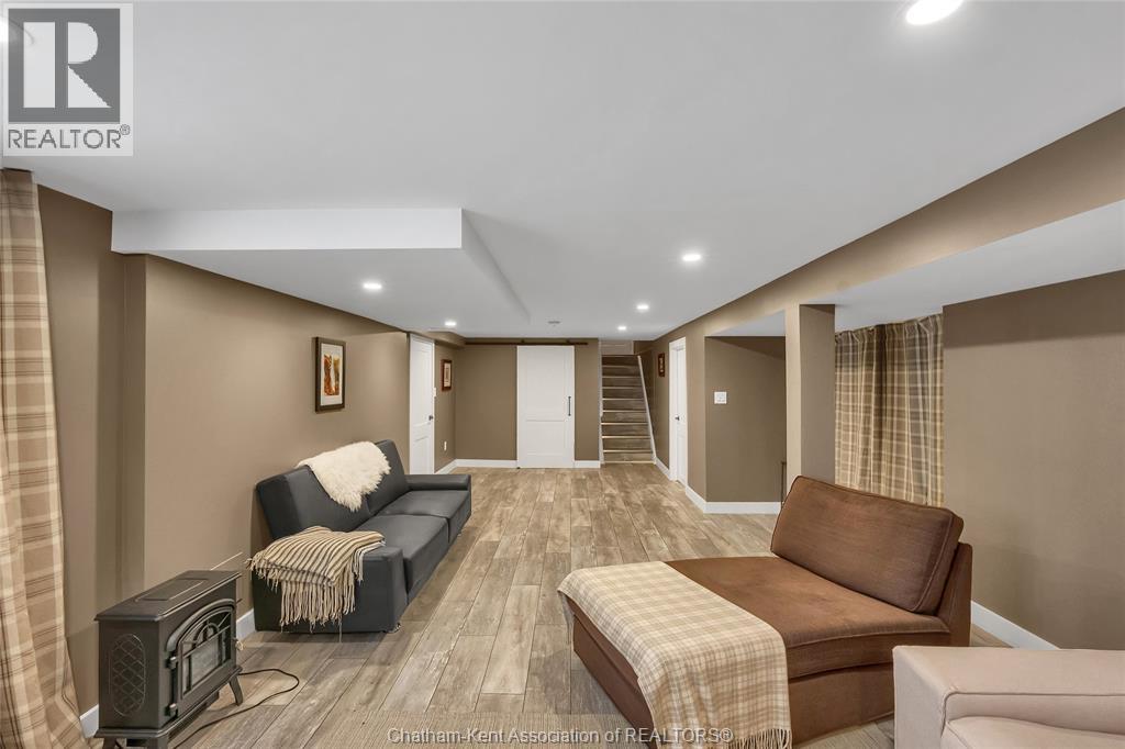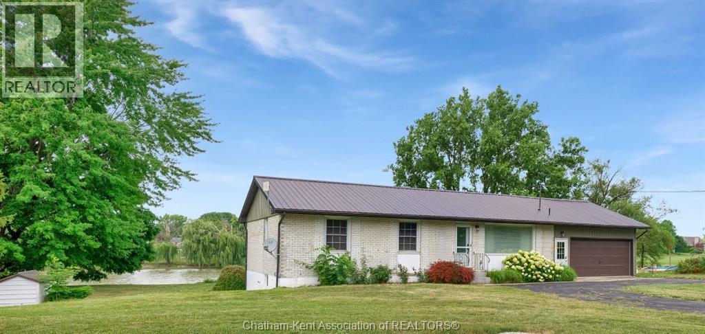 Welcome to this charming 3+1 bedroom ranch situated on the edge of town, offering the perfect blend of tranquility and convenience. Nestled along the Thames River with access to Lake St. Clair, this property is ideal for boating, fishing, or simply relaxing and taking in the beautiful views from your balcony. The long paved driveway provides ample parking, leading you to a well-maintained home with a finished basement featuring a spacious living room, full bathroom, laundry room, and an additional bedroom with direct access to the backyard and attached garage. This lower level offers great potential for rental income or a private in-law suite — please complete your due diligence and verify possibilities with the municipality. This property is 40 minutes to Windsor and 5 minutes from the 401. Don’t miss your chance to own this unique riverfront property. (id:64974)