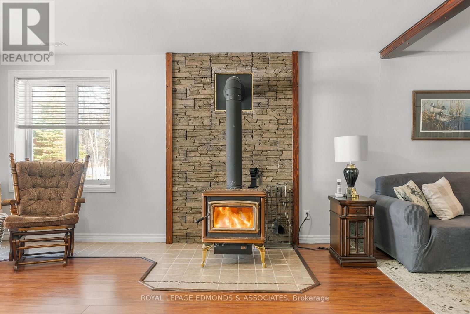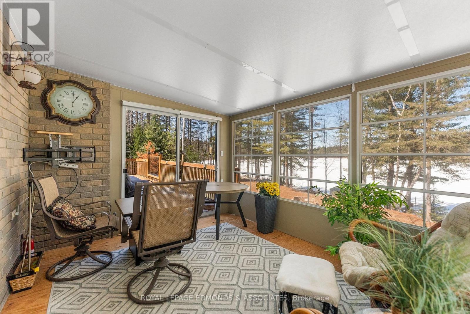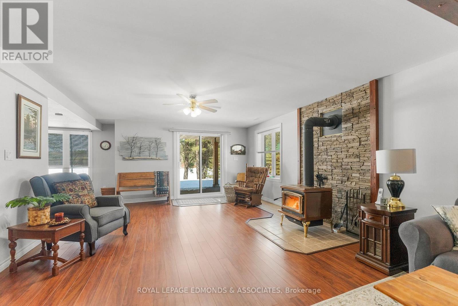 Welcome to your own private paradise - a beautifully maintained 9.75-acre waterfront estate offering over 450 feet of pristine shoreline, mature forested trails, and exceptional peace and privacy. Mudturtle Lake is a hidden gem located 5 minutes outside of Petawawa. This private lake is shared with only five other property owners and has no public access. Spring fed lake excellent for boating, swimming, and fishing (bass/pike). Inside, this spacious 3-bedroom, 3-bathroom home is designed to capture natural light and scenic water views throughout. The main floor welcomes you with a wide entryway leading into a bright front living room that flows effortlessly into the open-concept dining and kitchen area. From here, sliding glass doors open to a raised deck - perfect for morning coffee or sunset dining overlooking the water. Down the main hall, you'll find a full bathroom, a generous laundry/mud room with inside access to the attached double garage, and a large guest bedroom. The primary suite is a true retreat with its own sun-filled sitting room with great water views, a full ensuite bath, and a serene sunroom that faces the water - an ideal spot for reading or simply taking in the tranquil view. The lower level offers a sprawling rec room with a cozy wood stove, an office space, a third full bathroom, a large bedroom, and extensive utility and storage areas. A walkout leads to a covered patio where you can enjoy the peaceful waterfront setting year-round. Outdoors, the property continues to impress with a wood-heated sauna by the water, picturesque walking trails throughout the forested acreage, and a detached garage with a back workshop featuring 10-foot ceilings - perfect for hobbyists or extra storage. With its thoughtful layout, incredible privacy, and breathtaking waterfront views, this property offers the best of nature, comfort, and functionality - a true escape just waiting to be called home. (id:64974)
