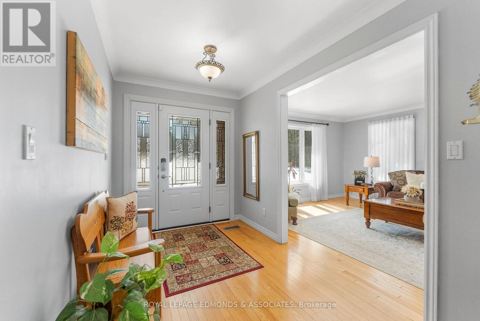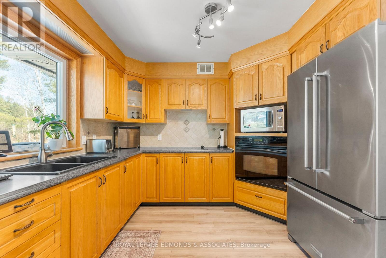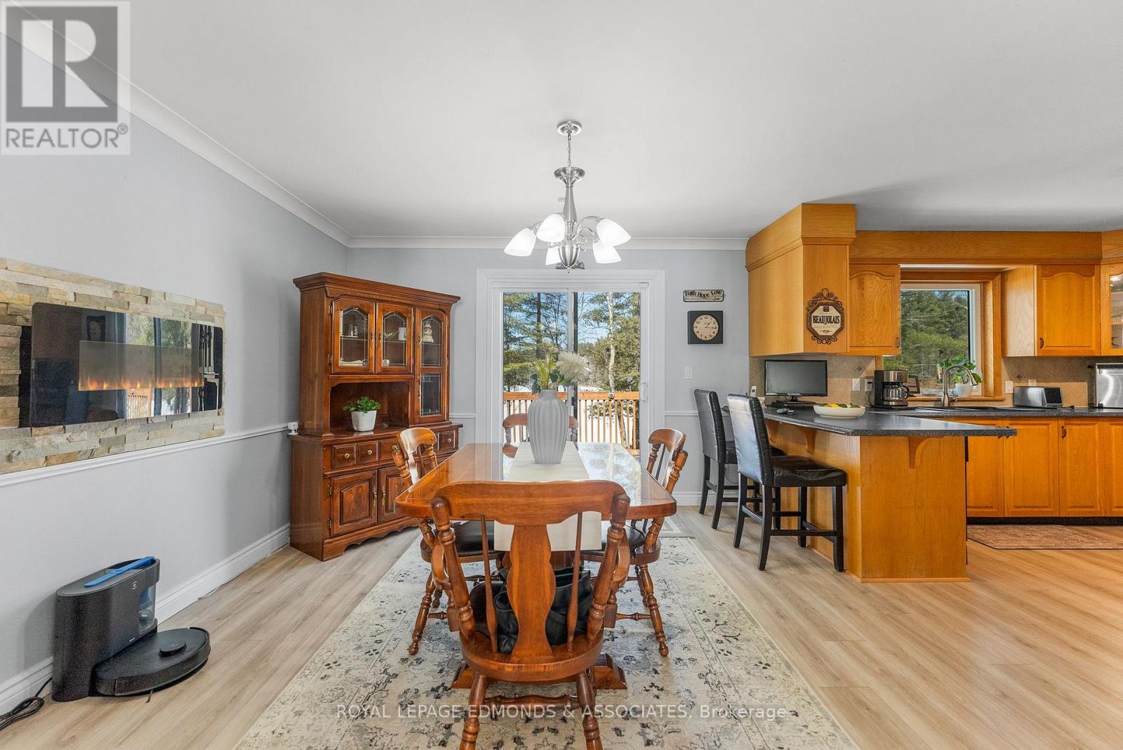 Welcome to your own private paradise - a beautifully maintained 9.75-acre waterfront estate offering over 450 feet of pristine shoreline, mature forested trails, and exceptional peace and privacy. Mudturtle Lake is a hidden gem located 5 minutes outside of Petawawa. This private lake is shared with only five other property owners and has no public access. Spring fed lake excellent for boating, swimming, and fishing (bass/pike). Inside, this spacious 3-bedroom, 3-bathroom home is designed to capture natural light and scenic water views throughout. The main floor welcomes you with a wide entryway leading into a bright front living room that flows effortlessly into the open-concept dining and kitchen area. From here, sliding glass doors open to a raised deck - perfect for morning coffee or sunset dining overlooking the water. Down the main hall, you'll find a full bathroom, a generous laundry/mud room with inside access to the attached double garage, and a large guest bedroom. The primary suite is a true retreat with its own sun-filled sitting room with great water views, a full ensuite bath, and a serene sunroom that faces the water - an ideal spot for reading or simply taking in the tranquil view. The lower level offers a sprawling rec room with a cozy wood stove, an office space, a third full bathroom, a large bedroom, and extensive utility and storage areas. A walkout leads to a covered patio where you can enjoy the peaceful waterfront setting year-round. Outdoors, the property continues to impress with a wood-heated sauna by the water, picturesque walking trails throughout the forested acreage, and a detached garage with a back workshop featuring 10-foot ceilings - perfect for hobbyists or extra storage. With its thoughtful layout, incredible privacy, and breathtaking waterfront views, this property offers the best of nature, comfort, and functionality - a true escape just waiting to be called home. (id:64974)