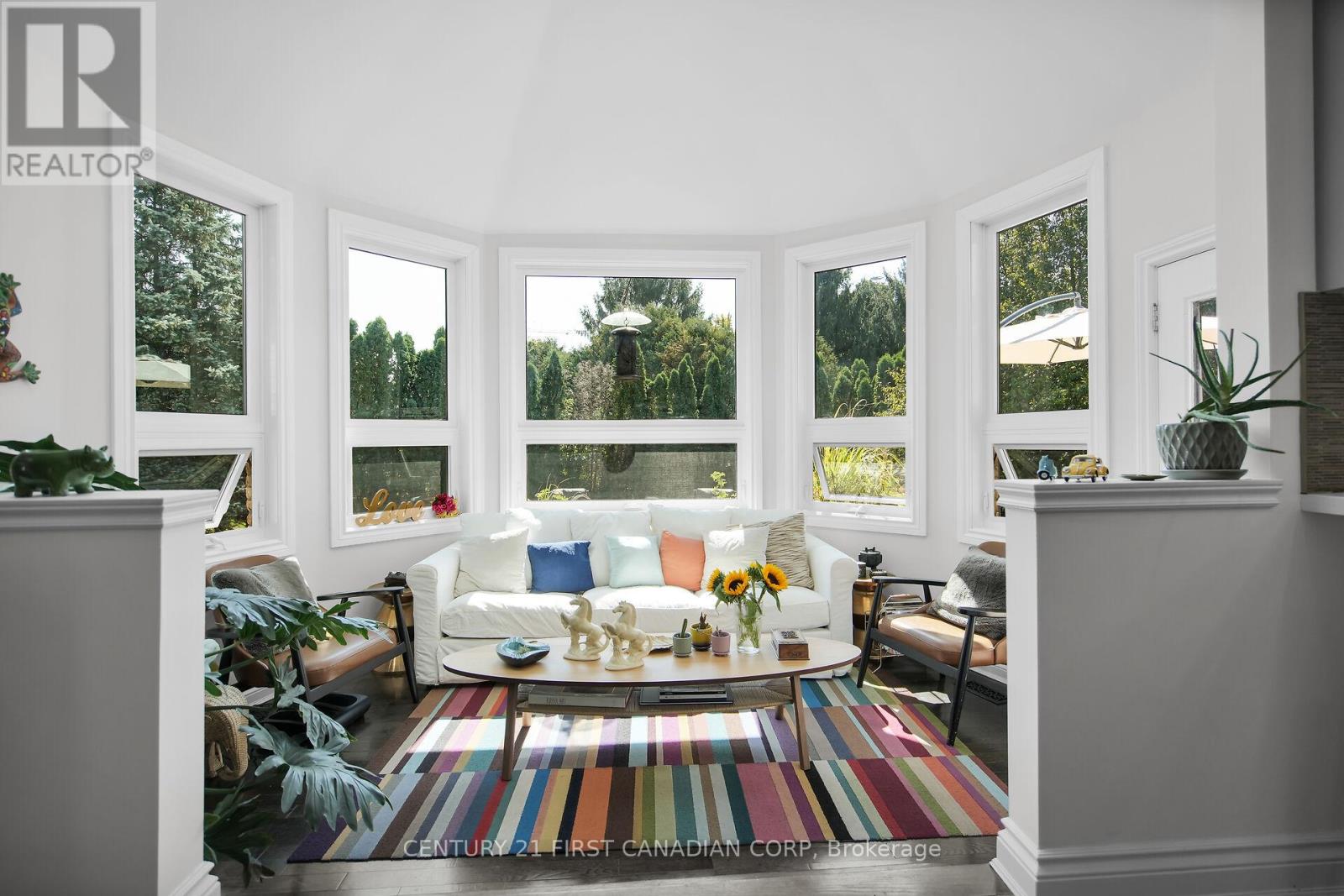 Discover a rare North London gem: an executive ranch sprawling across a magnificent 0.6-acre lot on a tranquil, tree-lined street. With over 6,000 square feet of finished living space and an impressive 148 feet of frontage, this home is designed for sophisticated family living and entertaining. The spacious interior offers exceptional flexibility, including a separate two-bedroom, self-contained suite with a private entrance, its own laundry, a walk-in closet, and a spa-like bathroom. This is the ideal arrangement for multi-generational families or as a source of supplementary rental income. The main floor is inviting with spacious rooms featuring a private primary suite, three additional bedrooms, a bright sunroom, a den, living room and a formal dining area for hosting, spacious kitchen, eat in area and laundry/mud room. Generously sized rooms throughout! Below, the finished lower level expands your living options with a large recreation/theatre room, den, and an additional bedroom, a games area, plus the additional two-bedroom suite, with a further potential of $2,000 per month income if needed. Additional financial benefit from the solar system which offers a compelling annual return of approx. $4,000, adding to the home's value. Ample parking: A 3.5 car garage and extended driveway provide generous parking for vehicles. Excellent location: Positioned just minutes from Western University, University Hospital, Masonville Mall, and highly-regarded schools. New furnace and A/C unit installed September 2025! This is more than a house, it's a home that offers space, comfort, and financial potential in a premier North London location. (id:64974)