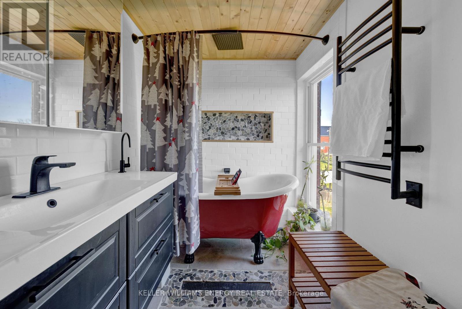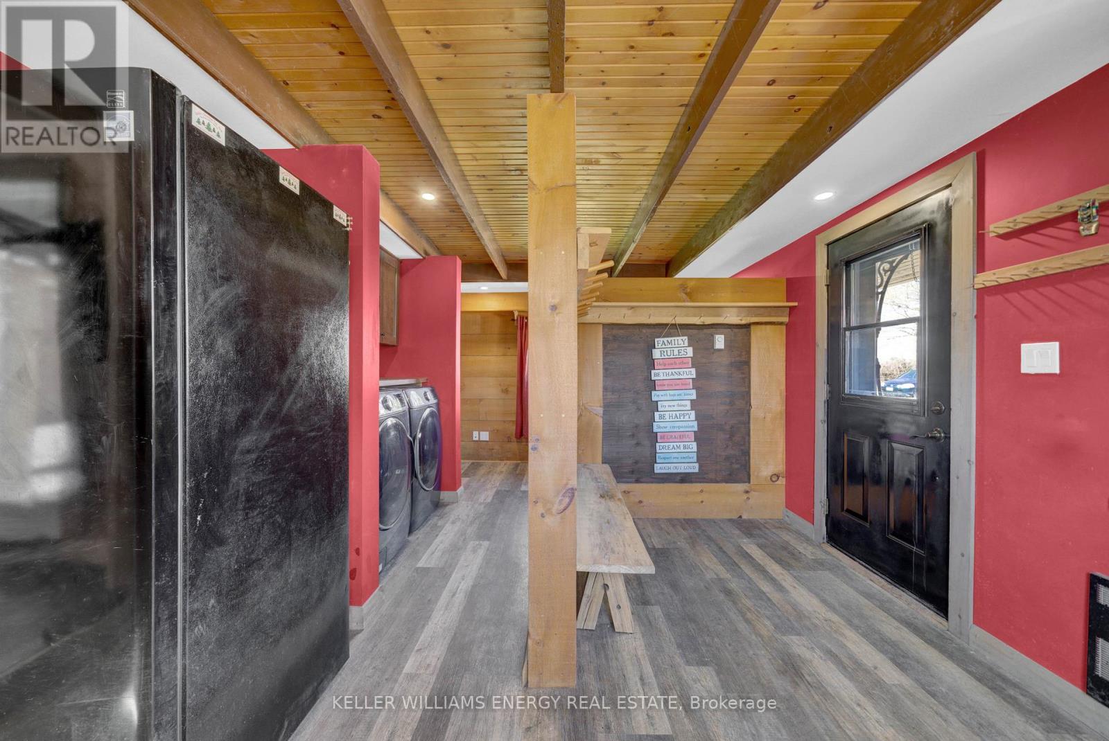 Welcome to a beautifully restored mid-19th century heritage home set on approximately 2.66 acres of mature countryside just minutes from Napanee and Highway 401. Ideally located 2.5 hours from Toronto, 3.5 hours from Montral and 30 minutes from Kingston, this idyllic property offers peaceful rural living with excellent regional access. A public boat launch to Lake Ontario is only 10 minutes away. Extensively renovated inside and out, the 2,400 sq ft farmhouse blends historic charm with modern comfort. Set back from the road along a 350 ft tree-lined driveway, the home enjoys a private, dreamlike setting surrounded by mature trees and open sky. The residence features three large bedrooms and three bathrooms, a spacious country kitchen with high-end appliances, original pine and oak plank flooring, a wood-burning fireplace, high-speed connectivity and significant mechanical upgrades including 200-amp service, high-efficiency furnace and A/C, updated insulation and water treatment systems. The renovated red barn offers over 3,200 sq ft of flexible space and is currently used as a gym, office, movie theatre and games room. With 100 AMP service and hardwired internet, it provides exceptional versatility for studio, workshop, storage or live-work use. An additional 3,000 sq ft in the grey barn and sheds offers further space for storefront potential, artist loft, recreation, storage or parking. The grounds feature mature trees, gardens and open recreational areas. A brand-new fully engineered Class 4 septic system valued at approximately $40,000 has been prepaid and scheduled for installation, offering long-term peace of mind. A rare opportunity to own a distinctive rural property combining heritage character, modern infrastructure and versatile outbuildings. (id:64974)