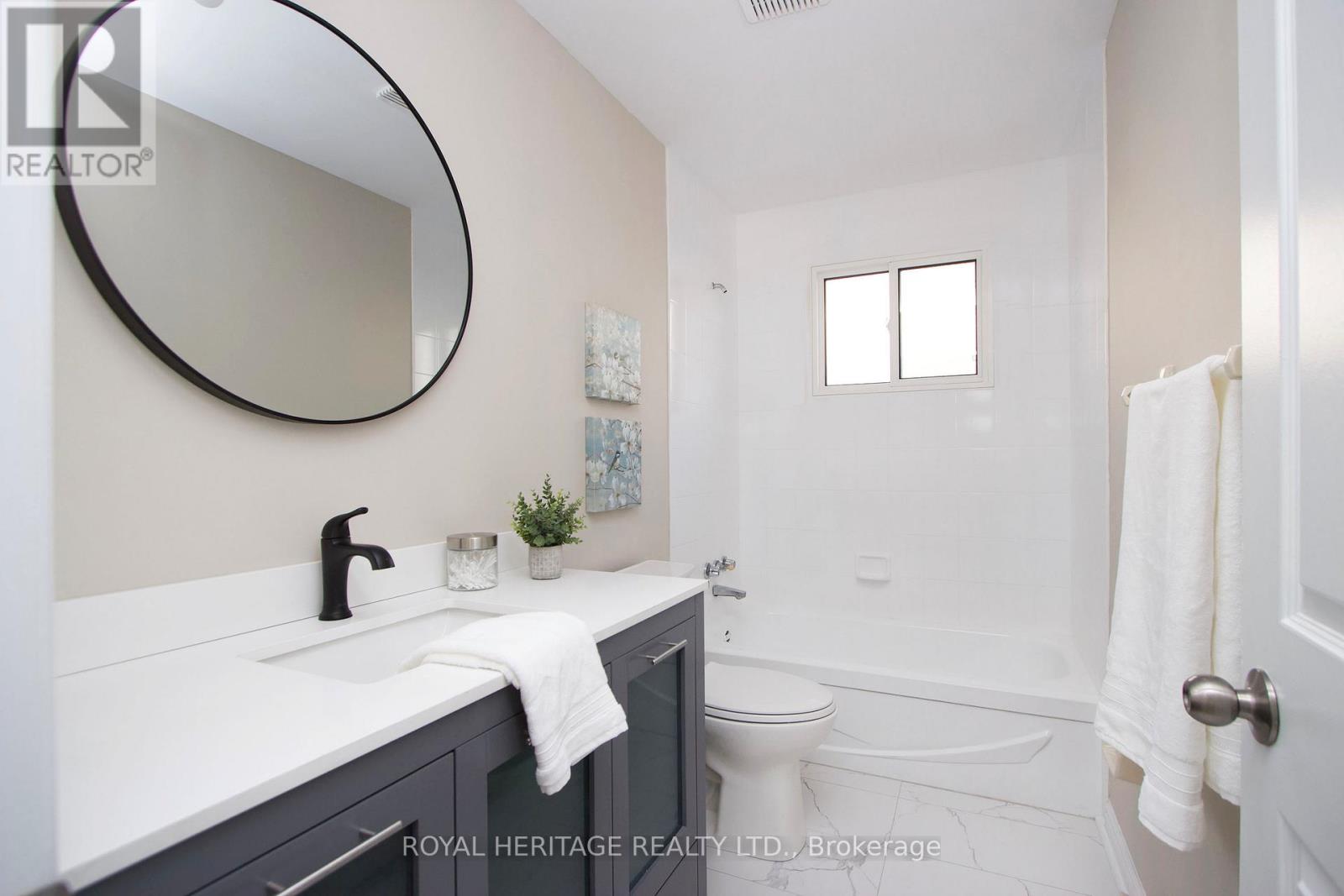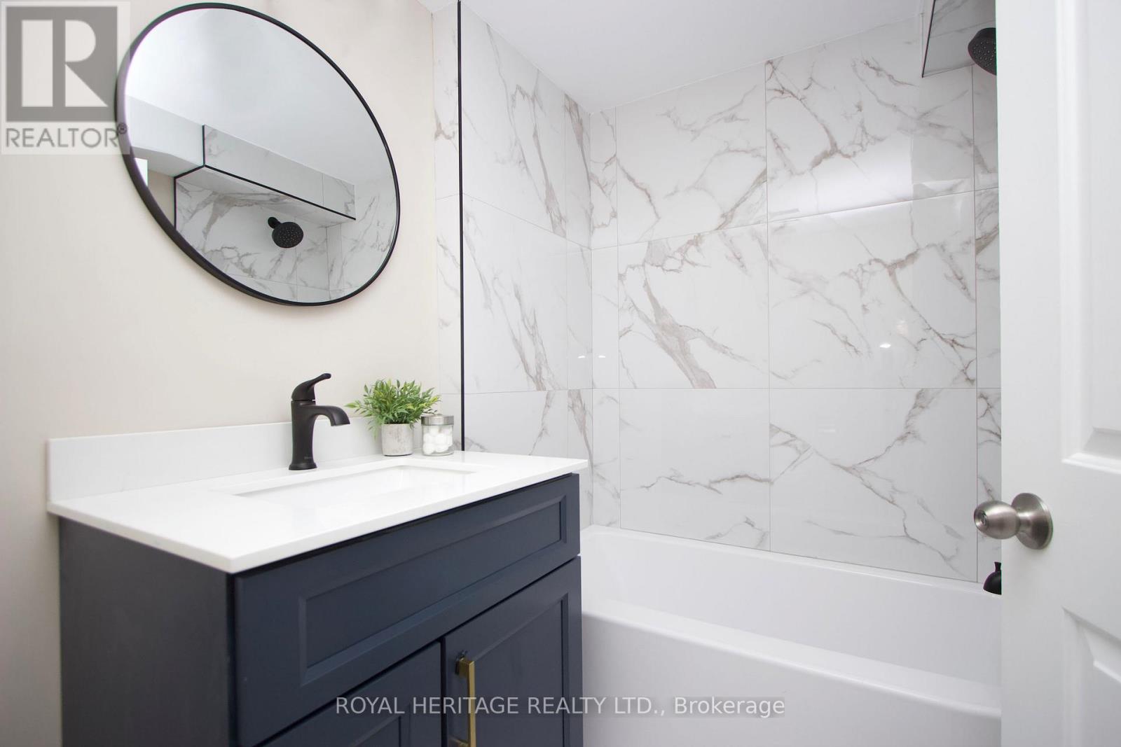 Welcome to this beautifully updated home nestled in one of Courtice's most desirable family friendly neighbourhoods, ideally located directly across from a baseball diamond and park, perfect for outdoor enjoyment and active living.This move-in ready property has been thoughtfully renovated from top to bottom. The stunning new kitchen features elegant quartz countertops with a matching backsplash, offering both style and functionality. Both the main floor and basement bathrooms have been fully updated, while new flooring flows seamlessly throughout the home. Fresh paint in modern tones enhances every room, creating a bright and inviting atmosphere.Additional upgrades include new windows and a tankless water heater for improved efficiency and comfort. (id:64974)