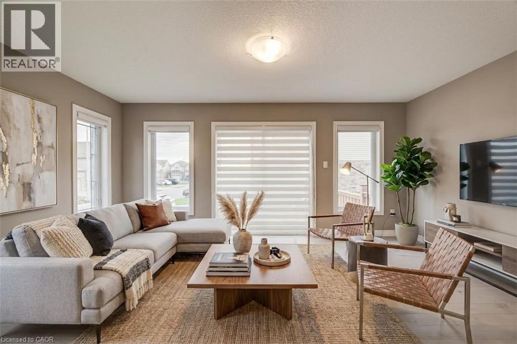 PUBLIC OPEN HOUSE SATURDAY MARCH 14TH 2PM TILL 4PM. Welcome to 77 John Brabson Crescent in Guelph!This two story semi-detached home is only five years old and is located in wonderful Kortright East which makes it ideal for commuters but also close to many amenities. Step inside and find a handy two piece bathroom for your guests. The modern dark cabinet set in kitchen contrasts nicely with the bright white hard surface counter tops. There is plenty of room for the home chef here to work and with the open concept layout also entertain or watch the kids. The main floor is very bright and inviting but follow me upstairs to find 3 bedrooms, the family bath and the laundry room. Just off the primary bedroom you will find a walk in closet and another four piece bath for the ensuite. The basement is unspoiled and just awaiting your ideas so don't wait book your showing today! (id:64974)