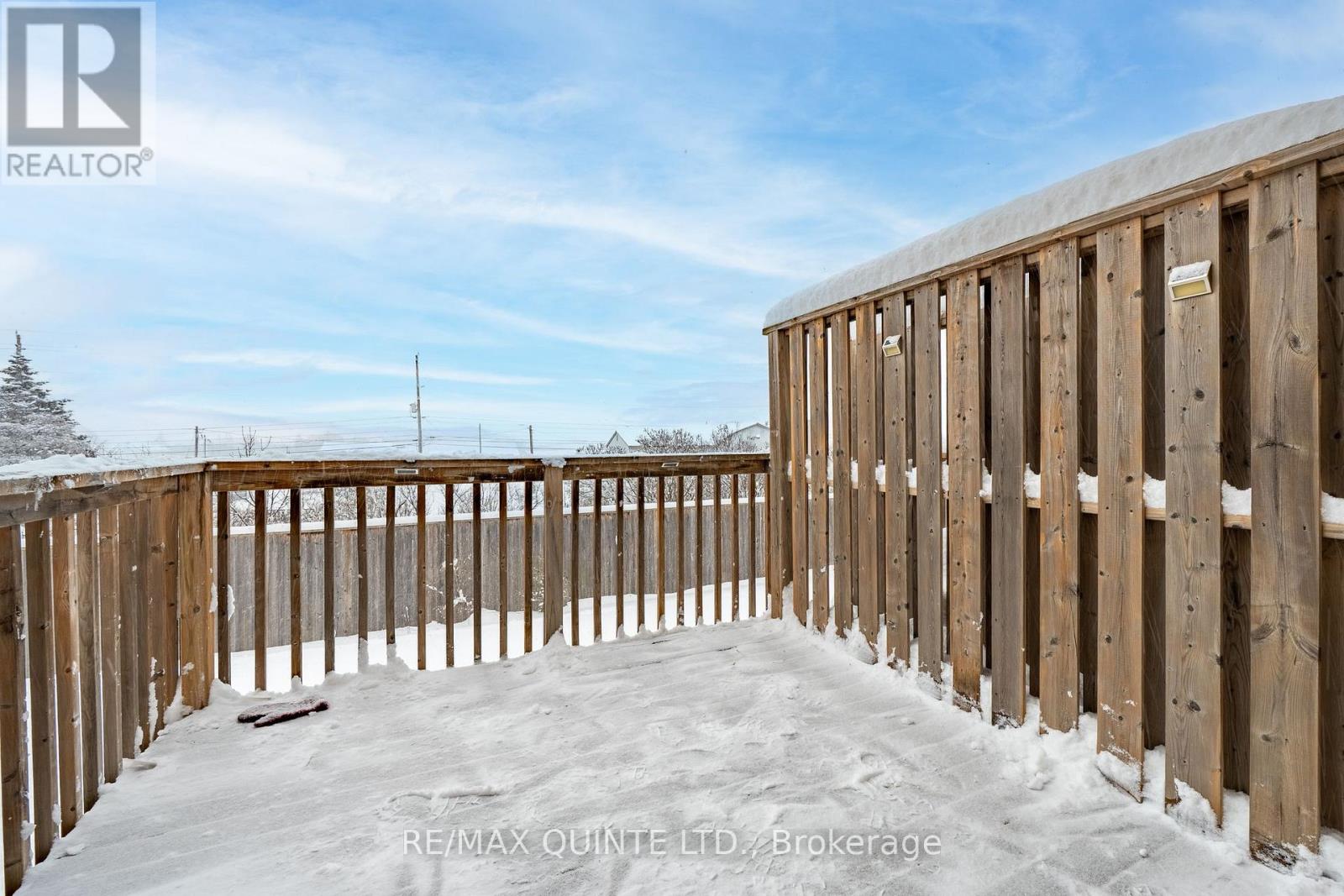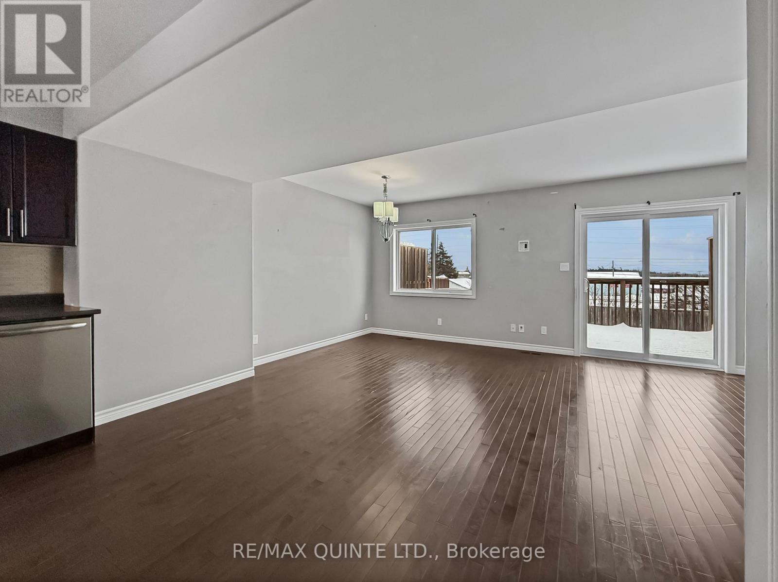 Located in a convenient and family-friendly neighbourhood, 77 Mountain Ash Drive is a well-designed 3-bedroom, 1.5-bathroom two-storey townhome built by Geertsma Homes in 2014. This home offers a practical layout, modern finishes, and excellent use of space, making it an ideal option for first-time buyers, young families, or anyone seeking low-maintenance living. The main floor features an open-concept layout with hardwood flooring, a bright living area, and a functional kitchen equipped with stainless steel appliances. A 2-piece bathroom adds everyday convenience, and there is direct interior access to the attached single-car garage. From the living area, step out to the rear deck, perfect for summer BBQs or enjoying time outdoors. Upstairs, the second level offers three well-sized bedrooms. The primary bedroom includes two closets, one walk-in and one shelved, along with a cheater door to the main 4-piece bathroom. Laundry is conveniently located on the second floor, making day-to-day living easy and efficient. The lower level is fully finished with a large recreation room, offering flexible space for a home theatre, office, gym, or games room. There is ample storage throughout, including under the stairs, in the mechanical room, and in a large storage room. If you need more living space, the storage room is already roughed in for a future full bathroom, providing excellent potential for added value. Additional features include energy-efficient natural gas forced-air heating, central AC, a smart thermostat, and a rear yard suitable for outdoor play or relaxation. Ideally located close to the 401, grocery stores, gas stations, schools, and everyday amenities, this home combines comfort, efficiency, and convenience in a sought-after Belleville location. (id:64974)