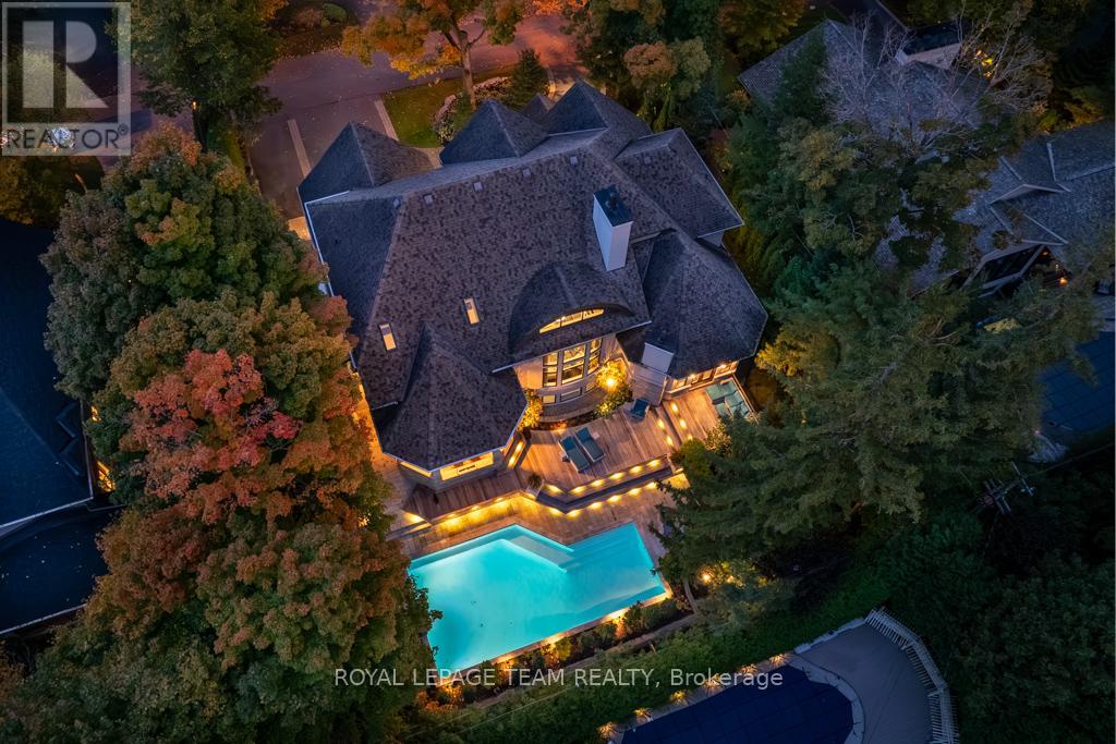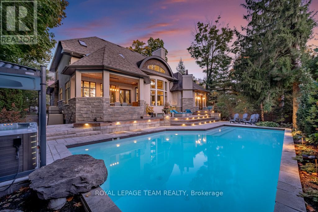 Visit Rockcliffe Park to discover this stunning home, completely turnkey and ready to enjoy from day one. A home built for connection, comfort, and unforgettable moments-luxury that feels effortless. Morning coffee on the deck, evenings by the fire, summers by the pool. This home is designed with multiple inviting spaces so everyone can spread out, relax, and feel at home. Step into a spectacular main floor featuring high ceilings, walls of windows, brilliant natural light, and refined finishes throughout. Work from home in a dedicated office, host guests in an elegant dining space, and unwind in a grand living room by the fire.The spacious, light-filled eat-in kitchen is perfect for hosting-whether everyday living or unforgettable gatherings.The primary suite is a true retreat, featuring a vaulted ceiling, private outdoor access, and a luxuriousensuite. Staircases lead to three spacious bedrooms, two full bathrooms, and an upper laundry area.The backyard is a world-class private retreat with a gunite pool, hot tub, expansive decking, forested backdrop, and landscaped gardens. An expansive lower level offers exceptional flexibility, including a bedroom with ensuite and space for recreation, fitness, or entertaining. Enjoy year-round indoor and outdoor activities-tennis, boating, and biking in the summer; skating and cross-country skiing in the winter-all just steps away. Shop, dine, and connect along Beechwood Avenue. Entertain beautifully. Live effortlessly. Experience it today. (id:64974)