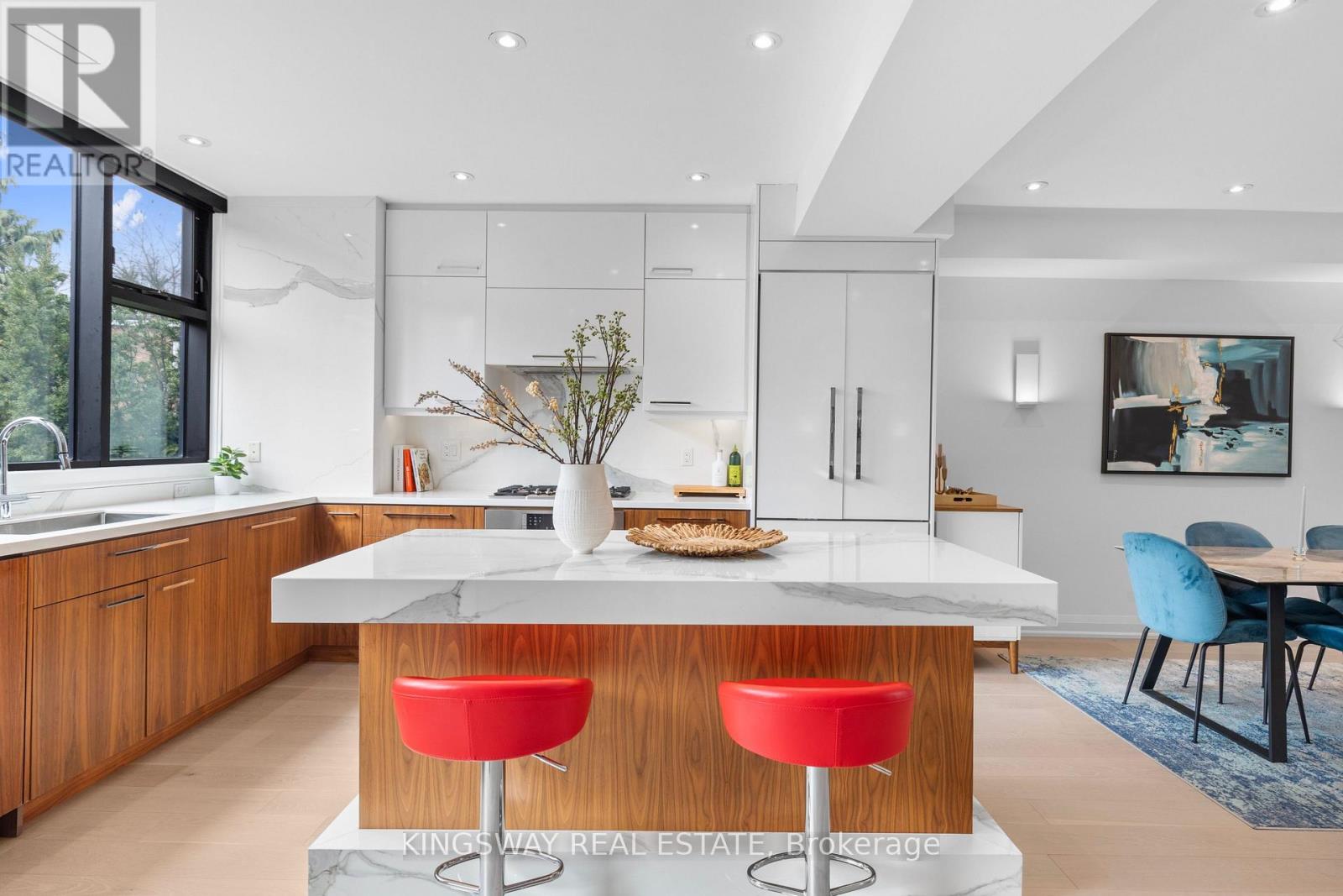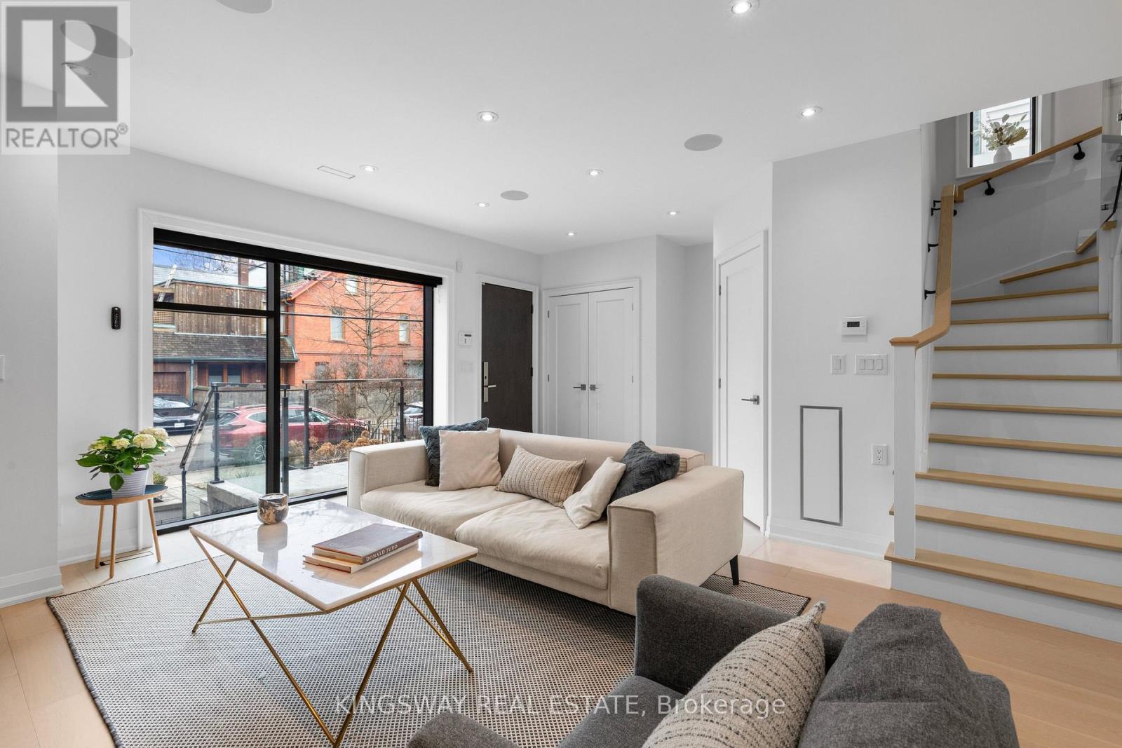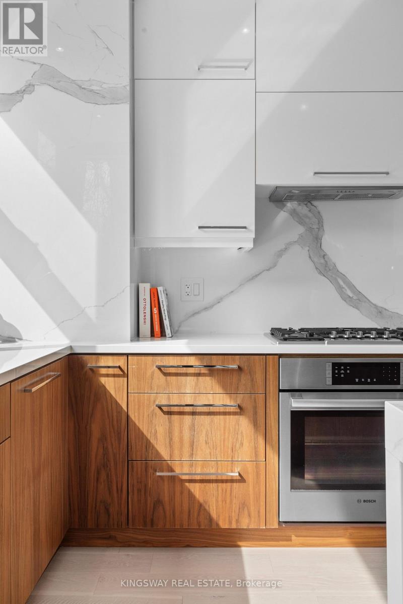 An exceptional 3-storey luxury home in the coveted Seaton Village neighborhood - rarely available, and custom-built with 4+1 bedrooms, 4 baths, and designer finishes throughout. Steps to top-ranked schools, including Palmerston Avenue Jr and Royal St. George's College, greenery at Vermont Square Park, St. Alban's year round rink and pool, Fiesta Farms, Summerhill Market, Loblaws, transit, and more. Inside, an open-concept layout showcases custom millwork, oak hardwood, imported marble, and a gourmet kitchen at the heart of the home. Featuring high-end Bosch appliances, a large island with undermount lighting, soft-close cabinetry, and ample storage. A full-width custom window overlooks a private, fully fenced backyard with deck and green space - ideal for summer entertaining. The main floor includes a powder room, entryway closet, additional storage closet, and mirrored dry bar. The second floor offers three spacious bedrooms for children, guests, or home offices. The front bedroom stands out with cathedral ceilings, a statement chandelier, and a striking 15' custom window. A 4-piece bathroom completes this level. The third floor is a private retreat with expansive skylights and a spa-inspired 5-piece ensuite wrapped in marble tile, featuring a soaking tub, glass shower, and double vanity. The primary bedroom is generously sized with a newly added walk-in closet - for a total of two walk-in closets, perfect for both partners. The finished lower level provides a flexible living space with a gym, full kitchen, laundry room, and 4-piece bath - perfect as a nanny suite, in-law space, or recreation room. Can be available FULLY FURNISHED for an additional fee. Monthly rent includes biweekly cleaning, biweekly landscaping (May-November), and high-speed Wi-Fi. A true turnkey luxury lease for professionals or families. (id:64974)