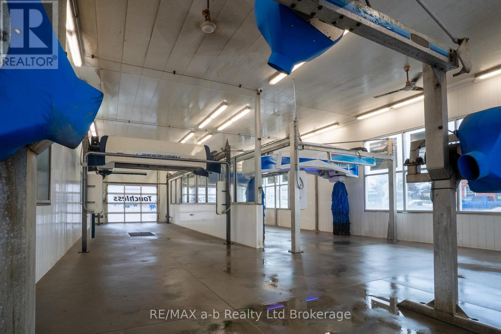 Dual tunnel laser wash in central Woodstock with one bay a Touchless System, and the other a Soft Touch System on a stand-alone site on a large corner lot with prominent road views, large & brightly lit road signage, easy entry and exit onto a side road. There are multiple values here... substantially upgraded and new systems over the past 3 years and also in incredible return on investment with little input time. Excellent business investment that can be managed remotely. (id:64974)
