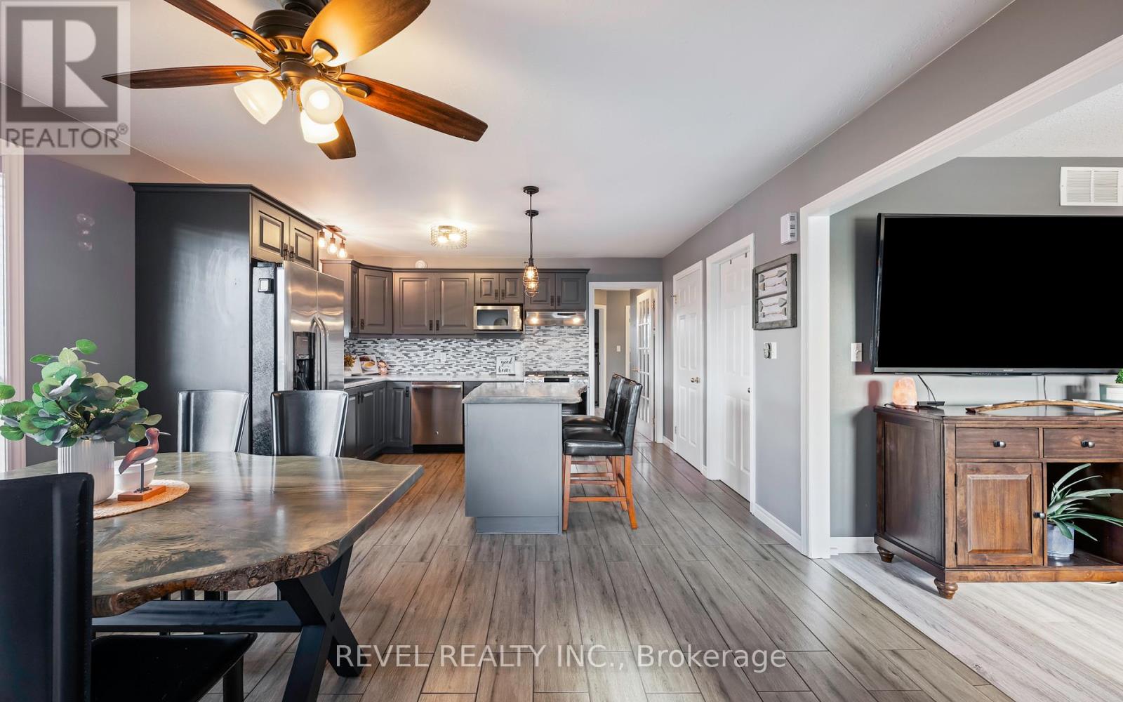 The kind of home that actually adapts to your life, not the other way around.771 Princess Street in Mount Forest offers a beautifully updated raised bungalow with space, flexibility, and a layout designed for how people actually live today. Set in a quiet, established neighbourhood, this home delivers both comfort and peace of mind.The bright main level features an open-concept living space with a large bay window that fills the home with natural light. The renovated kitchen is both functional and inviting, complete with stainless steel appliances, two pantry spaces, and a custom live-edge island that adds warmth and character.A versatile third bedroom is currently set up as a home office with main floor laundry, offering flexibility for today's needs or an easy conversion back to a bedroom. The fully finished lower level expands your living space with a spacious rec room, large above-grade windows, an additional bedroom, full bathroom, and a cozy wood-burning stove. With a separate entrance through the heated garage, there is excellent potential for an in-law suite or multi-generational living.Outside, the fully fenced backyard is designed for both relaxation and function, featuring a private concrete patio, raised garden beds, and plenty of room to enjoy. The extended concrete driveway provides ample parking, and the option to include a hot tub and gazebo adds even more lifestyle appeal.Located just steps to the recreation centre, hospital, and ball diamond, this home offers the space you need with the small-town feel buyers are looking for. (id:64974)