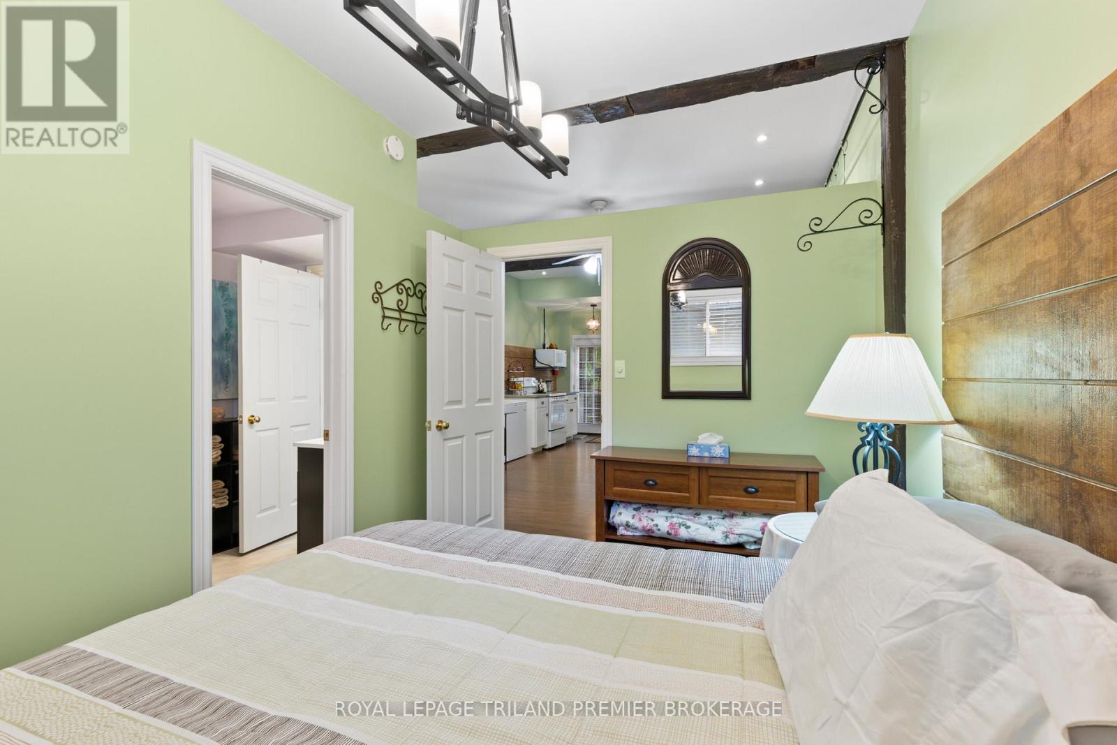Unique Residential & Commercial Opportunity in desirable Port Franks! Welcome to this beautifully maintained and updated bungalow nestled in the charming lakeside community of Port Franks. Situated on a quiet treed lot, this property offers incredible potential for homeowners, investors, business owners or a combination to suit any buyer. The spacious main home features a bright and airy open-concept layout boasting a large kitchen loaded with storage, stainless steel appliances and wrap around island with two- tier breakfast bar; 2 bedrooms and 2 full bathrooms including primary suite with walk in closet and spa-like ensuite; living room with laminate flooring; dinette with direct access to the backyard; main floor laundry; and office space with built-in shelving. Enjoy your morning coffee and the sounds of nature in the private treed backyard or on the generous front deck. A large detached garage/workshop has 200amp service, 2-piece bathroom, and sink with counter and shelving providing ample space for hobbies, storage, parking or entrepreneurial use. At the rear of the property, you'll find a two-storey dwelling with two self-contained, and fully furnished apartment units with shared laundry hook-up, including main floor one bedroom unit and upper unit with two bedrooms plus den, kitchen with dishwasher hook-up, along with private deck - ideal for rental income or visits with extended family. Whether you're looking for a peaceful home base, an income-generating property, or a unique business opportunity, this one-of-a-kind property offers endless possibilities in a sought-after location near beaches, trails, and amenities. Dwellings are all well insulated, 2 operate. septic (apartment & shop share one). Updates include: Furnace and A/C 12 yrs, metal roof 10yrs, shop metal roof 6 yrs, windows and exterior doors 13 yrs, kitchen 13 yrs, main bath 12 yrs, ensuite 7yrs, extension on rear of home 13 yrs, soffit and fascia 13 yrs, gazebo 3yrs (all ages are approximate). (id:64974)