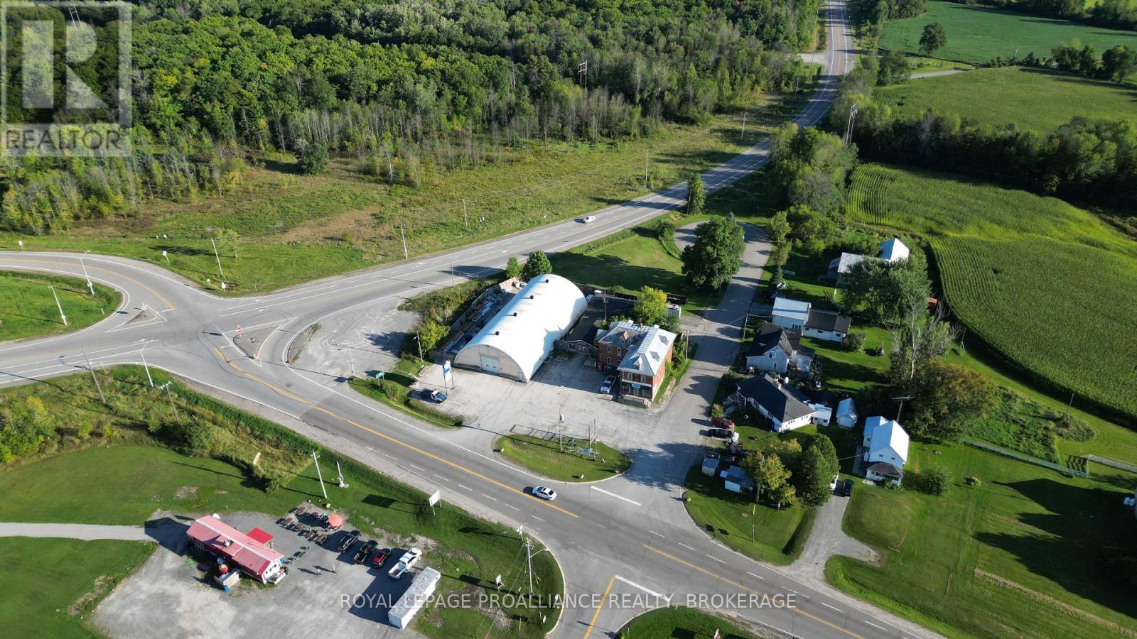 Prime commercial property, Retail store with offices, dome, and circa 1850 building that was once used as the local general store and residence. Rental income could come from the store and dome while you're store the circa 1850 dream home, or simply buy as an investment property. This parcel is centrally located in the heart of the Rideau Lakes tourist region at the busiest intersection in the area. It has great visual lines of sight from both hwy 15 and 42. It is only 30 minutes to Kingston, Gananoque or Brockville.15 minutes to Westport or Smiths Falls. The Ministry of Transportation is planning on making a circle at this intersection in 2025. (id:64974)