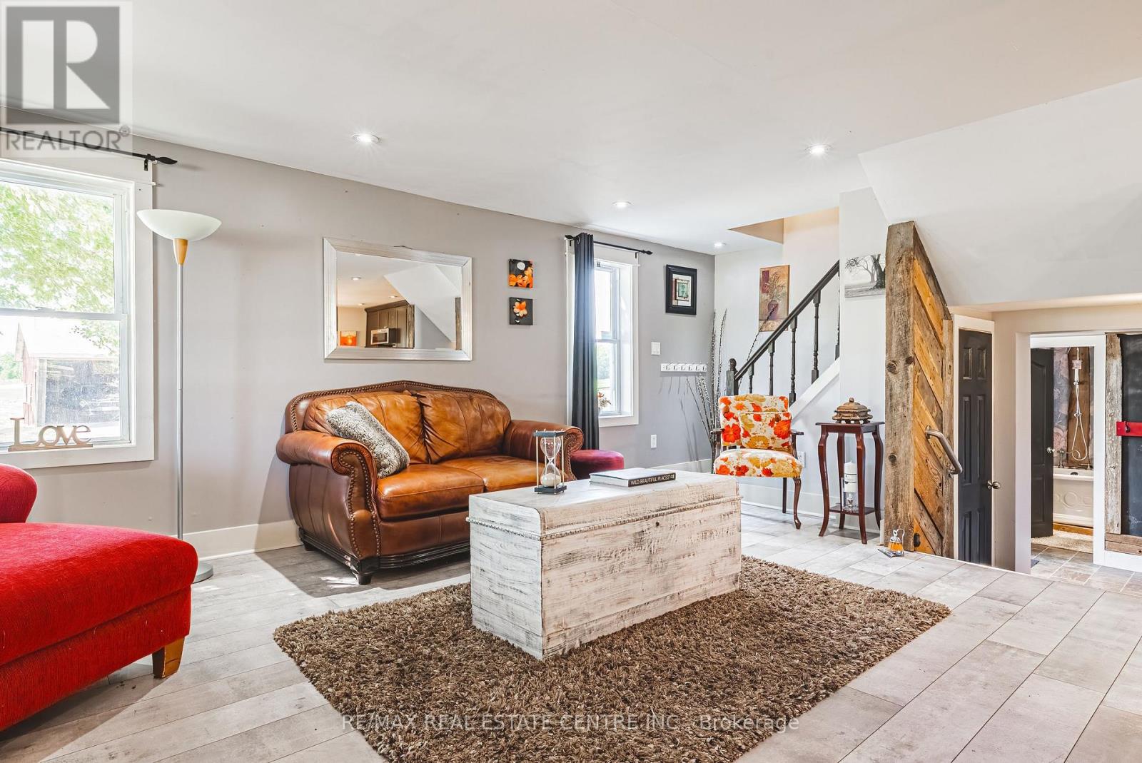 Welcome to 7721 concession road 5, this one and a half story home sits on a gorgeous lot. Surrounded by farms this property boasts an 18X30 ft shop, and a 40x24 ft Barn which is perfect for a hobbyist. Many updates were done in 2010 and 2025, more recently which include insulation, wiring, plumbing, bathroom with soaker tub and flooring. Enjoy your morning coffee on the second story deck and gaze at the serene views of nature. Large wrap around porch with beautiful perennials garden. This home is perfect for first time home buyers and the growing family. Deck and covered porch recently done (id:64974)