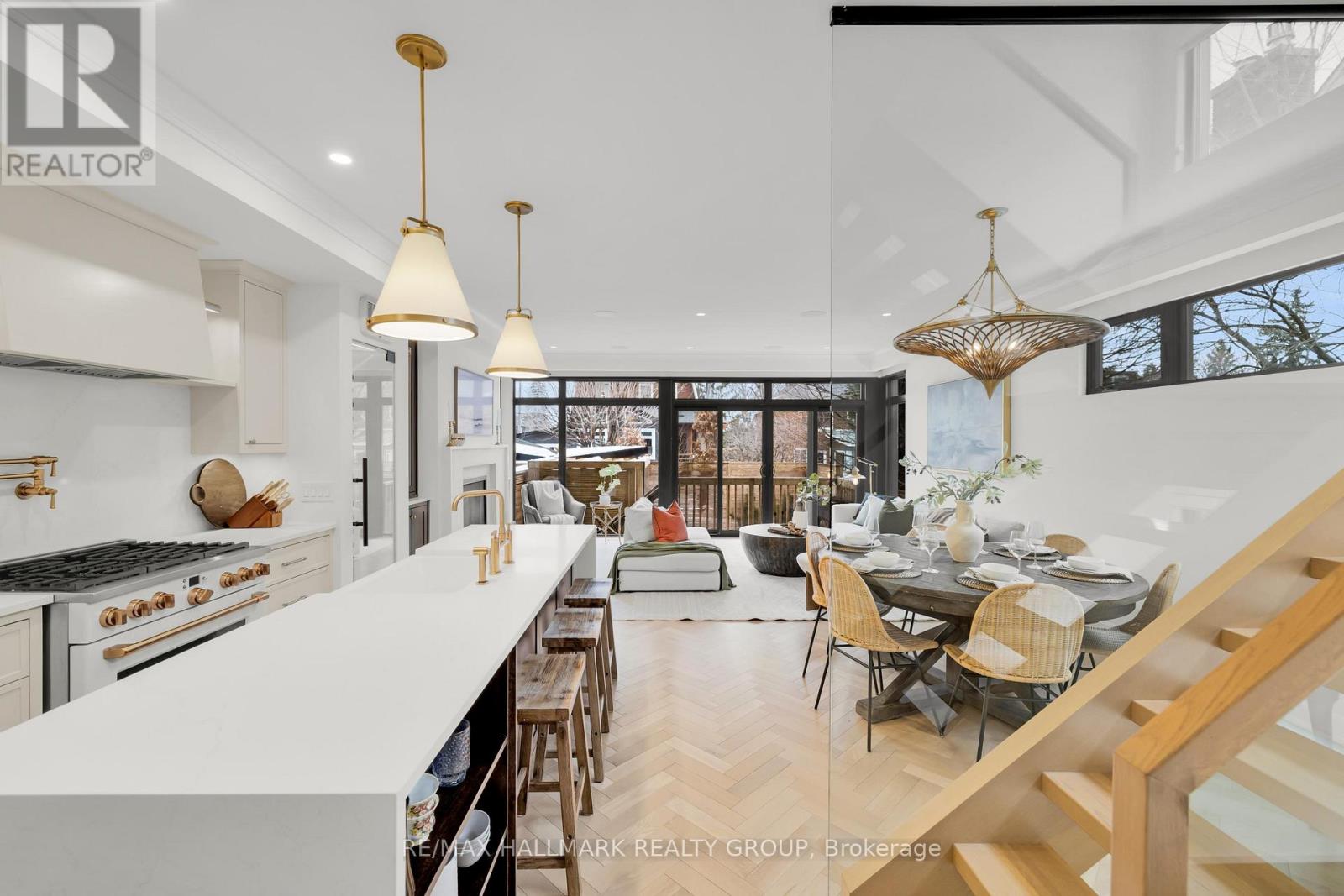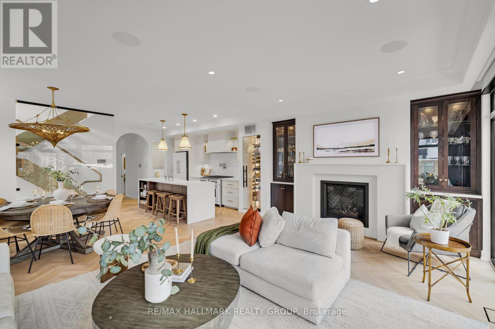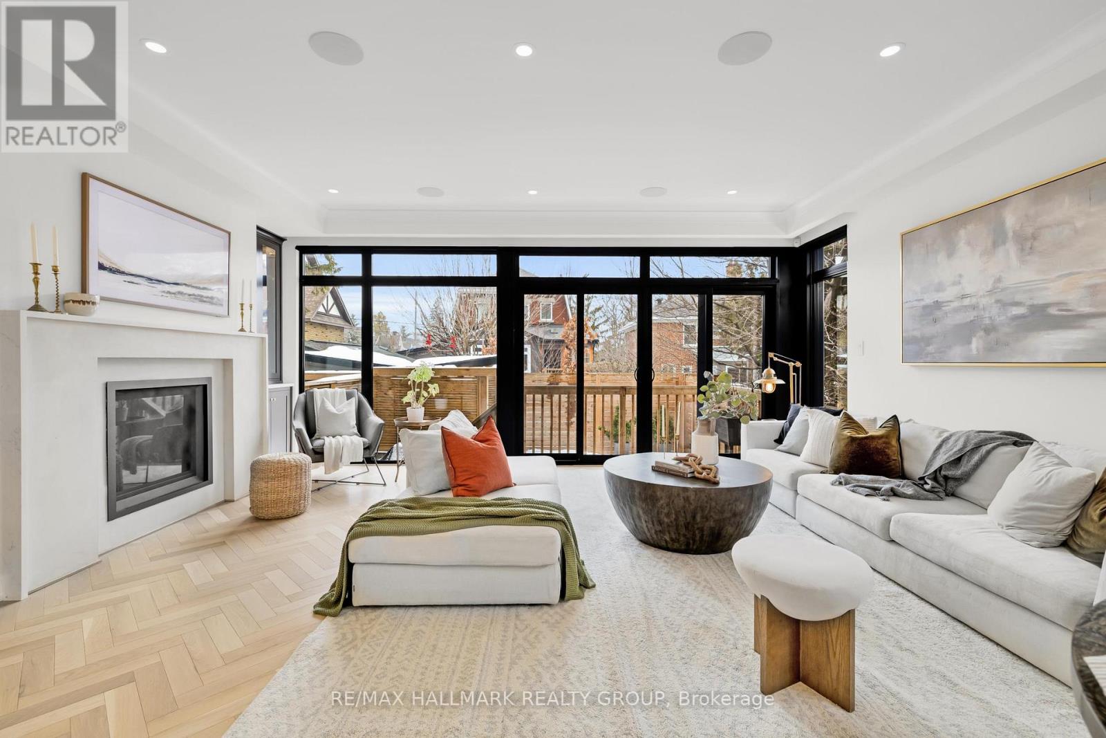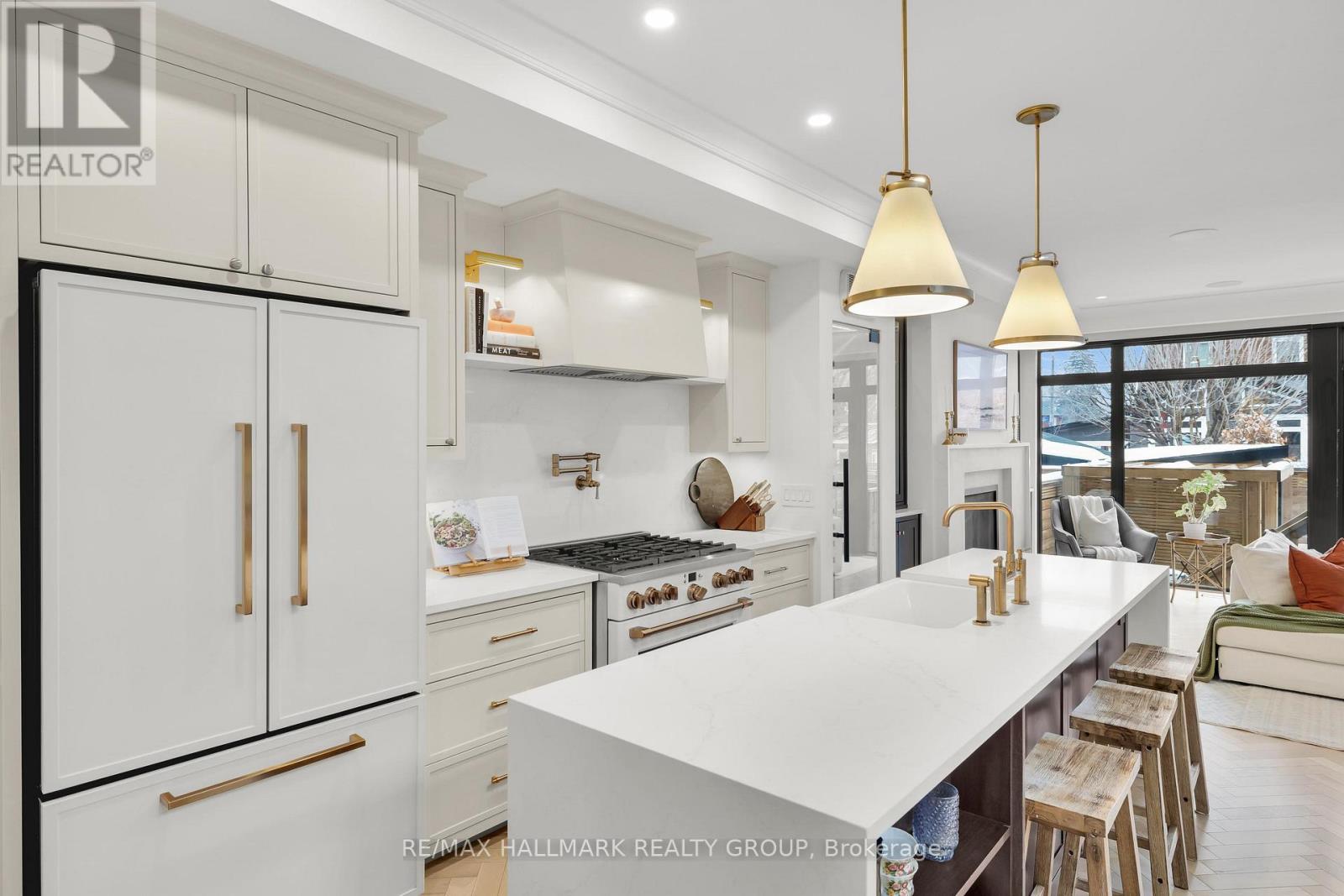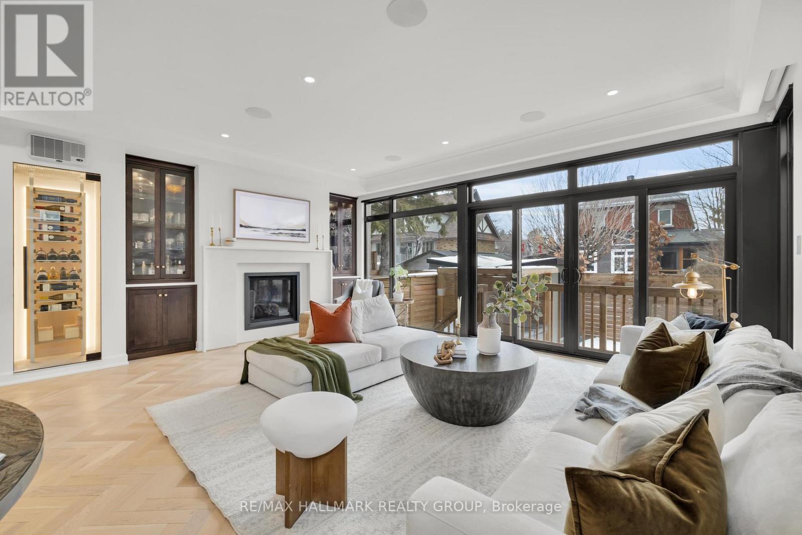 An extraordinary custom-built luxury home in the heart of Wellington Village, just steps from the city's trendiest boutiques & dining destinations. Thoughtfully curated interiors feature 9 ft ceilings, full home automation, smart lighting, motorized blinds and a 16-zone integrated audio system. The chef's kitchen is a true showpiece, appointed w/ quartz countertops, an oversized centre island, Café appliances, a 6-burner gas range, 220V dual microwave/convection wall oven, walk-in pantry & 50-bottle climate-controlled wine cellar. Bathed in natural light, the living room is anchored by a custom Venetian plaster fireplace, creating a warm yet sophisticated focal point. The 2nd level features three generously sized bedrooms, each complete with its own ensuite. This floor includes a true 2nd primary suite, offering a spacious walk-in closet & expansive private bath. An adjoining sitting room/office could easily be transformed into an elegant dressing room or additional custom walk-in closet. The spectacular 3rd level retreat is a sanctuary unto itself, featuring a spacious main primary bedroom, spa-inspired ensuite, walk-in closet, glass-enclosed study, & inviting family room w/ wet bar & Venetian plaster fireplace. The impressive 150 sq ft private 3rd floor terrace offers views of the Gatineau Hills - an elevated outdoor escape designed for both quiet morning coffees & evening entertaining. This rare dual-primary layout provides remarkable flexibility to choose the suite location that best suits your lifestyle. Radiant heated floors warm the finished basement & all 5 full bathrooms, with added convenience provided by laundry rooms on both the basement & 3rd levels. The beautifully landscaped backyard is tailored for both relaxation & entertaining, complete w/ hot tub & gas BBQ hookup. Located steps to Fisher Park, Elmdale PS, Hampton Park, dog park, Elmdale Tennis Club & minutes to the Kitchi-Ziban trails & Westboro Beach - this is luxury living without compromise! ** This is a linked property.** (id:64974)