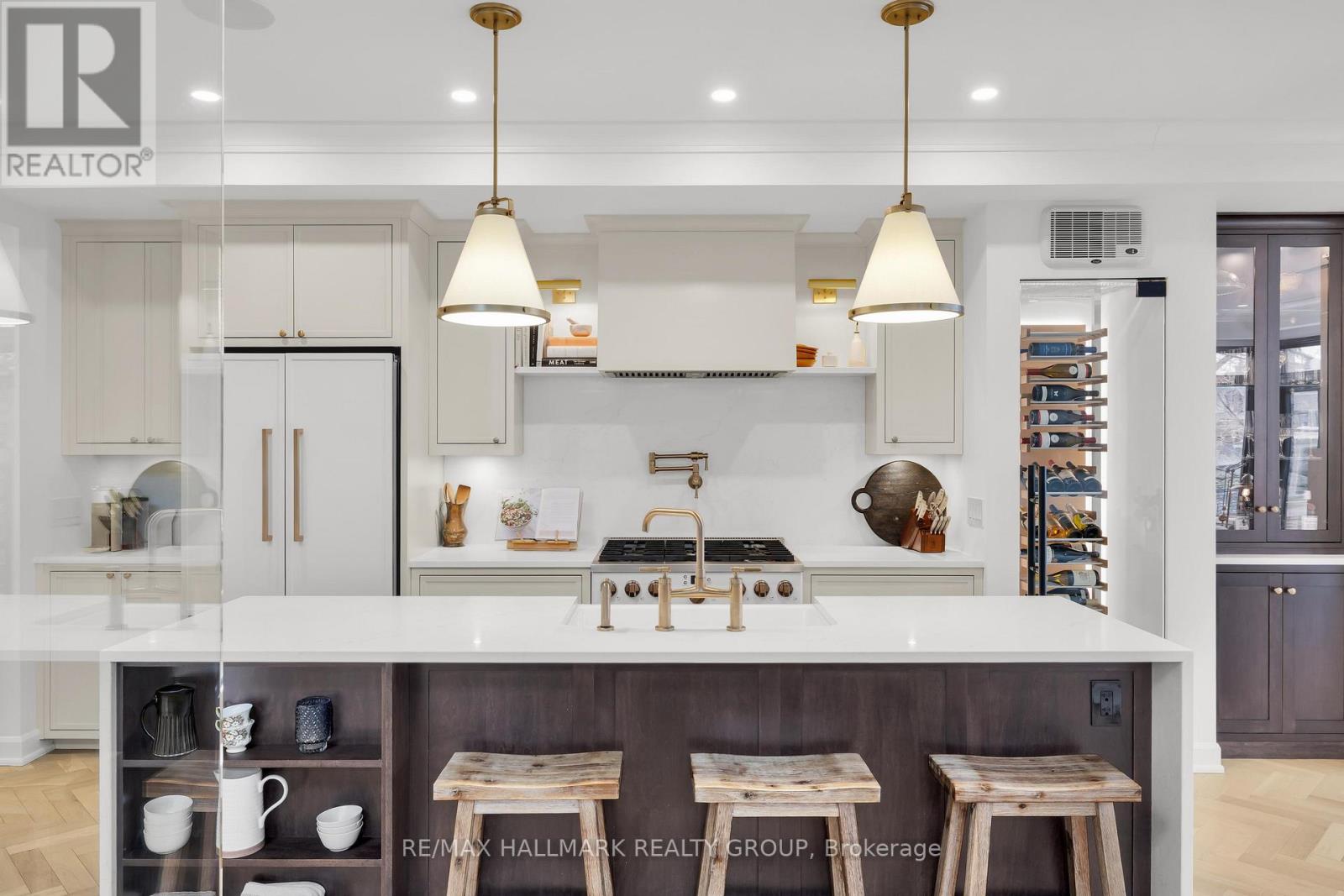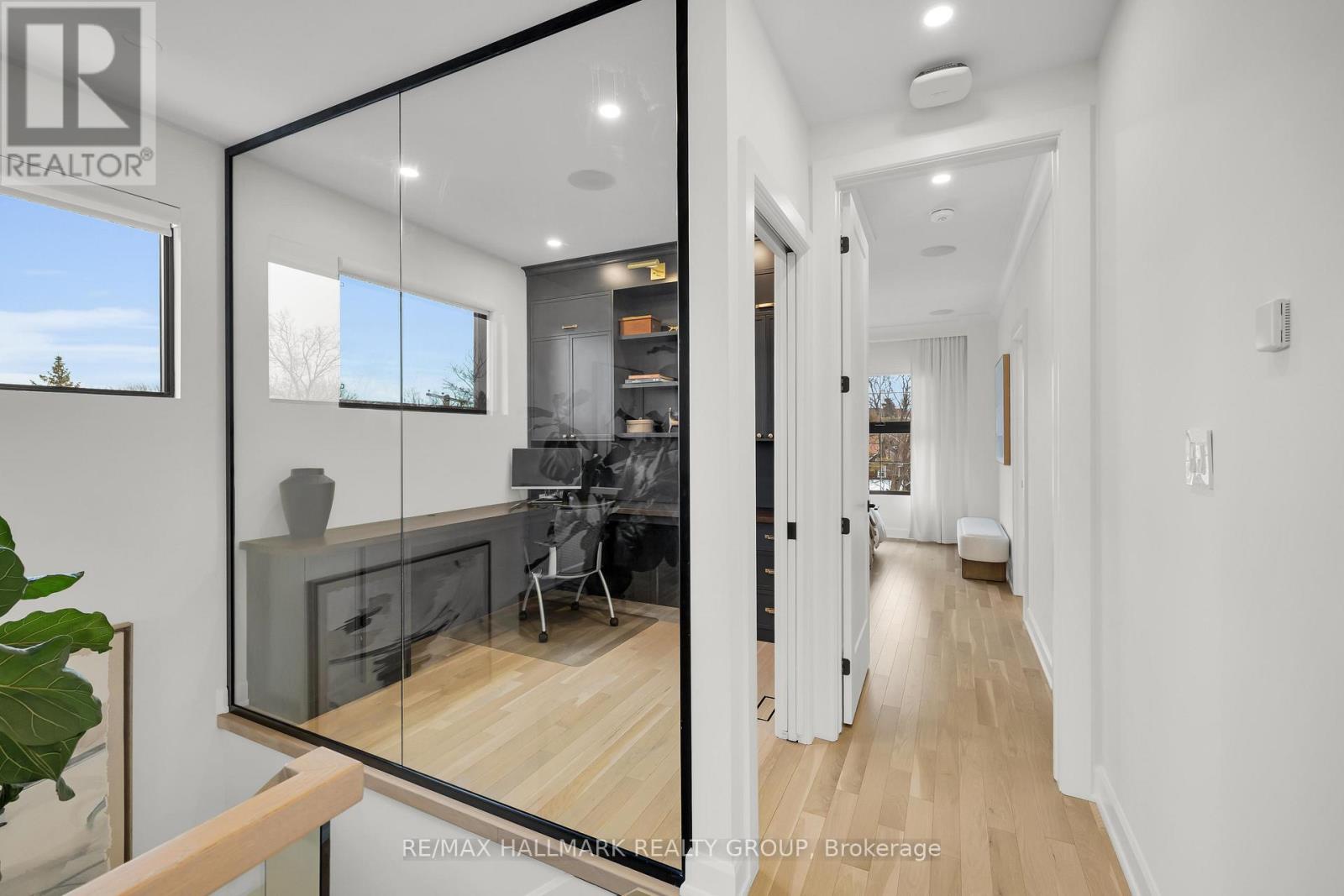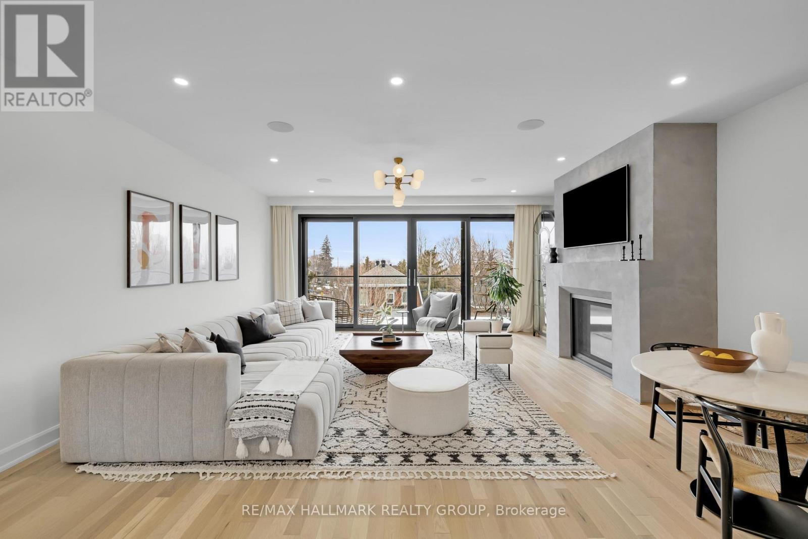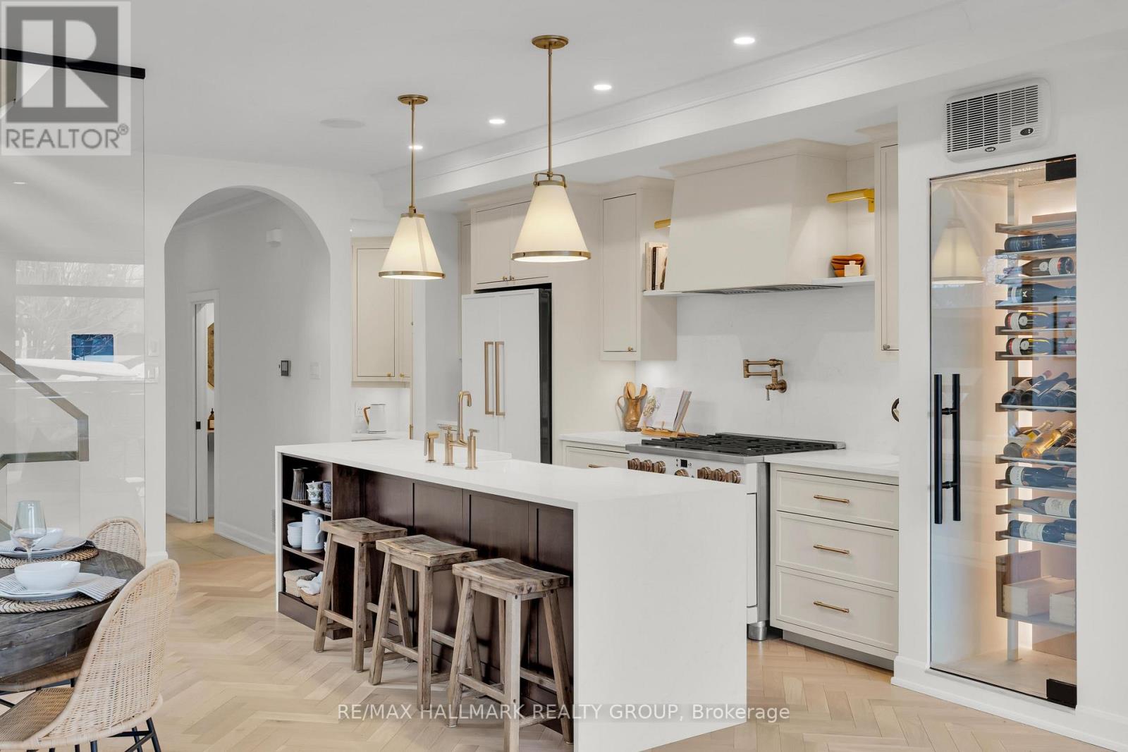An extraordinary custom-built luxury home in the heart of Wellington Village, just steps from the city's trendiest boutiques & dining destinations. Thoughtfully curated interiors feature 9 ft ceilings, full home automation, smart lighting, motorized blinds and a 16-zone integrated audio system. The chef's kitchen is a true showpiece, appointed w/ quartz countertops, an oversized centre island, Café appliances, a 6-burner gas range, 220V dual microwave/convection wall oven, walk-in pantry & 50-bottle climate-controlled wine cellar. Bathed in natural light, the living room is anchored by a custom Venetian plaster fireplace, creating a warm yet sophisticated focal point. The 2nd level features three generously sized bedrooms, each complete with its own ensuite. This floor includes a true 2nd primary suite, offering a spacious walk-in closet & expansive private bath. An adjoining sitting room/office could easily be transformed into an elegant dressing room or additional custom walk-in closet. The spectacular 3rd level retreat is a sanctuary unto itself, featuring a spacious main primary bedroom, spa-inspired ensuite, walk-in closet, glass-enclosed study, & inviting family room w/ wet bar & Venetian plaster fireplace. The impressive 150 sq ft private 3rd floor terrace offers views of the Gatineau Hills - an elevated outdoor escape designed for both quiet morning coffees & evening entertaining. This rare dual-primary layout provides remarkable flexibility to choose the suite location that best suits your lifestyle. Radiant heated floors warm the finished basement & all 5 full bathrooms, with added convenience provided by laundry rooms on both the basement & 3rd levels. The beautifully landscaped backyard is tailored for both relaxation & entertaining, complete w/ hot tub & gas BBQ hookup. Located steps to Fisher Park, Elmdale PS, Hampton Park, dog park, Elmdale Tennis Club & minutes to the Kitchi-Ziban trails & Westboro Beach - this is luxury living without compromise! ** This is a linked property.** (id:64974)