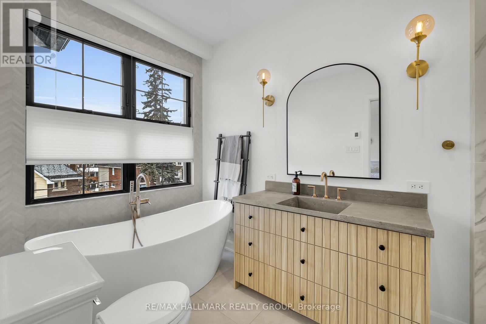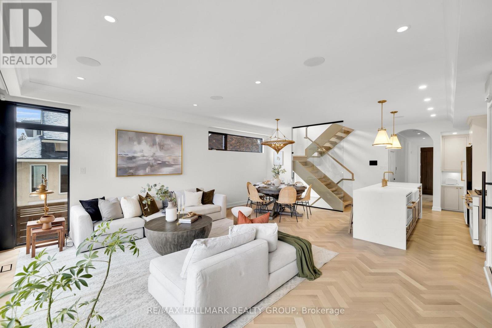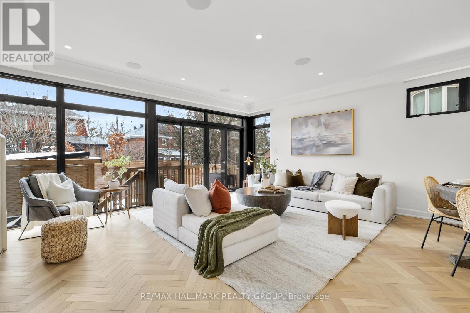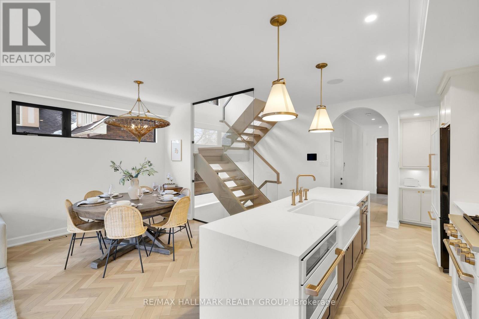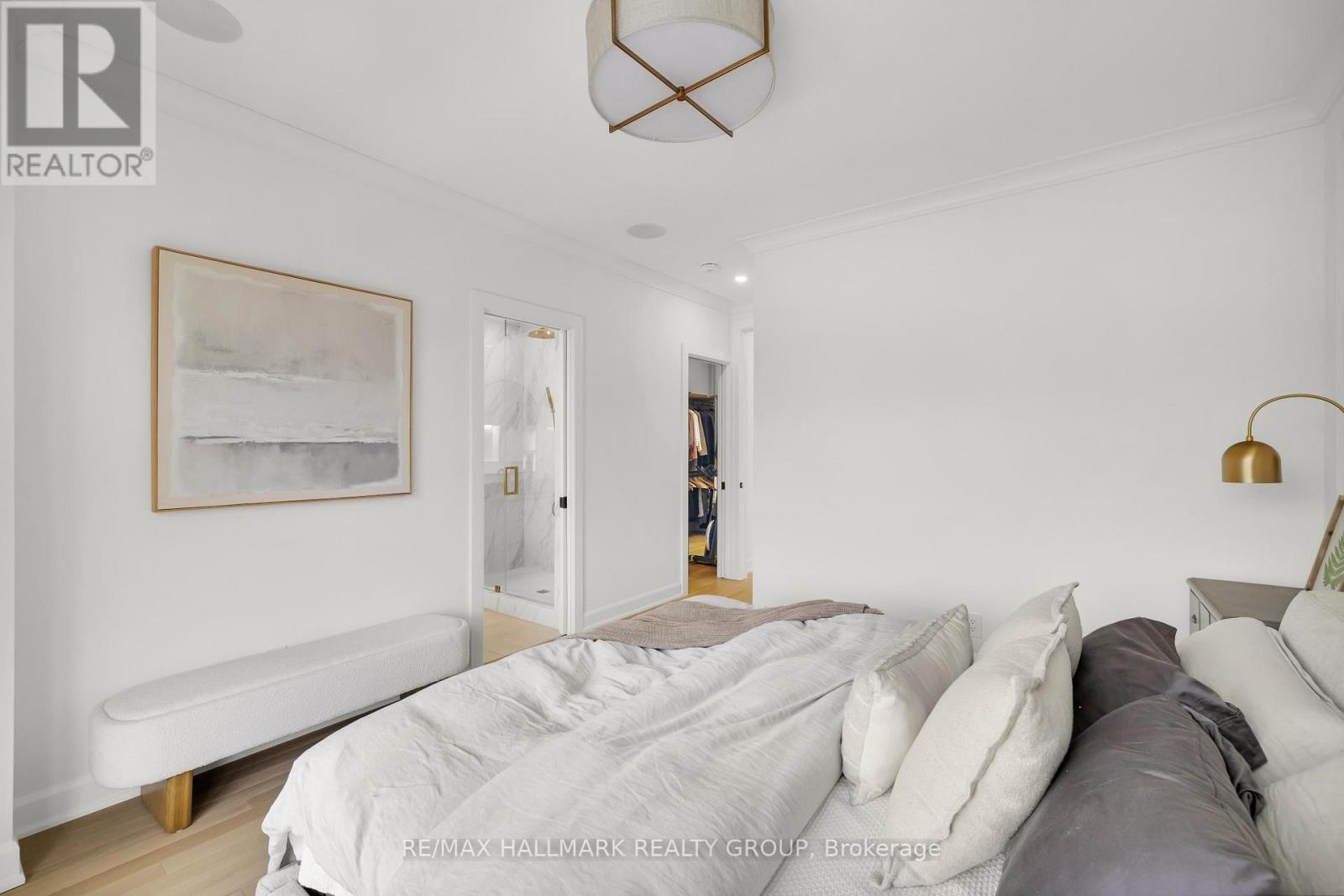 An extraordinary custom-built luxury home in the heart of Wellington Village, just steps from the city's trendiest boutiques & dining destinations. Thoughtfully curated interiors feature 9 ft ceilings, full home automation, smart lighting, motorized blinds and a 16-zone integrated audio system. The chef's kitchen is a true showpiece, appointed w/ quartz countertops, an oversized centre island, Café appliances, a 6-burner gas range, 220V dual microwave/convection wall oven, walk-in pantry & 50-bottle climate-controlled wine cellar. Bathed in natural light, the living room is anchored by a custom Venetian plaster fireplace, creating a warm yet sophisticated focal point. The 2nd level features three generously sized bedrooms, each complete with its own ensuite. This floor includes a true 2nd primary suite, offering a spacious walk-in closet & expansive private bath. An adjoining sitting room/office could easily be transformed into an elegant dressing room or additional custom walk-in closet. The spectacular 3rd level retreat is a sanctuary unto itself, featuring a spacious main primary bedroom, spa-inspired ensuite, walk-in closet, glass-enclosed study, & inviting family room w/ wet bar & Venetian plaster fireplace. The impressive 150 sq ft private 3rd floor terrace offers views of the Gatineau Hills - an elevated outdoor escape designed for both quiet morning coffees & evening entertaining. This rare dual-primary layout provides remarkable flexibility to choose the suite location that best suits your lifestyle. Radiant heated floors warm the finished basement & all 5 full bathrooms, with added convenience provided by laundry rooms on both the basement & 3rd levels. The beautifully landscaped backyard is tailored for both relaxation & entertaining, complete w/ hot tub & gas BBQ hookup. Located steps to Fisher Park, Elmdale PS, Hampton Park, dog park, Elmdale Tennis Club & minutes to the Kitchi-Ziban trails & Westboro Beach - this is luxury living without compromise! ** This is a linked property.** (id:64974)