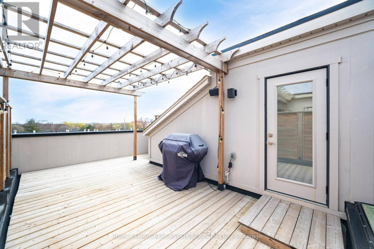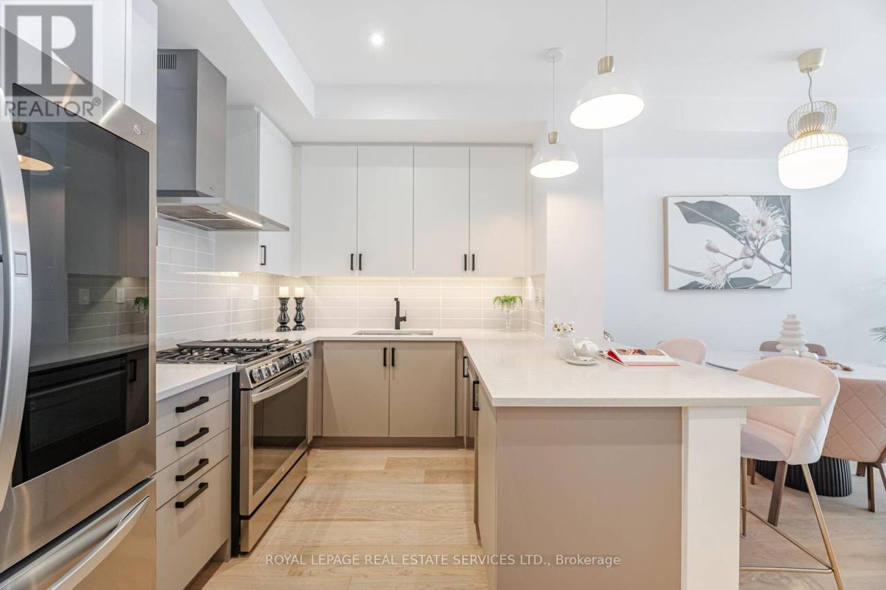 Welcome to one of Streetsville's premier modern luxury townhomes, newly built by Dunpar homes. Perfectly situated just steps from the GO station and minutes from charming downtown Streetsville, this home blends exceptional convenience with upscale living. Boasting a long list of high-end upgrades, this residence features wide plank hardwood flooring, quartz countertops, premium stainless steel appliances, smooth ceilings, LED pot lights, and stylish black matte hardware and faucets throughout. Enjoy the rare convenience of 2-car parking with a lift system, and entertain effortlessly on the expansive rooftop terrace offering unobstructed views, a gas BBQ line, water hookup, and a pergola for shaded comfort. Additional standout features include 3 skylights, upgraded 7.5" baseboards, soaring 9.5' ceilings on the main floor, elegant iron pickets, and solid oak stairs. This is modern luxury redefined in the heart of Streetsville. Please refer to the attached features list for full upgrade details. (id:64974)