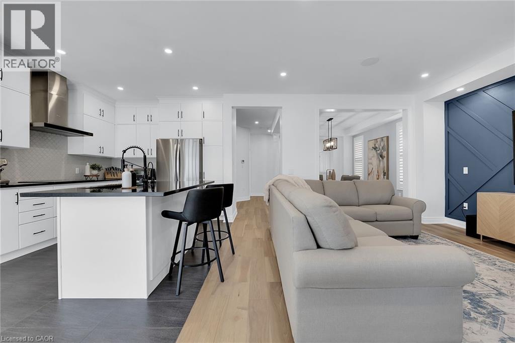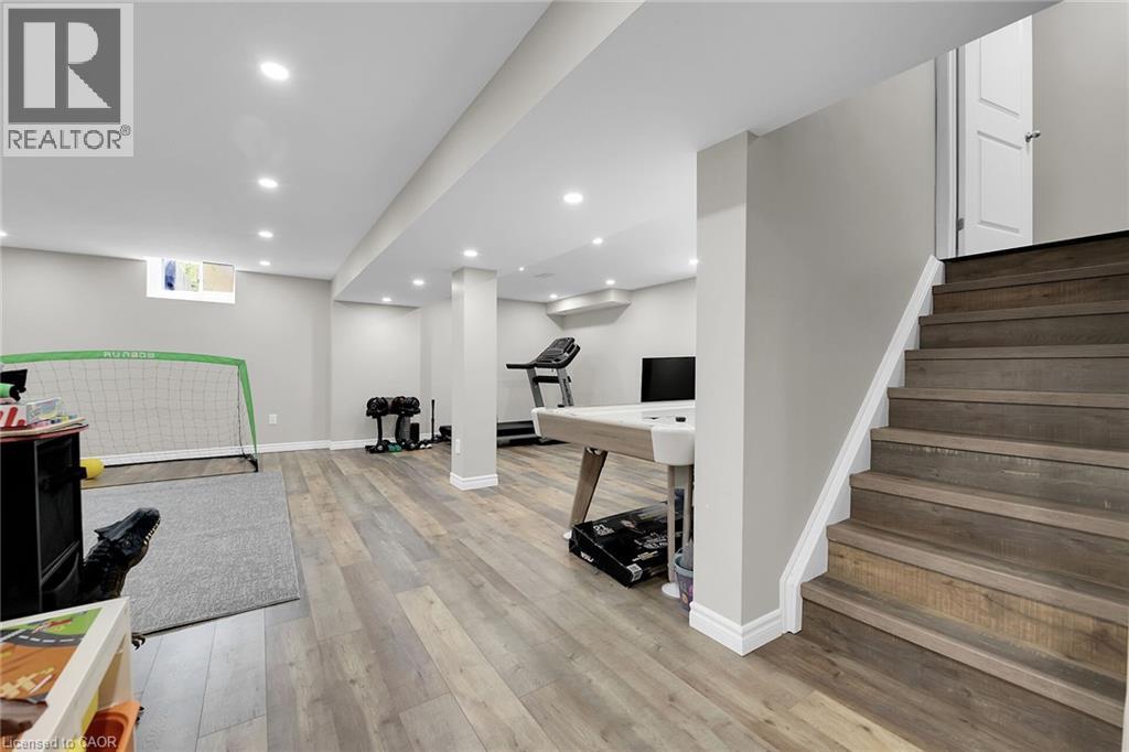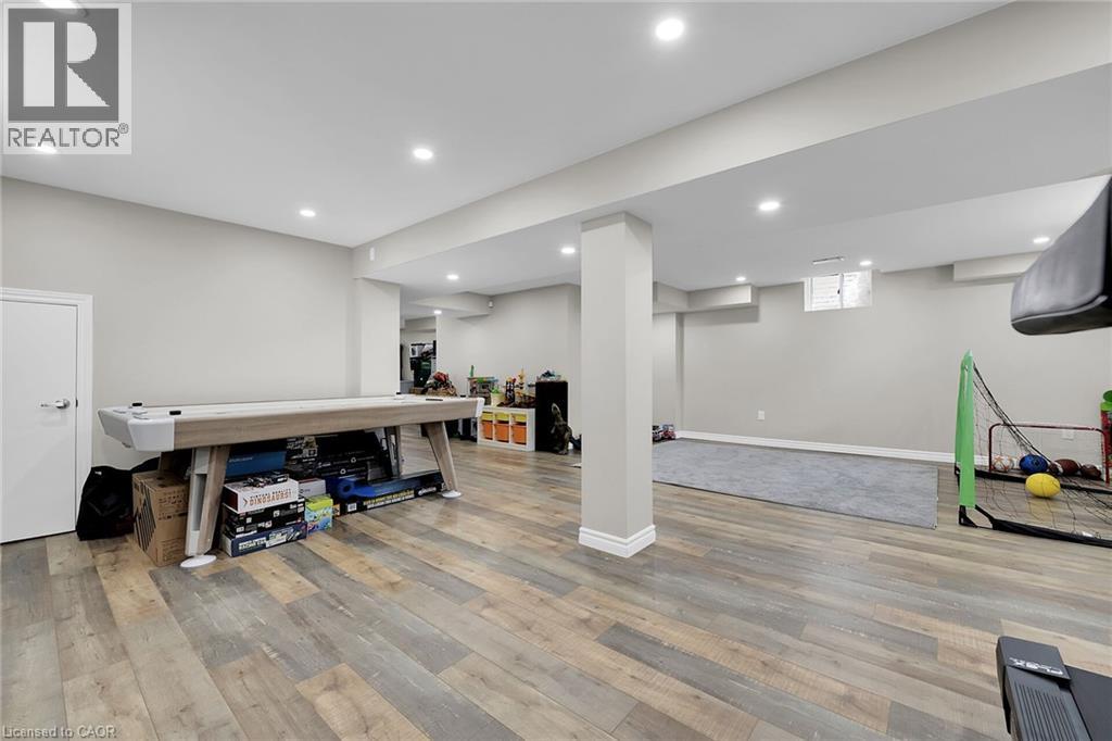 Step into style and sophistication. This stunning 4 bedrooms, 3.5 bathrooms move-in-ready home nestled in one of Stoney Creek’s most sought-after family-friendly neighborhood. This spacious 2800 sq ft of living space features a perfect blend of modern finishes, functional design including a Brand new engineered hardwood flooring on both the main and second levels. The finished basement has laminate flooring and a 3-piece bath, LED pot lights throughout the home, creating a bright, warm atmosphere in every room Freshly painted main and upper floors in a contemporary neutral palette. and. Exposed aggregate with patio and asphalt driveway. Backyard perfect for entertaining, relaxing. Just minutes to QEW, Red Hill Expressway, and the GO Station—perfect for commuters. Walking distance to schools, parks, and trails Close to major shopping centers, restaurants, and everyday essentials. (id:64974)