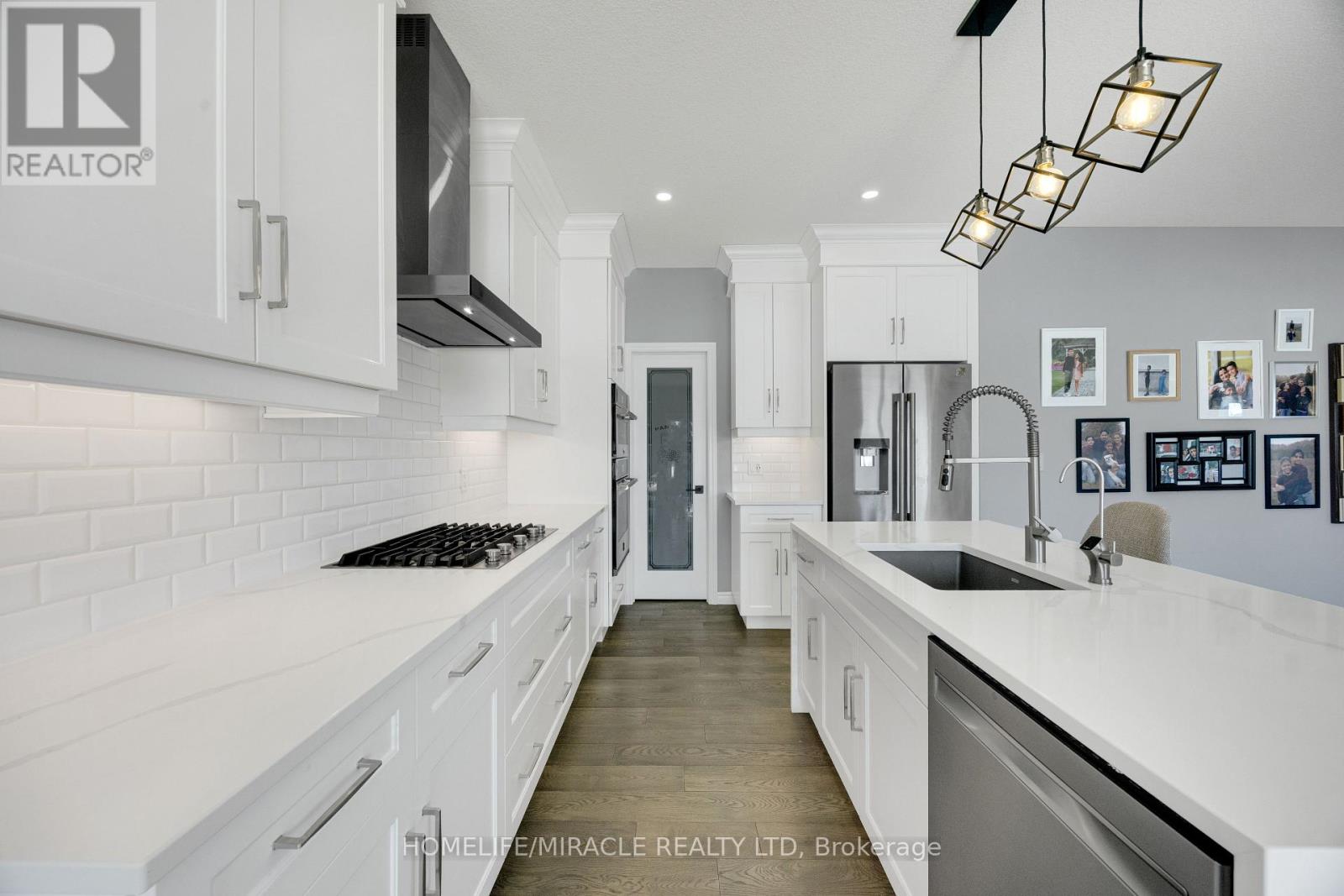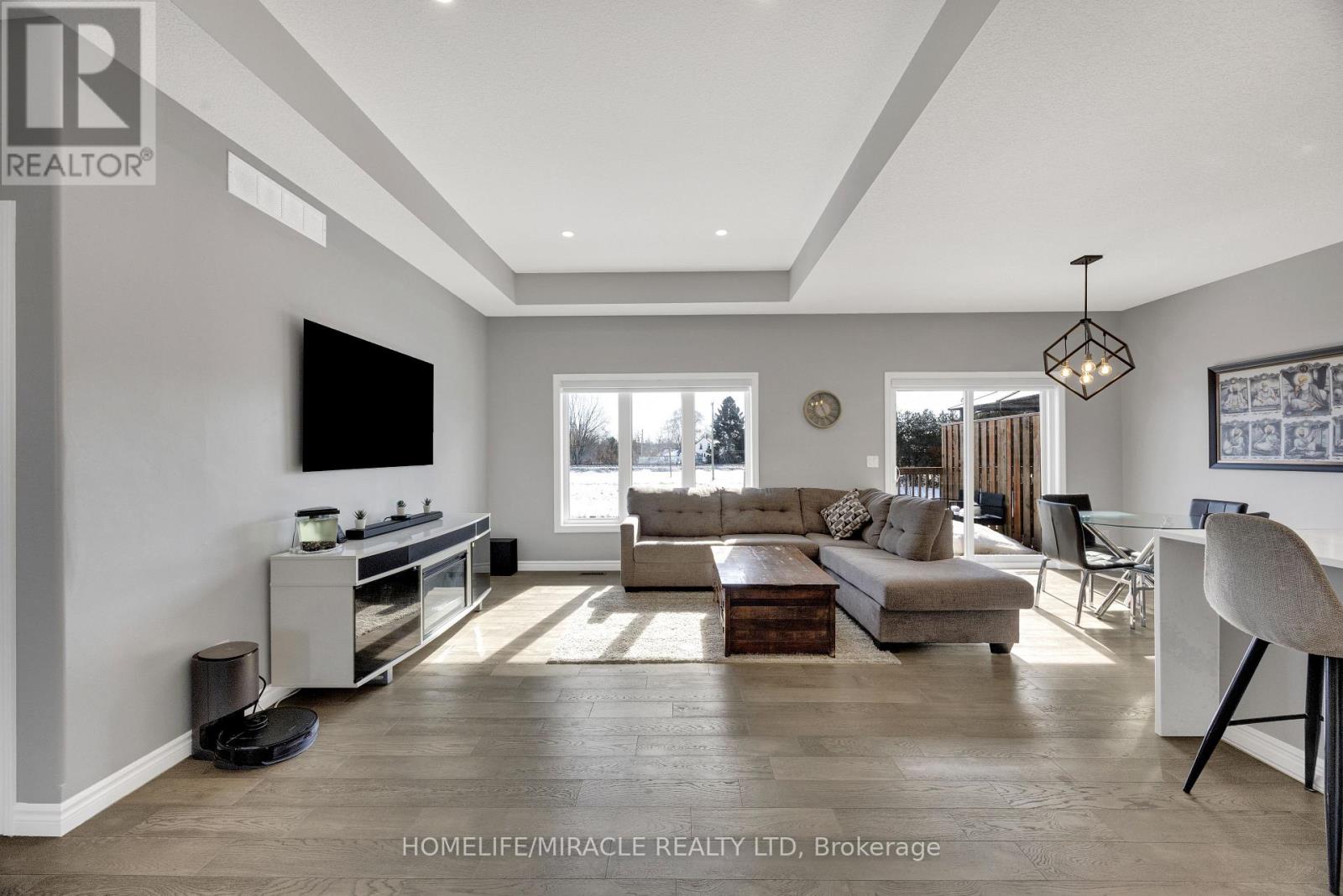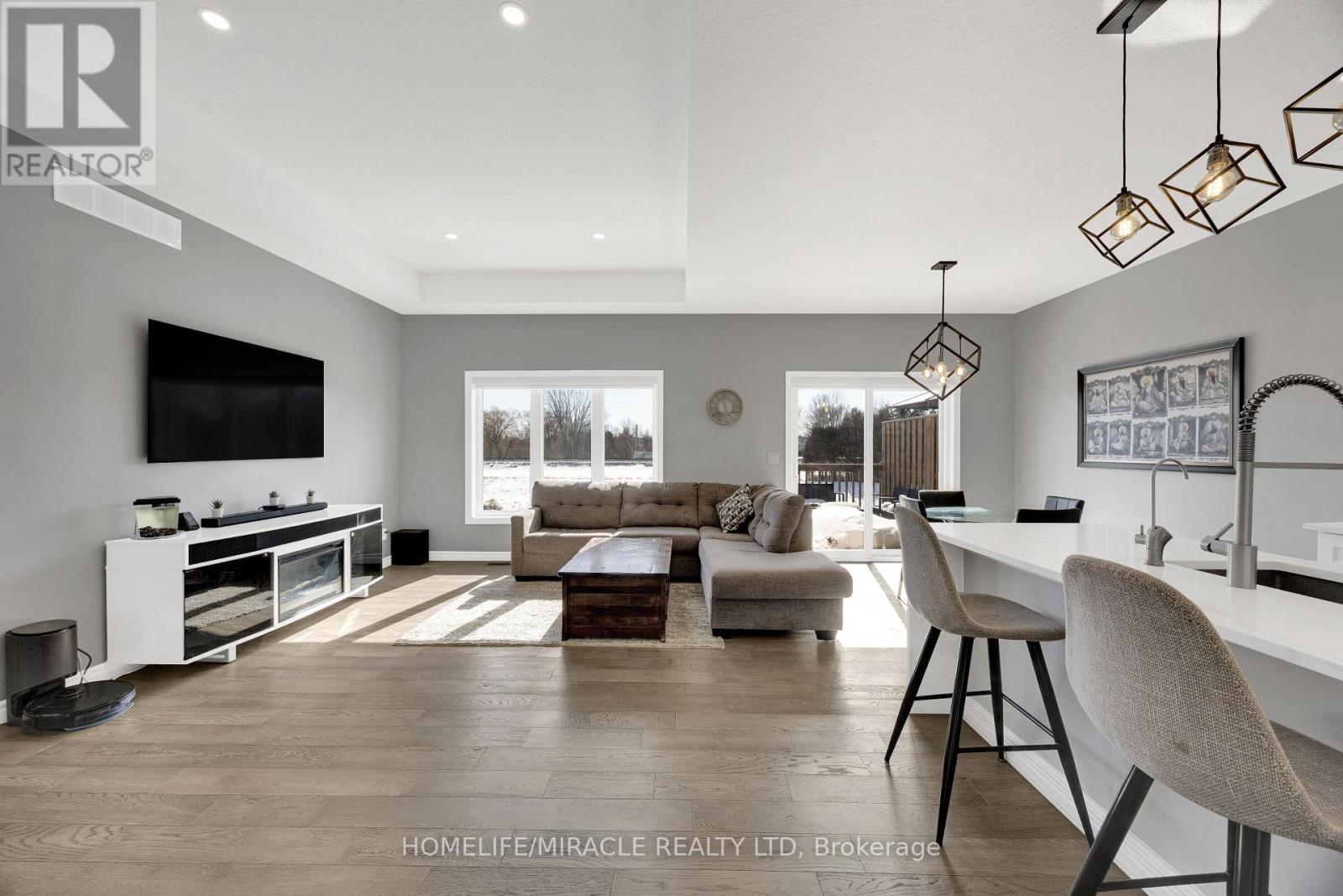 Stunning 2+2 Bedroom, 3 Bathroom Semi-Detached Bungalow with Double Garage! This beautifully maintained home offers approximately 1,300 sq. ft. of open-concept living on the main level, plus a professionally finished basement-perfect for extended family or additional living space.The main floor features a generous custom kitchen with granite countertops and built-in stainless steel appliances, hardwood and ceramic flooring, 9' ceilings (with an impressive 10' tray ceiling in the Great Room), and a convenient main floor laundry/mudroom. Quality brick exterior with pot lights, extended driveway with exposed concrete walkway, and impressive curb appeal throughout.Step out onto the 12' x 12' deck and enjoy breathtaking views of lush greenspace with no rear neighbours-offering privacy and tranquility. The landscaped backyard is ideal for relaxing or entertaining.The fully finished lower level includes 2 additional bedrooms, a spacious recreation room, a full 3-piece bathroom, large above-grade windows allowing abundant natural light, and a generous storage area.Located on a quiet crescent with attractive brick and stone exterior, this home truly shows pride of ownership and is move-in ready! (id:64974)