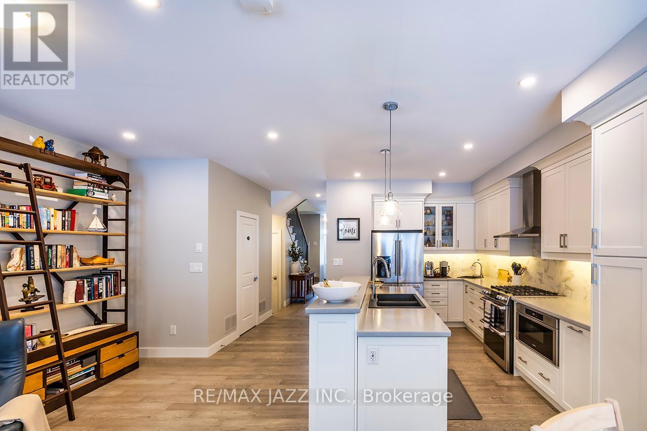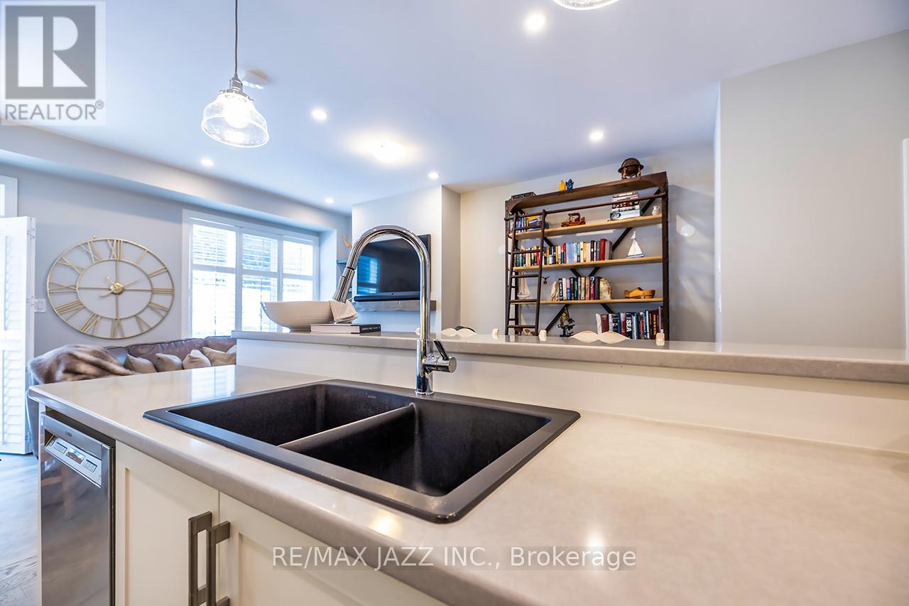 Impeccable Jeffery Homes quality shines through every inch of this showstopper located in the exclusive Shand Lane community of beautiful Port Perry! Gorgeous end unit townhome boasting 1,744 square feet offers custom upgrades and high end finishes that you won't be able to resist! 9ft ceilings and pot lighting on the main floor, luxury hardwood flooring across main and second floors, solid oak staircase, lavishly upgraded custom kitchen with quartz counters, extra pantry, additional cabinets, crown moulding, extra prep sink, tile backsplash, soft close doors, tricked out storage, lengthy island with breakfast bar and all high end stainless steel appliances. Breezy open concept living and dining areas are ideal for entertaining, with custom gas fireplace and mantel, custom shelving, California shutters and walk-out to fantastic, fenced rear yard complete with deck and automatic awning. Upstairs, the primary suite boasts decadent his and hers walk-in closets with built-ins, drawers and shelving, plus a luxe ensuite with deep soaking jet tub, huge separate shower and expansive vanity, ceramic floors. Two other generous bedrooms both sport great closeting, and are serviced by a large 4pc main bath with ceramic floors. An oh so convenient 2nd floor laundry offers stacking washer and dryer, cabinetry, sink, shelving and ceramic floors. Spacious main floor mudroom with direct access to garage. Main floor powder room with ceramic floors. Upgraded chrome hardware on all doors, hot water on demand, A/C, HRV unit, water softener, all appliances... it's simply incredible! Walking distance to historic downtown Port Perry's fabulous shops and dining! It's a lifestyle! (id:64974)