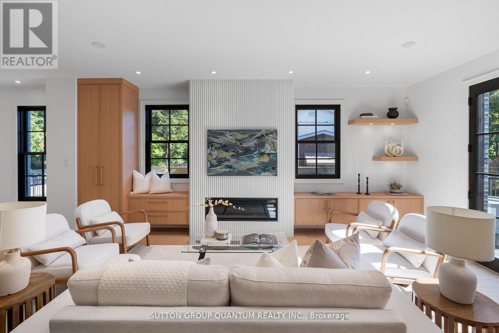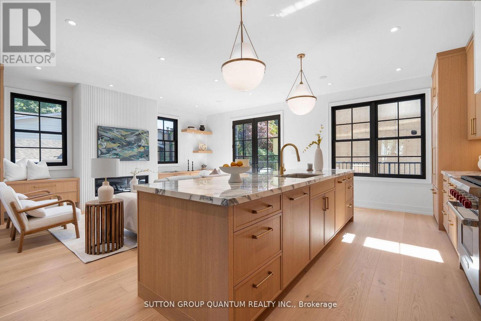 Welcome to this stunning, never before lived in custom-built 3-storey townhouse in the heart of downtown Oakville, offering 3 bedrooms, 4 bathrooms, and over 3,100 total square feet of luxurious living spaces. Designed for sophisticated urban living, this home features a private in-home elevator providing easy access to all levels, from the finished basement with heated concrete floors to the expansive rooftop terrace. The chef's kitchen boasts top-of-the-line Sub Zero, Wolfe and Miele appliances, custom white oak cabinetry with gold touches, and gorgeous marble countertops. An oversized 11' island overlooks the bright living and dining area complete with a custom plaster fireplace design flanking built-in cabinetry. French doors lead to a walk-out balcony, enhancing the living space with an outdoor area for bbquing and relaxing. The second floor offers two generously sized bedrooms, each with its own ensuite bath and walk-in closet, providing comfort and privacy for family and/or guests. The spacious laundry room with full size stacked washer/dryer is conveniently located just outside these bedrooms. A lovely primary retreat space is found on the third floor, featuring a private balcony, a huge walk-in closet, and a spa-inspired 5-piece ensuite featuring heated floors, a soaker tub, and smart toilet. Additional highlights include a massive rooftop terrace ideal for outdoor entertaining, and on a clear day you can catch a view of Lake Ontario. A finished double car garage with sleek epoxy heated floors, as well as a heated driveway, make up the garage space, while providing direct access to the home. Showcasing premium finishes throughout, this home is ideally located steps from Oakville's lakefront, shops, dining, and top-rated schools. Offering a flexible move in date, this turn key residence is a rare opportunity to own a brand-new, luxury home in one of Oakville's most desirable neighborhoods. (id:64974)