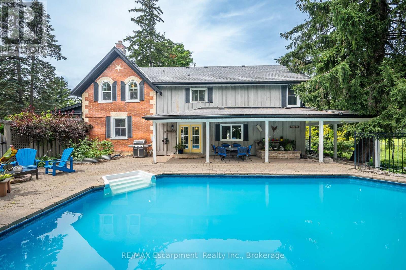 Welcome to the best of both worlds in the heart of Rockton--a rare opportunity where small-town charm meets everyday convenience. This beautiful two-storey detached home sits on a spacious lot along the historic and tree-lined Old Highway 8. Here, you can enjoy the peaceful rhythm of country living--think chickens in the backyard, wide-open skies, a yard with room to roam and fenced in area--without giving up the modern comforts of walkable amenities. Grab coffee, dinner, or local goods just minutes from your front door. Inside, the home is just as special. The family room is warm and inviting, anchored by a cozy gas fireplace, and flows easily into the formal dining room--perfect for family gatherings or quiet nights in. The kitchen is the heart of the home, featuring stainless steel appliances, tons of cabinetry, a peninsula for casual dining, and a picture window. Adjacent, a servery offers extra prep space, a beverage fridge, and direct access to the large wraparound deck--ideal for summer entertaining. Through French doors, the living room offers a laid-back space to relax. A functional main floor layout includes a powder room, laundry room, and a smartly designed mudroom with backyard access. Upstairs, the spacious primary suite is a true retreat with a fireplace, double closets, and spa-like ensuite with double vanity, soaker tub, and separate shower. A bonus room off the primary is perfect for an office or cozy nook.Three additional bedrooms, a loft and full bathroom. Outside, the large covered deck wraps to a stone patio and sparkling pool--your private summer escape. Just steps from the Rockton Worlds Fairgrounds and surrounded by trails, farms, and conservation lands, this home gives you space to breathe while keeping you close to Dundas, Cambridge, and Flamborough. Its not just a home--its a lifestyle. (id:64974)