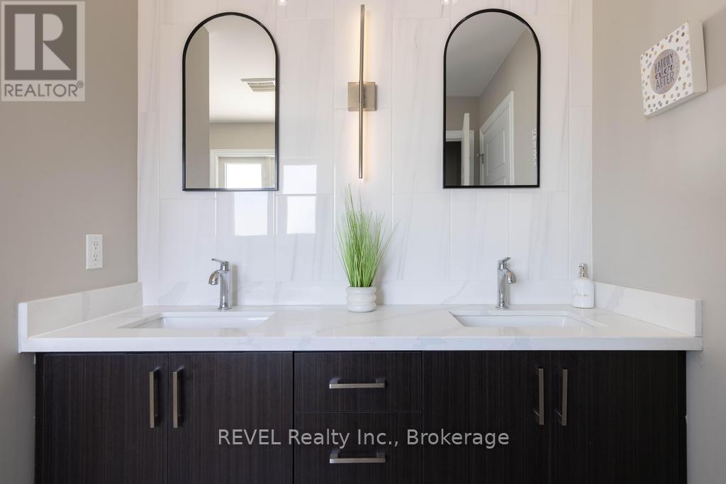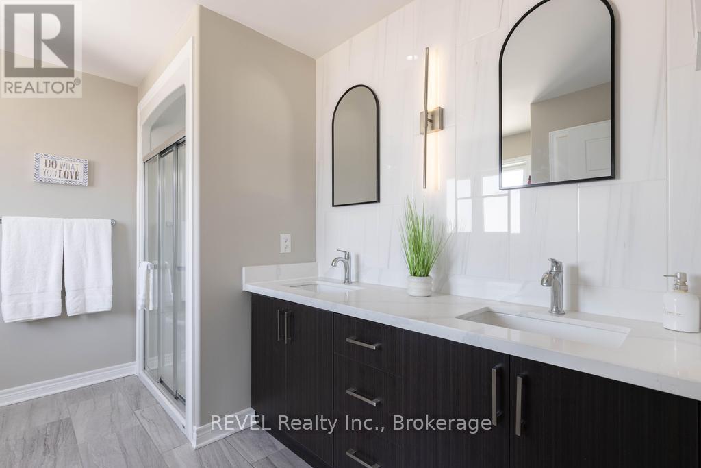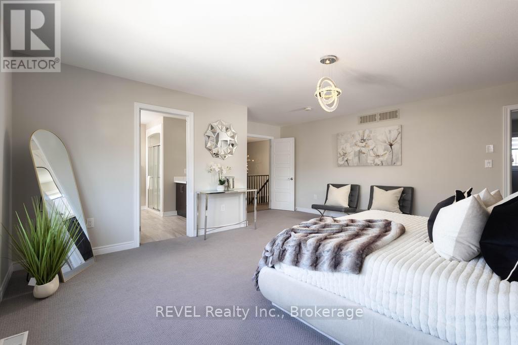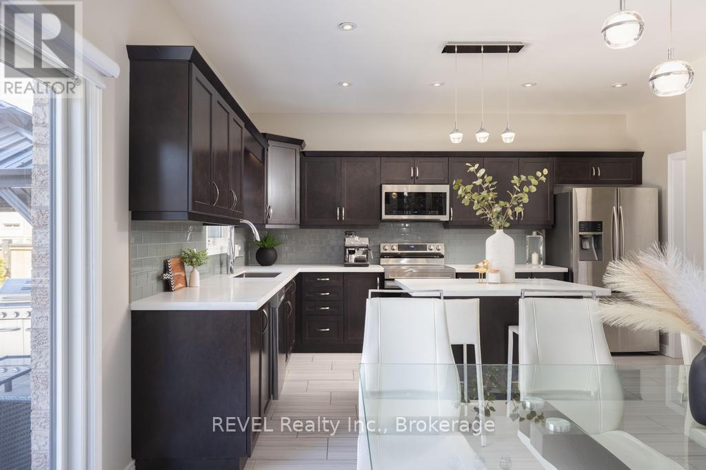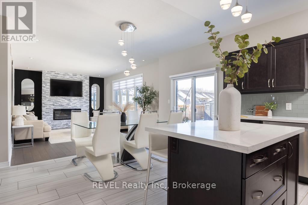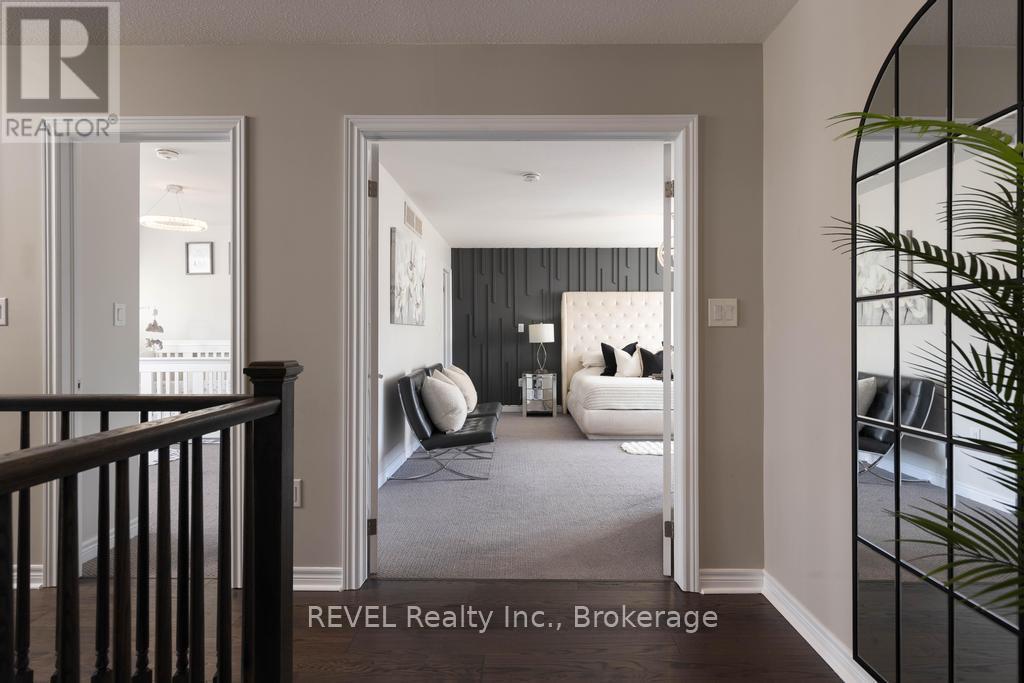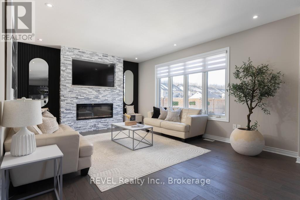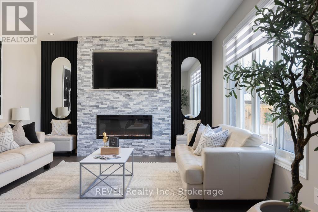 Welcome to your dream home. This magnificent custom-built residence sits on a premium corner lot and truly offers the complete package. Loaded with curb appeal, the sleek brick exterior, custom interlocking stone, professionally landscaped gardens, and spacious covered porch create an inviting first impression. Step through the stately entrance into an expansive foyer filled with natural light. The main floor features a bright open-concept living space with 9-ft ceilings and engineered hardwood flooring. The eat-in kitchen showcases newly installed quartz countertops, complemented by a stunning floor-to-ceiling stone fireplace in the family room. Thoughtfully designed feature walls add character throughout the home, including a dramatic foyer entrance, flanking the fireplace, on the staircase landing, and in the primary bedroom. Additional main-floor highlights include a walk-in pantry, dedicated laundry room, powder room, and a second living room that can easily serve as a home office. Sliding doors lead to a beautifully landscaped backyard with over 700 sq ft of interlocking stone patio-perfect for entertaining. Upstairs, retreat to the impressive primary suite with two walk-in closets and a luxurious ensuite featuring quartz countertops and an oversized shower. Three additional spacious bedrooms and a full bathroom complete the level. Carpet has recently been removed from the stairs and second-floor landing for a fresh, modern feel. The custom-designed basement offers a separate walk-out entrance and over 1,000 sq ft of finished living space, including vinyl plank flooring, a large bedroom, oversized glass shower, walk-in linen closet, cold room, and dedicated laundry. Ideal for an in-law suite or potential income opportunity. Located close to excellent schools, trails, golf, parks, dining, and shopping-this home truly has "forever home" written all over it. (id:64974)