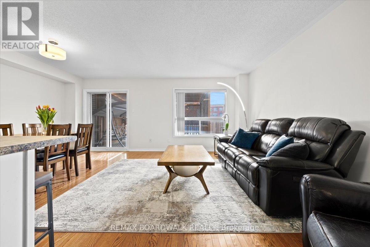 3-bedroom, 3-bathroom freehold townhome right in the heart of Barrhaven! Located in a family-friendly neighbourhood, this Richcraft "Bedford Mills" model is just steps from schools, parks, shopping, and more. Inside, enjoy a bright, open-concept living, dining, and kitchen area with beautiful oak hardwood floors, a spacious primary bedroom with an ensuite and walk-in closet, plus a finished basement with plenty of storage. Step out to your private 3-season deck-perfect for relaxing or entertaining. Freshly painted and move-in ready, this home is ideal for first-time buyers, down-sizers, or investors. Everything you need is within walking distance, from cafes and shops to restaurants and even Costco - this one truly has it all! (id:64974)